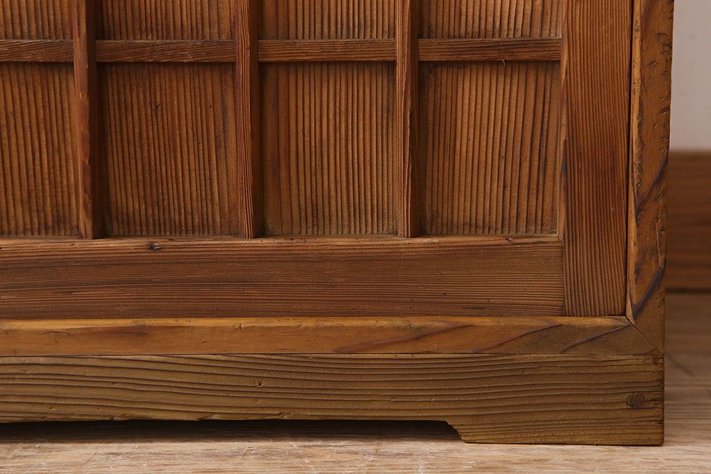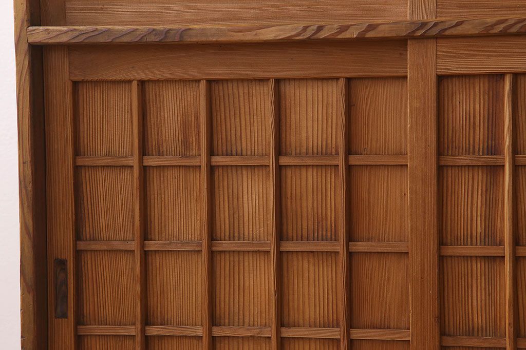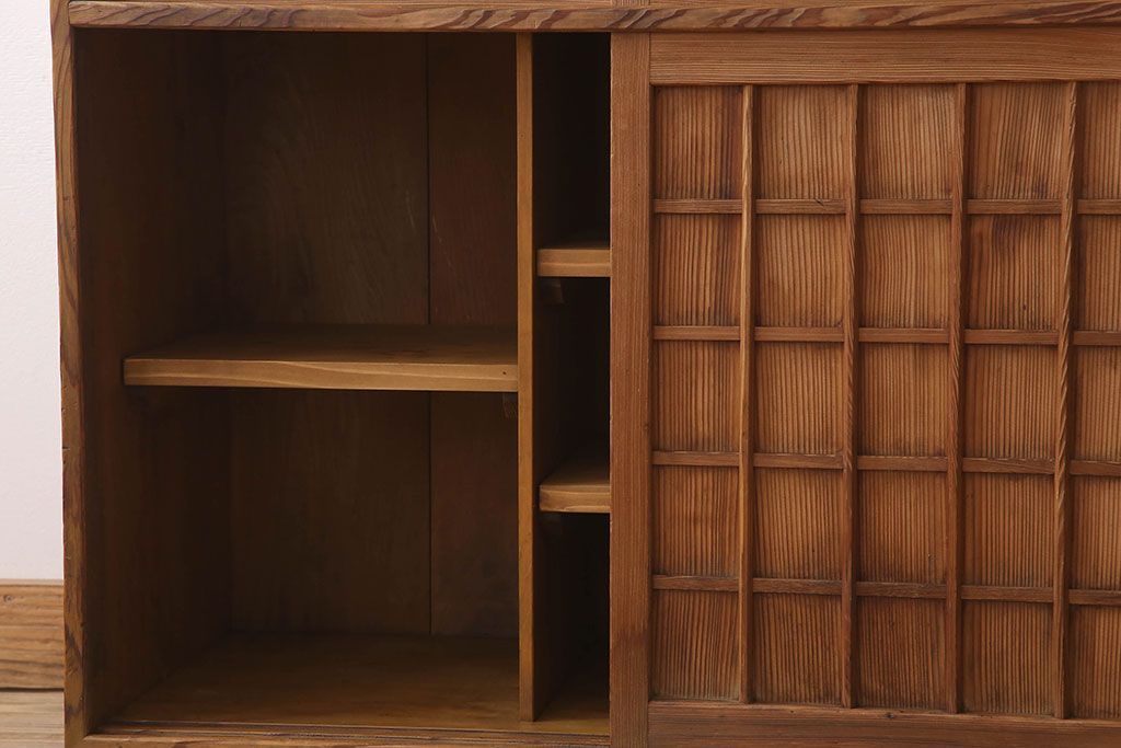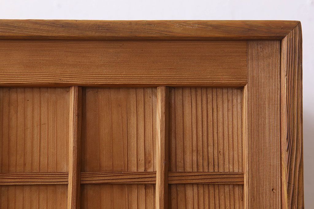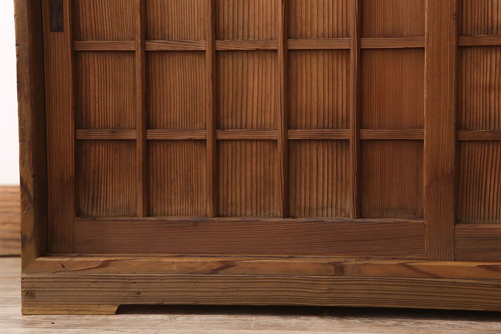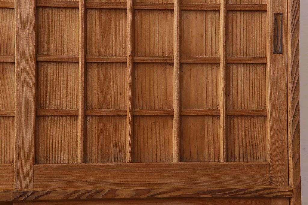 アンティーク家具 大正昭和期 檜材製 格子引き戸の小ぶりな収納棚(下駄箱)