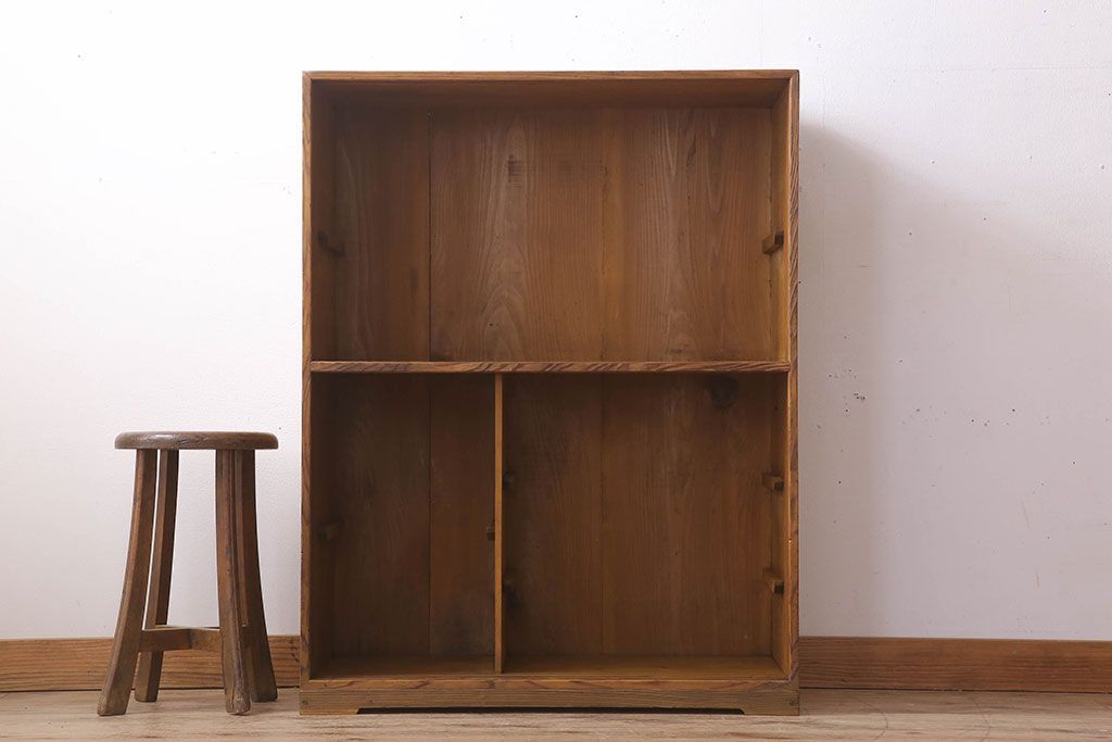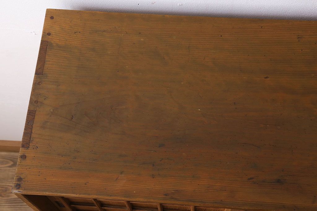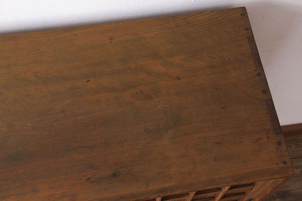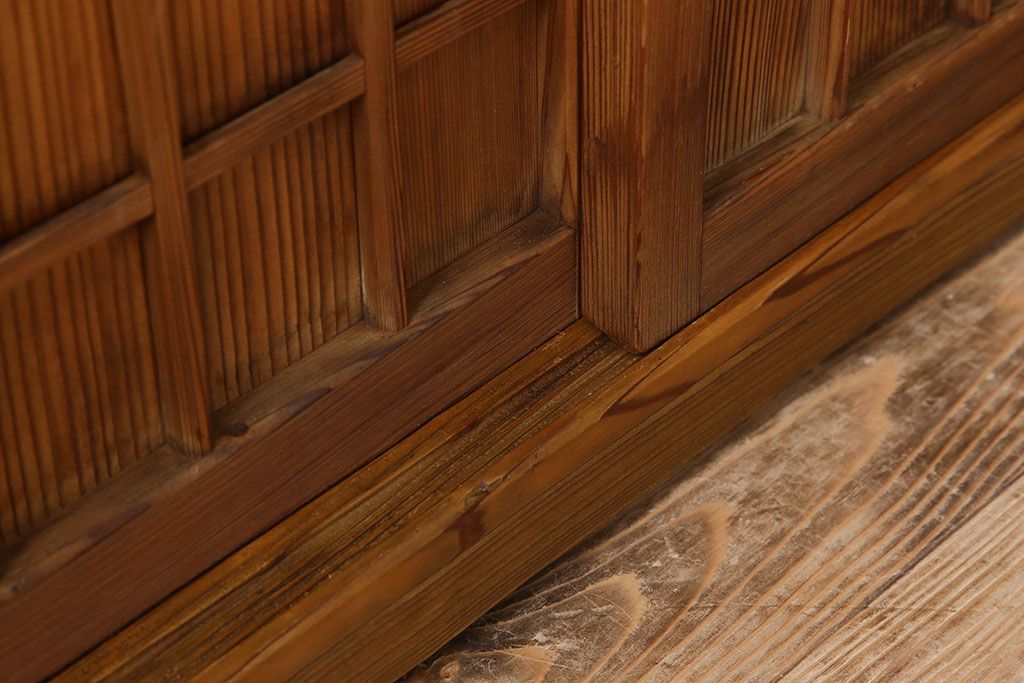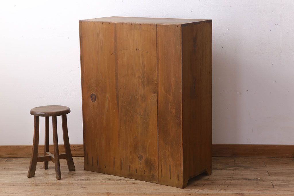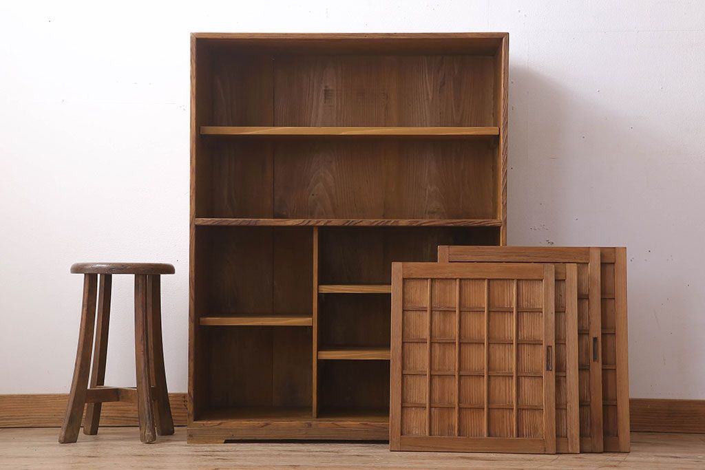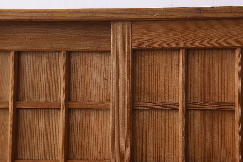 アンティーク家具 大正昭和期 檜材製 格子引き戸の小ぶりな収納棚(下駄箱)