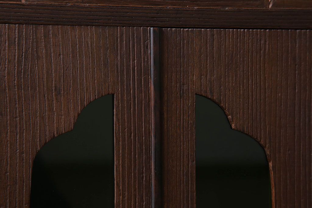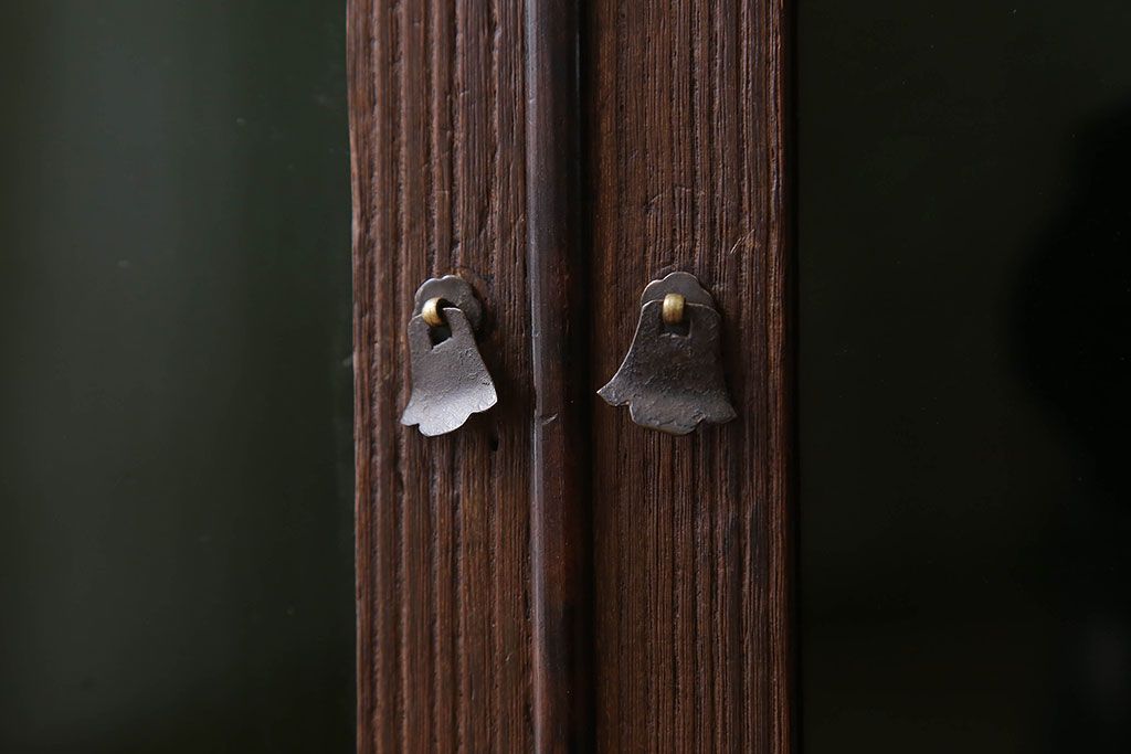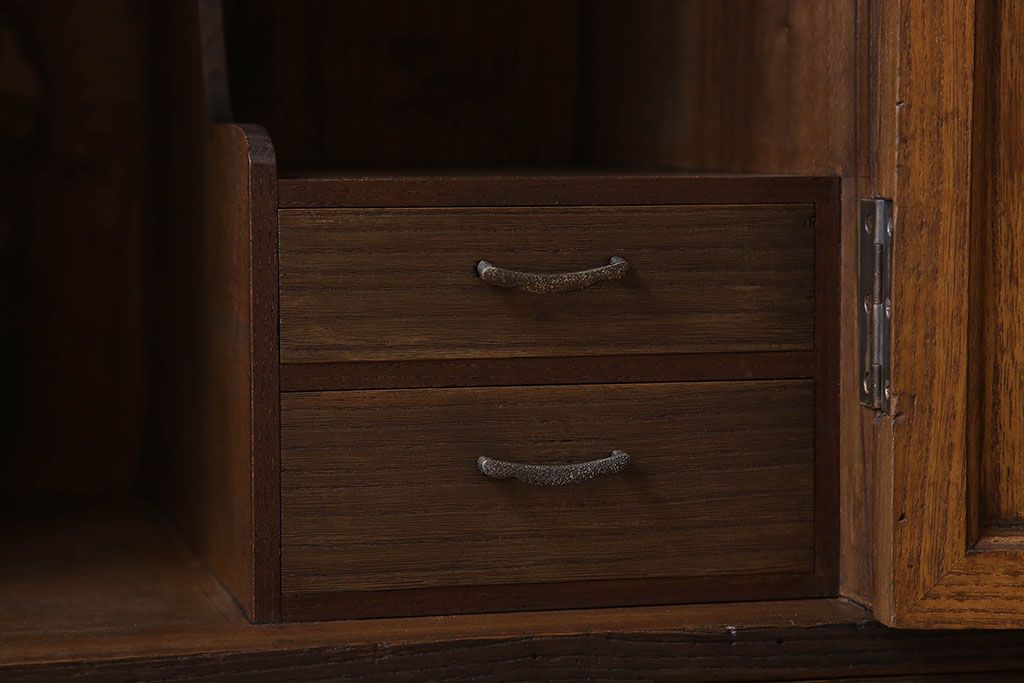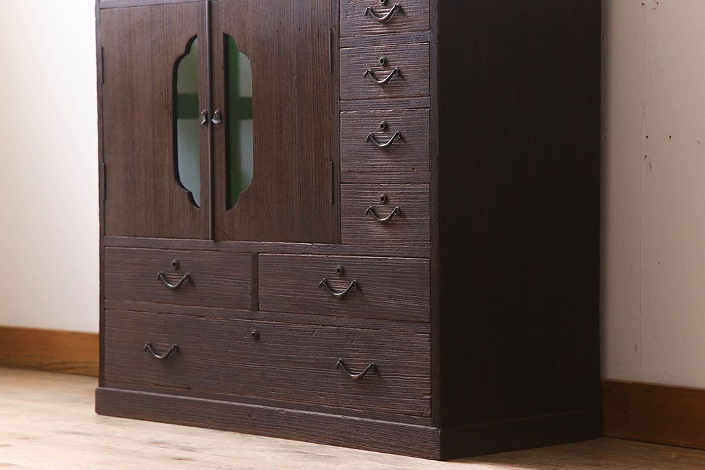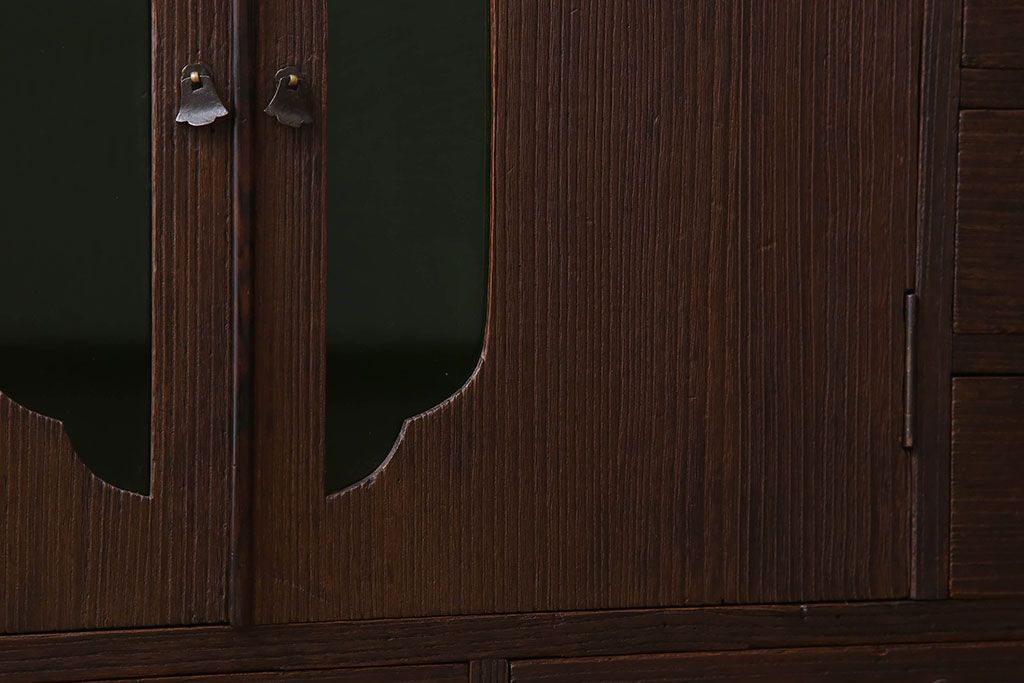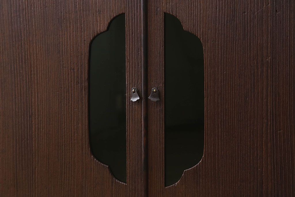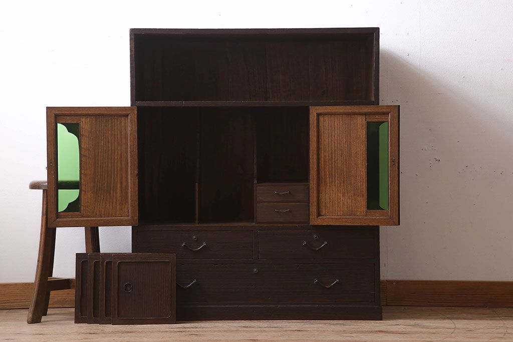 アンティーク家具 総桐材製 色ガラス入り!小ぶりなアンティーク収納棚