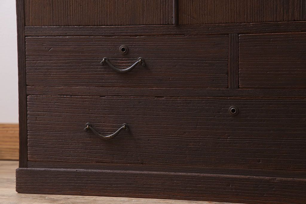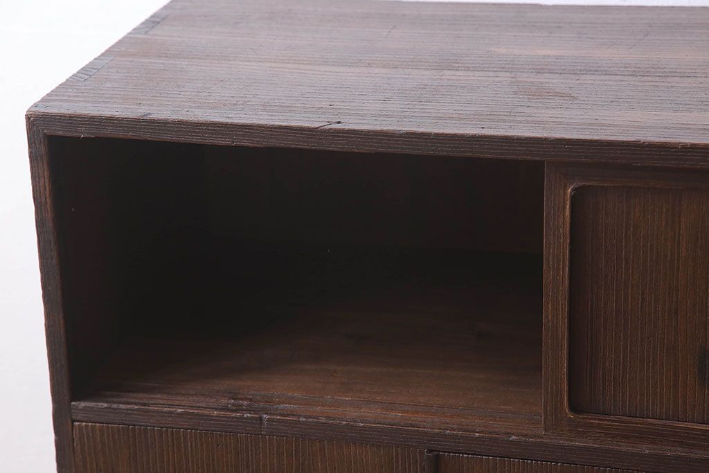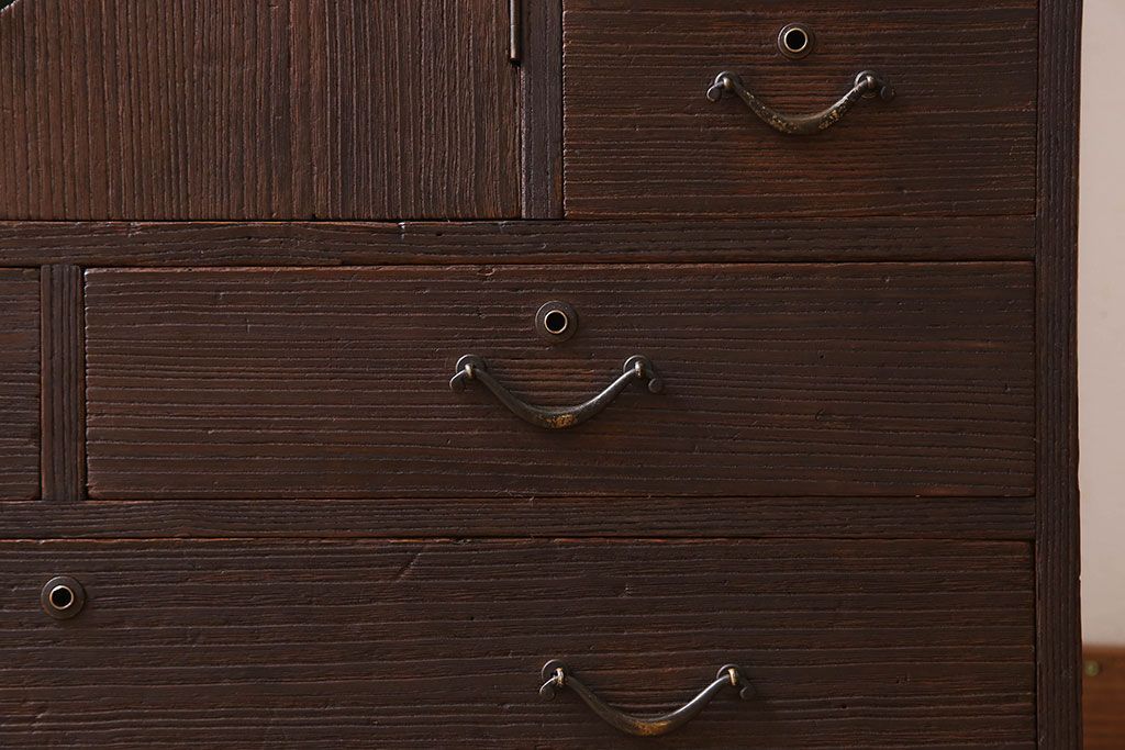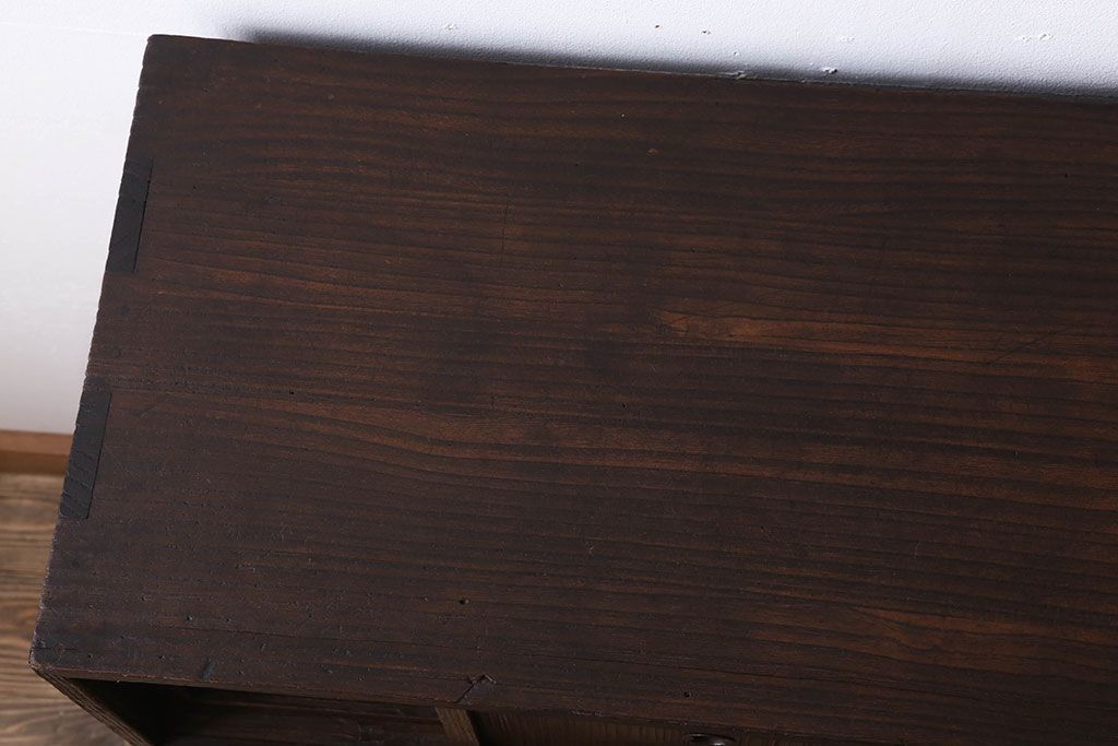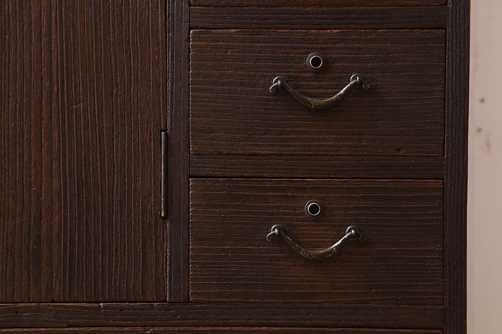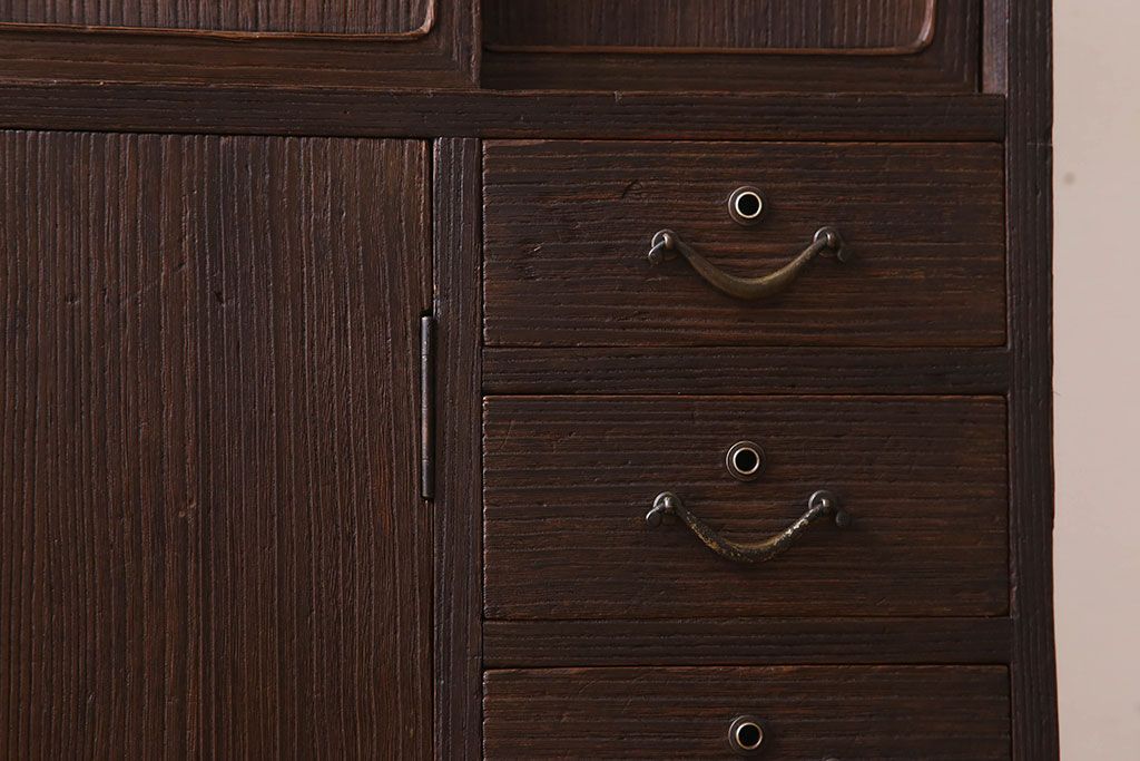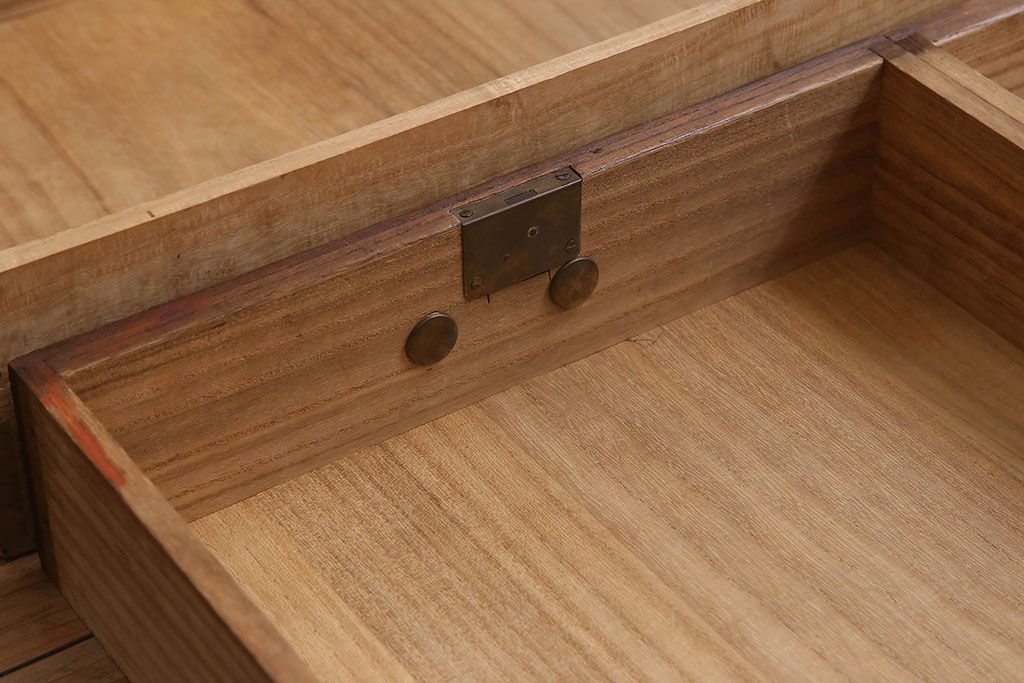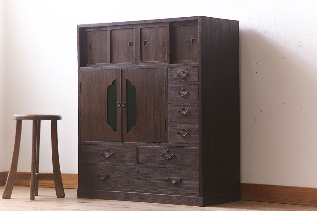 アンティーク家具 総桐材製 色ガラス入り!小ぶりなアンティーク収納棚
