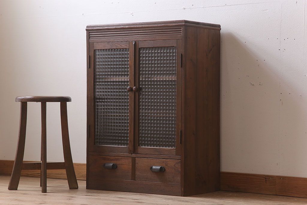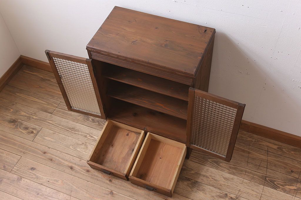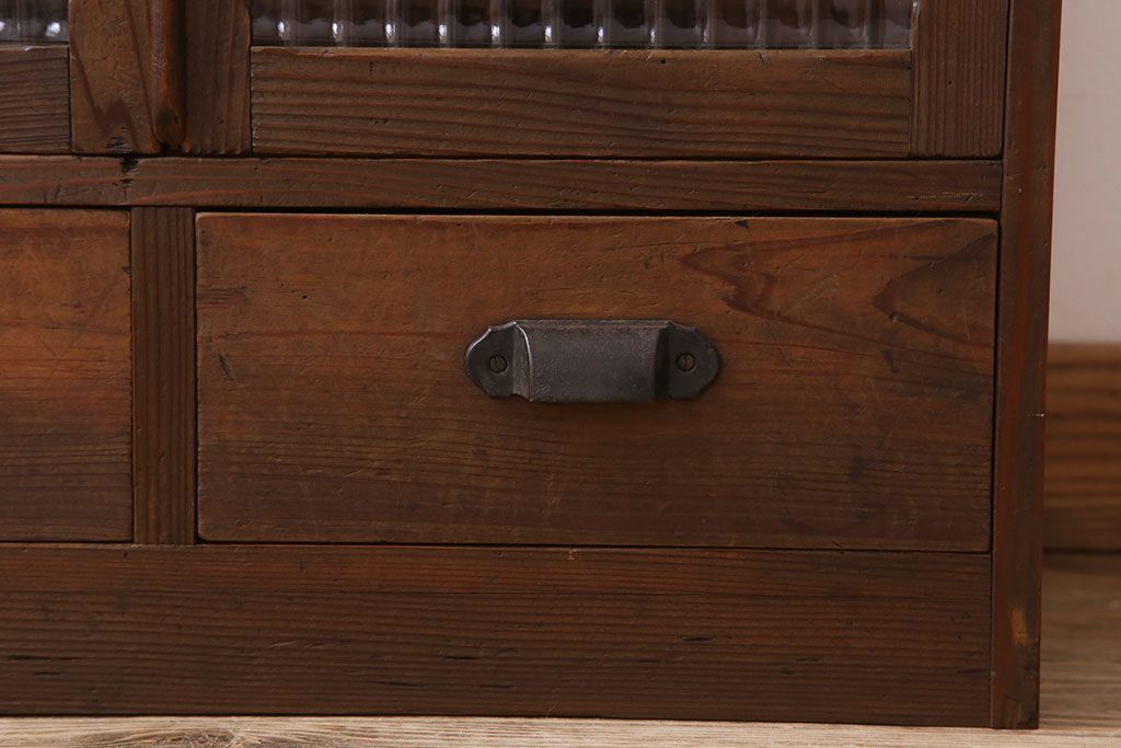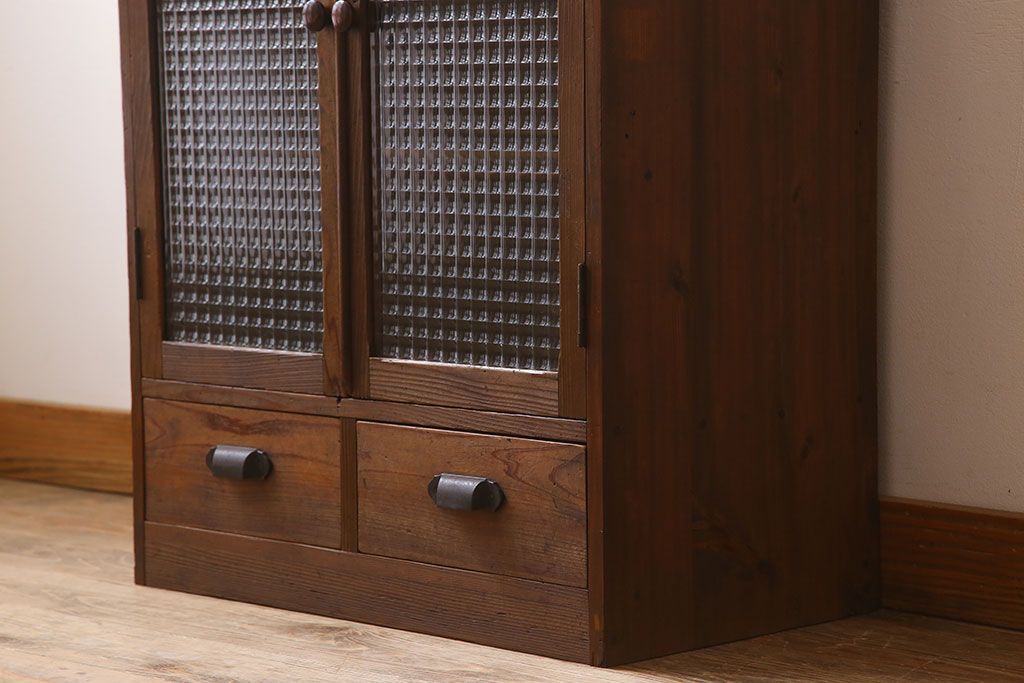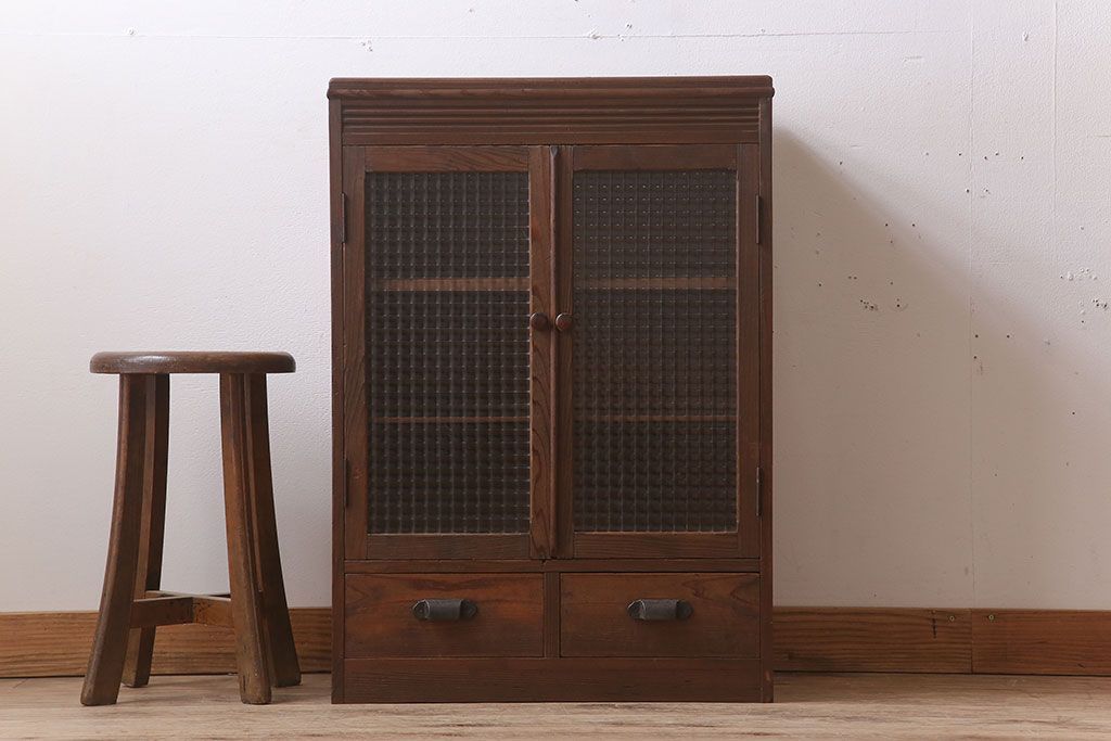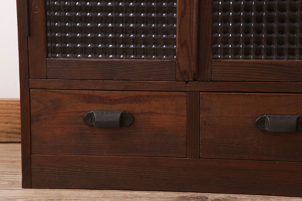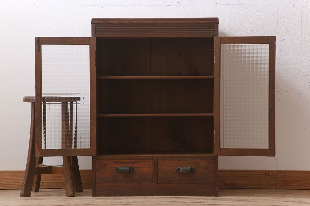 アンティーク家具 大正ロマン チェッカーガラス入り!小さなアンティーク本箱(本棚)
