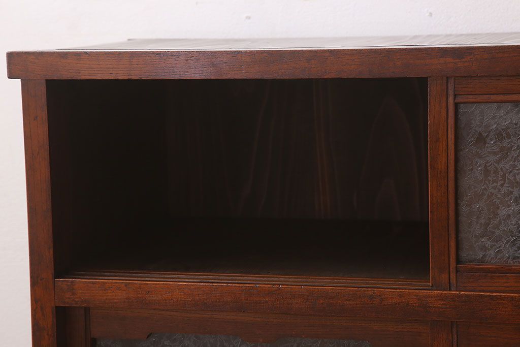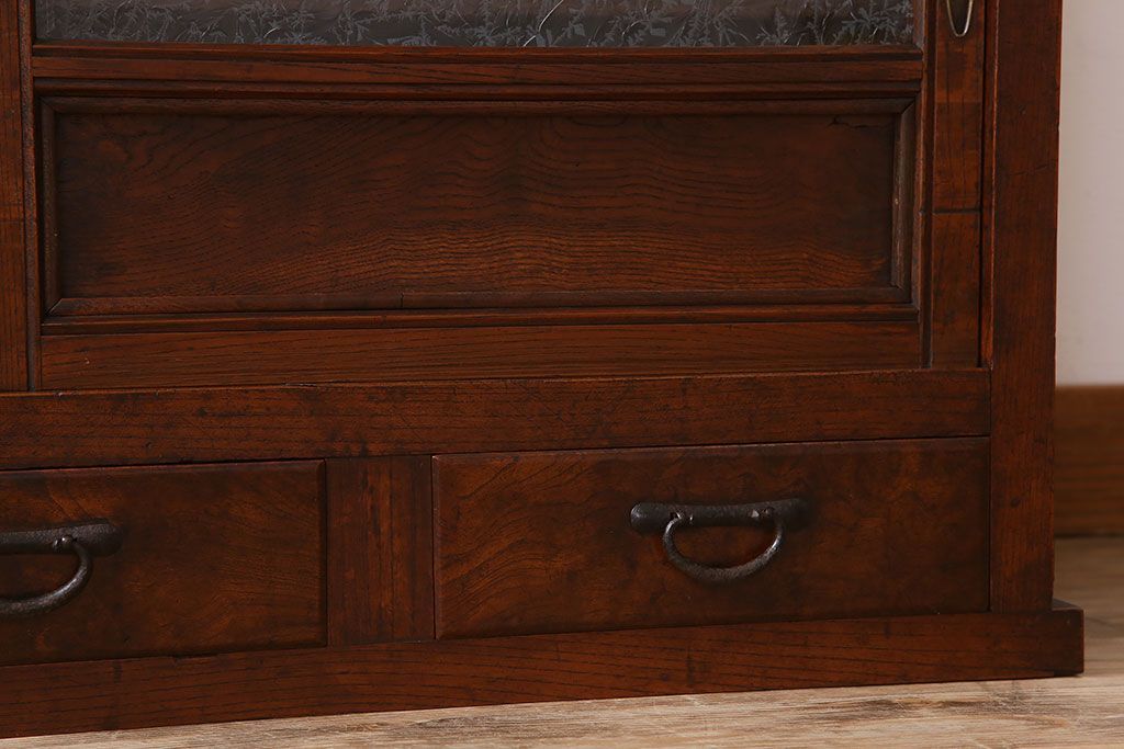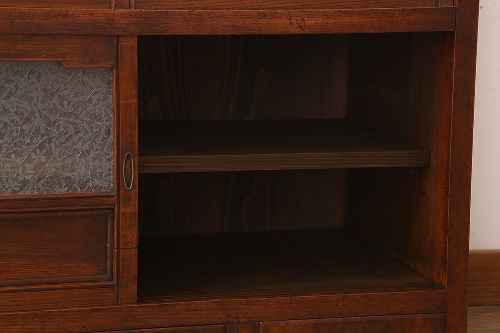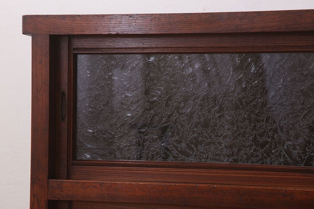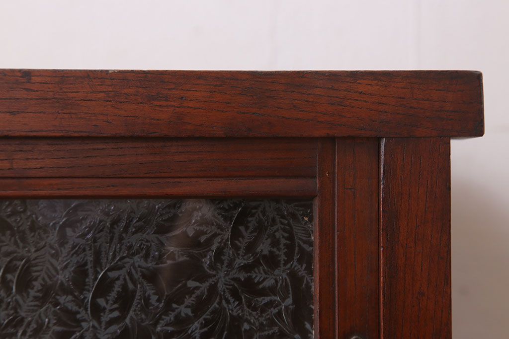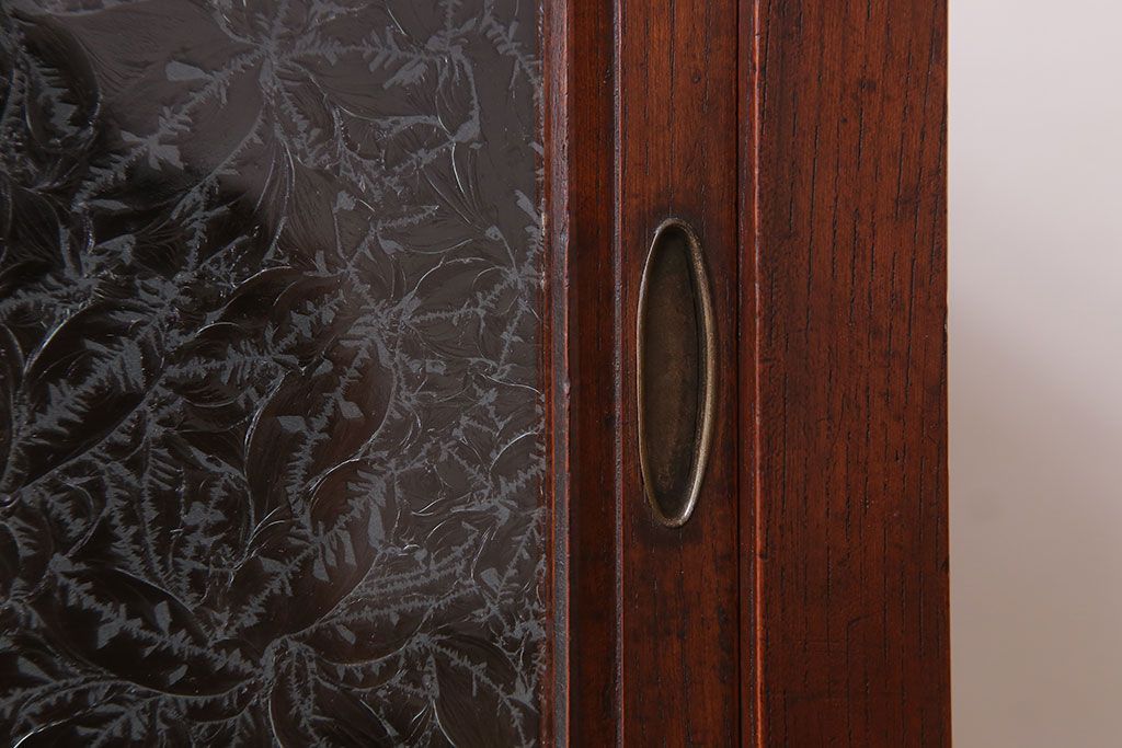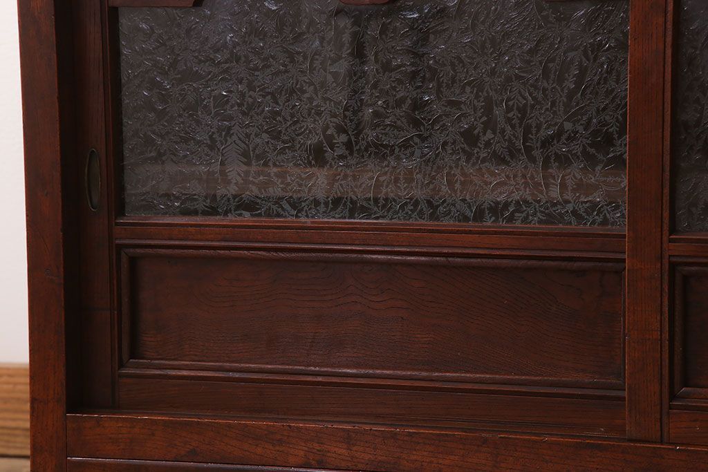 アンティーク家具 結霜ガラス入り!前面欅材の小ぶりなアンティーク収納棚