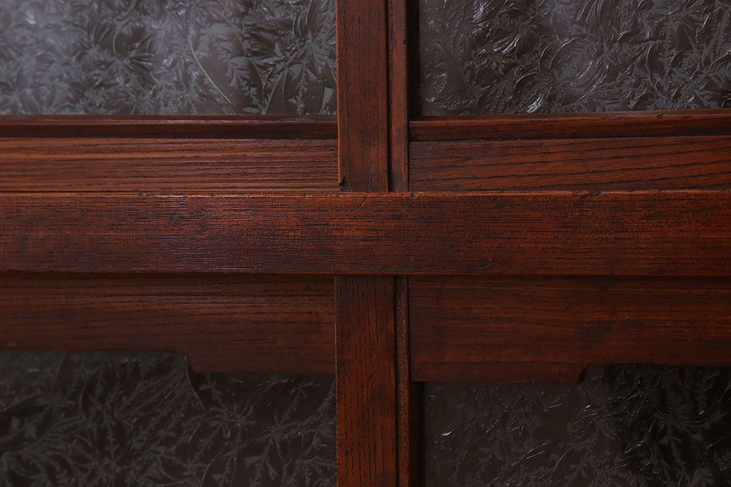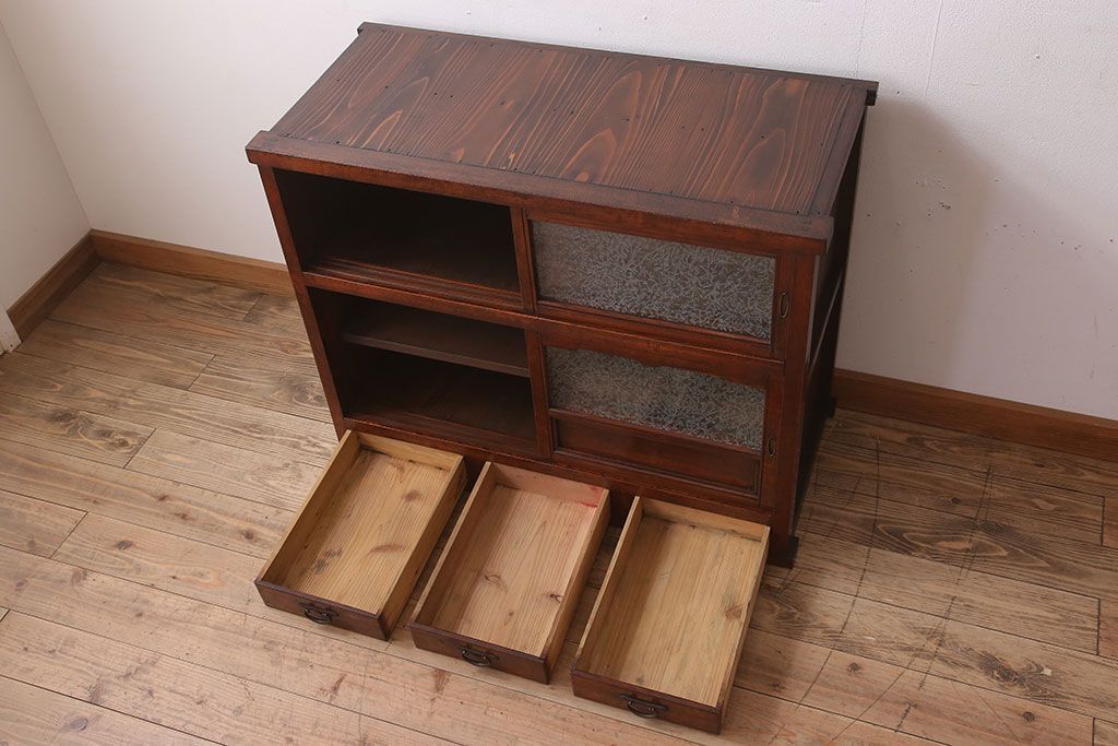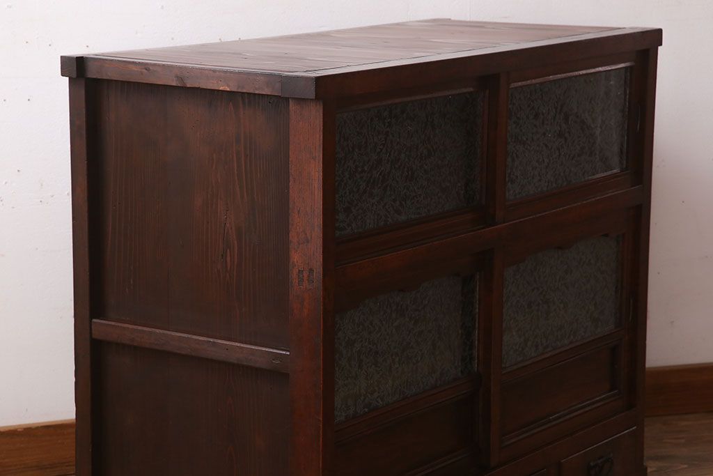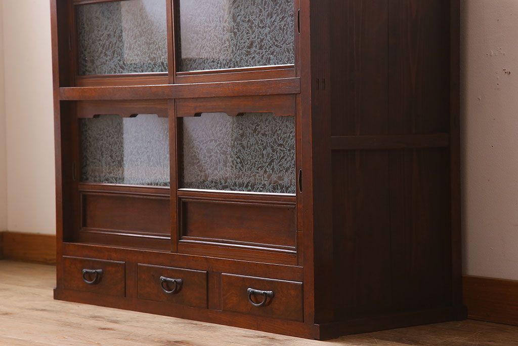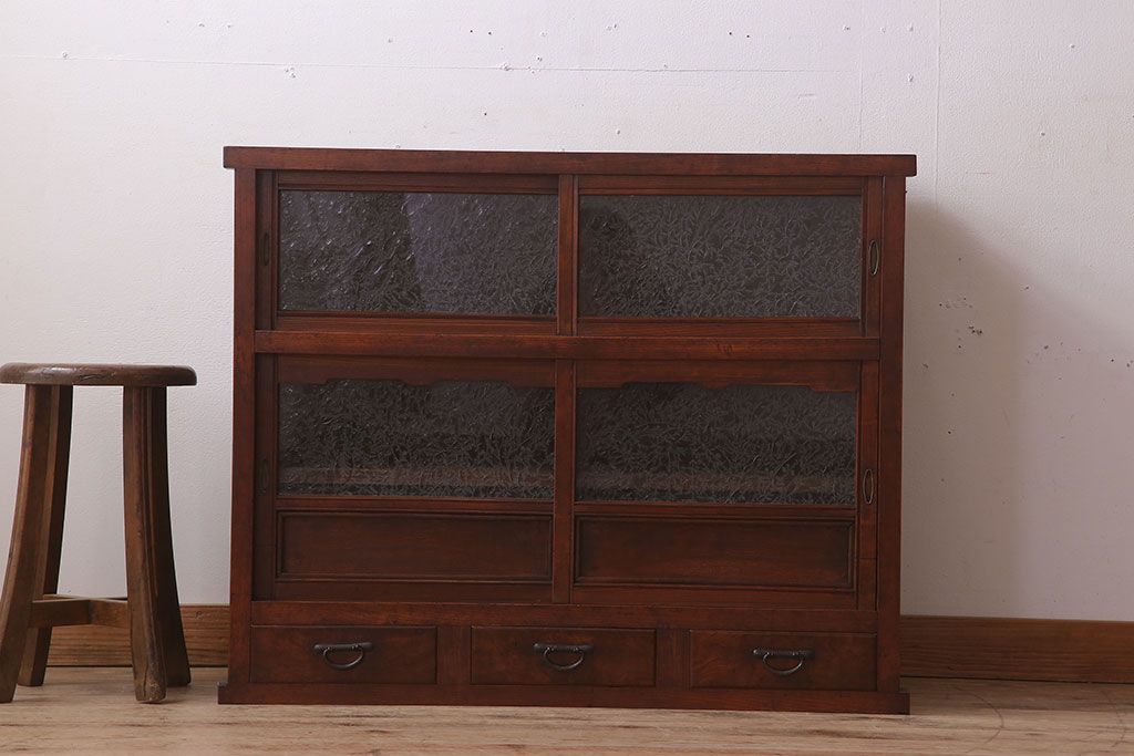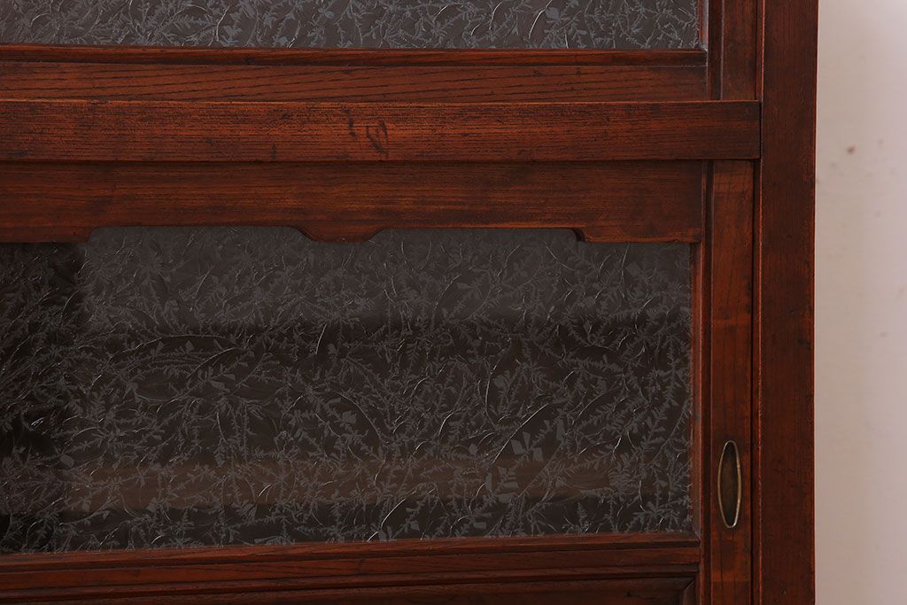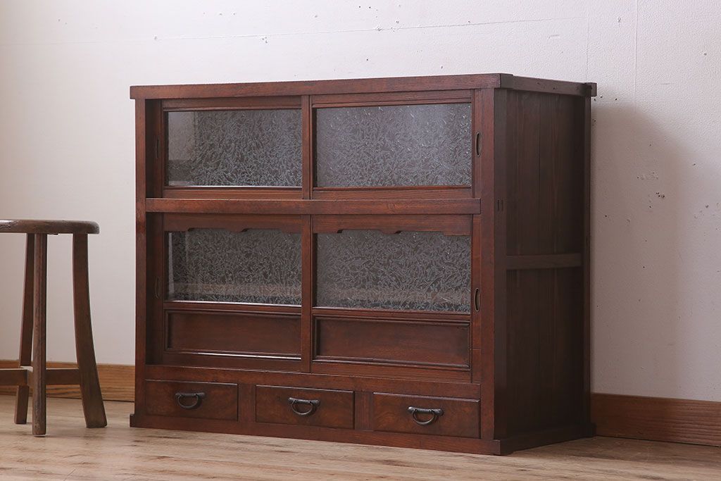 アンティーク家具 結霜ガラス入り!前面欅材の小ぶりなアンティーク収納棚