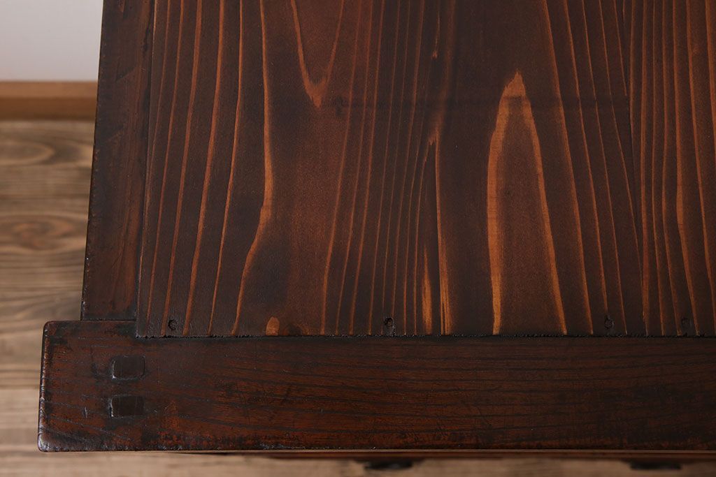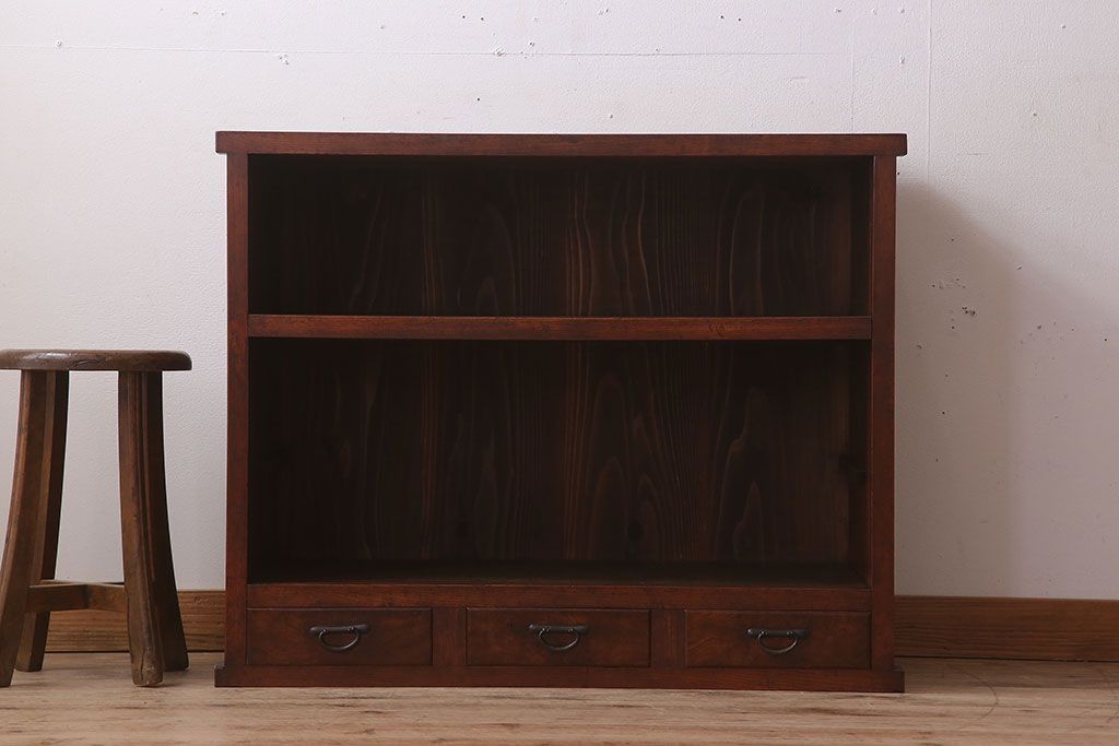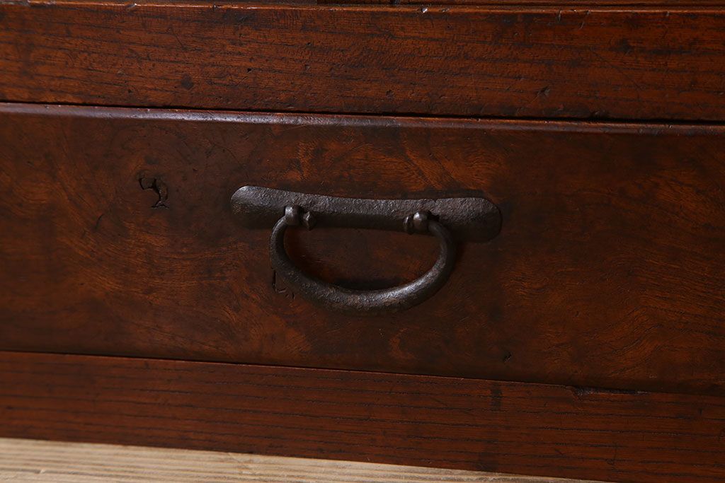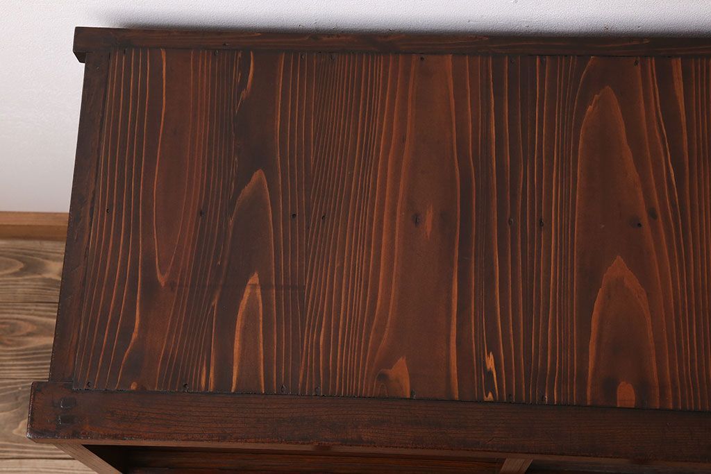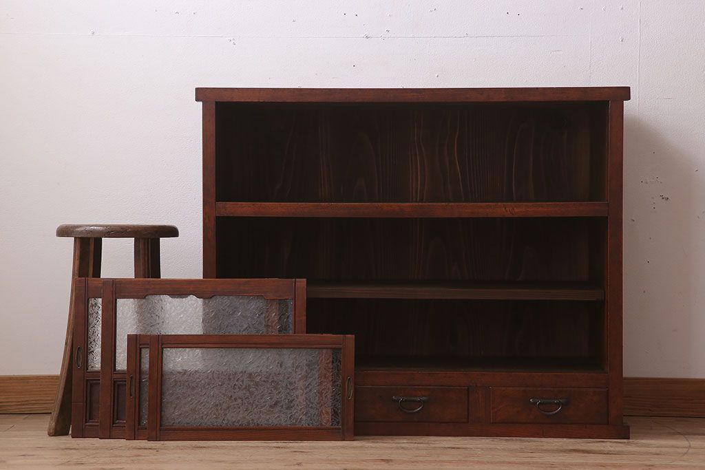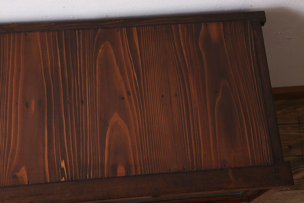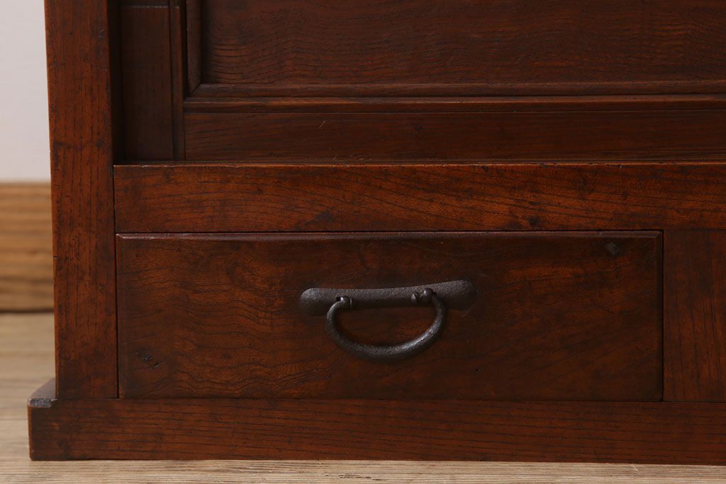 アンティーク家具 結霜ガラス入り!前面欅材の小ぶりなアンティーク収納棚