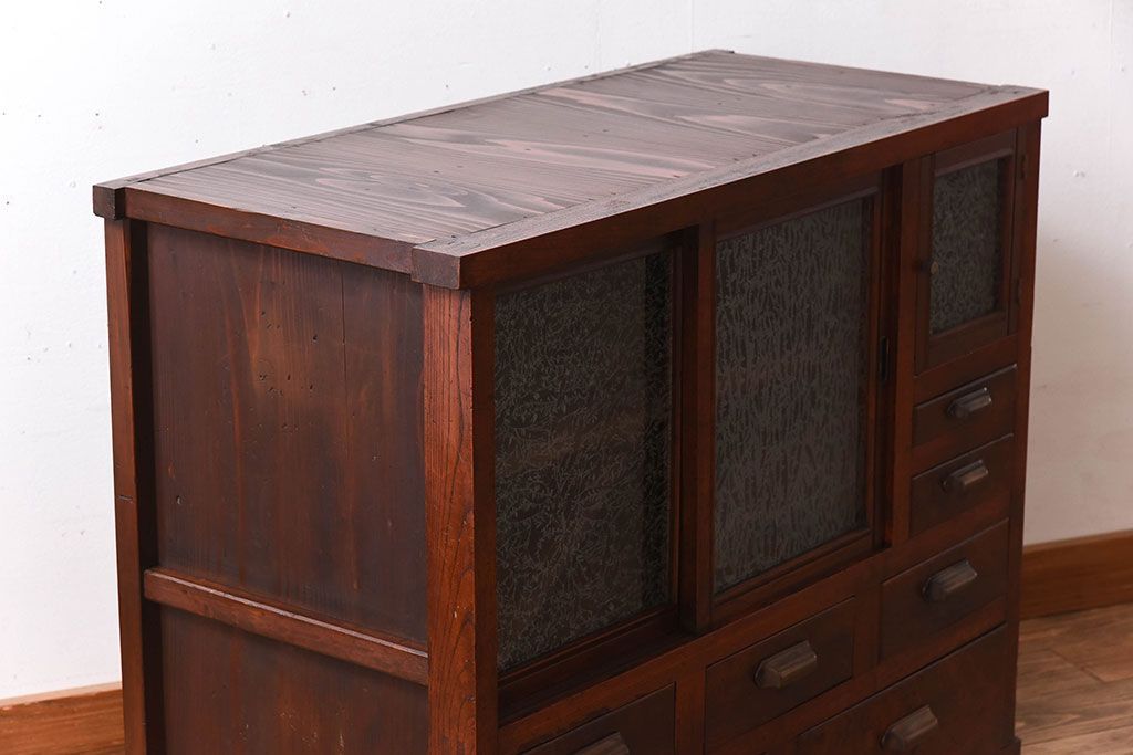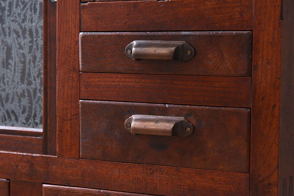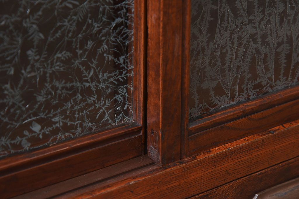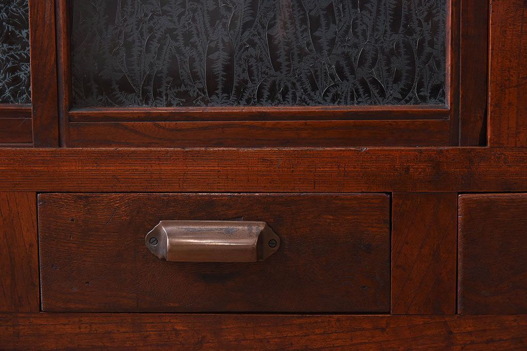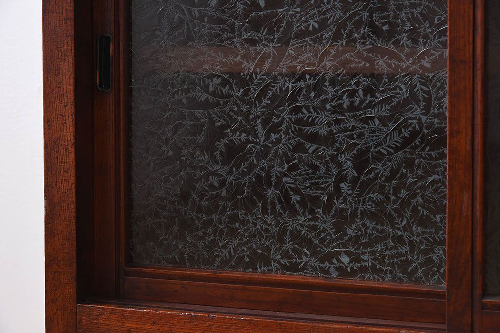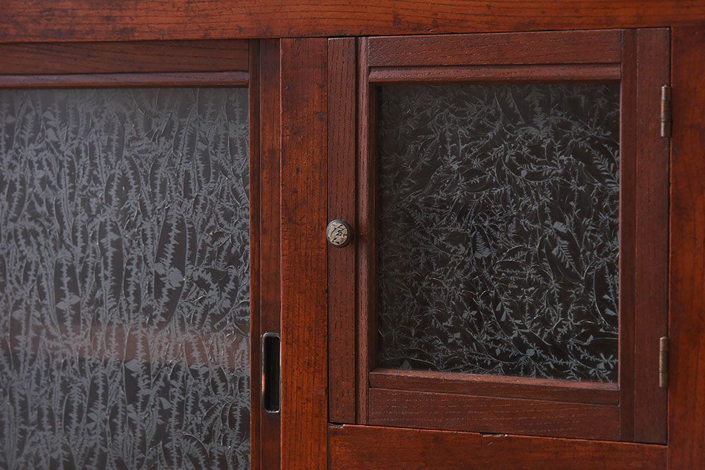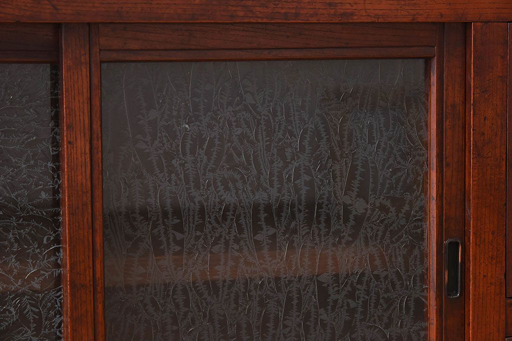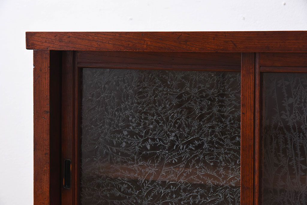 アンティーク家具 結霜ガラス入り!前面欅材の小ぶりなアンティーク収納棚(2)