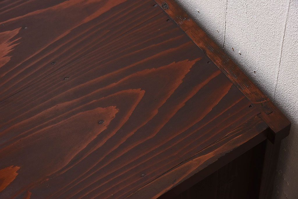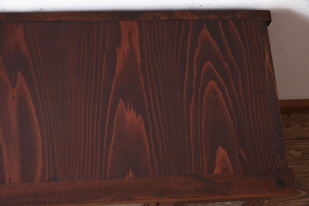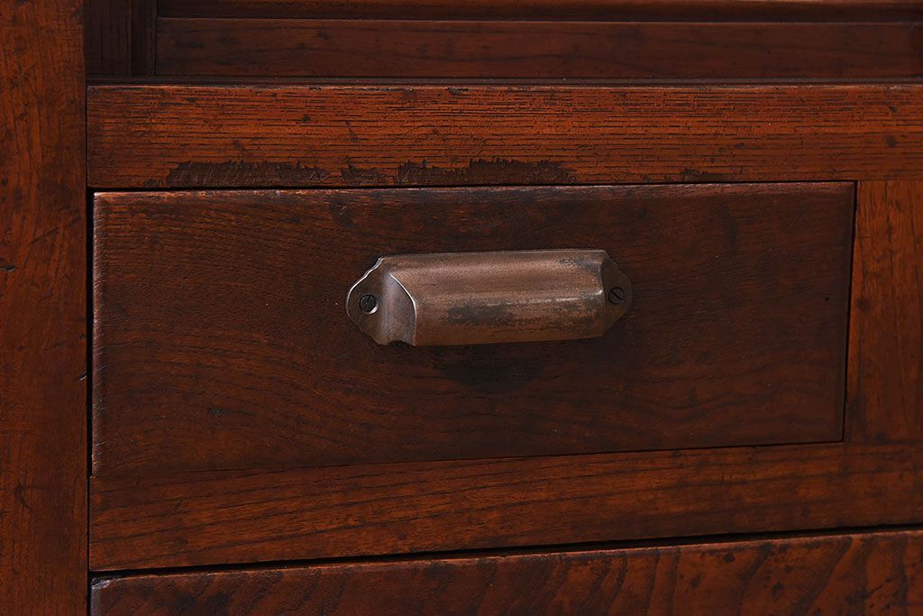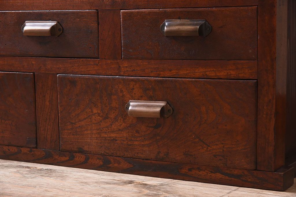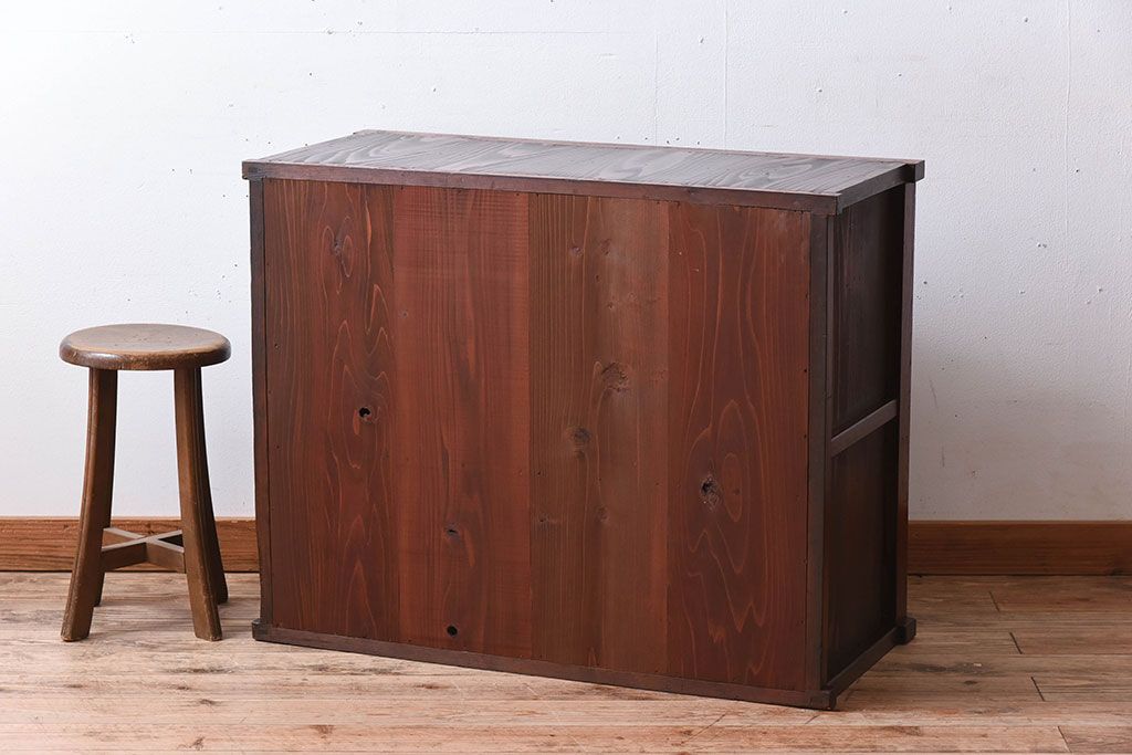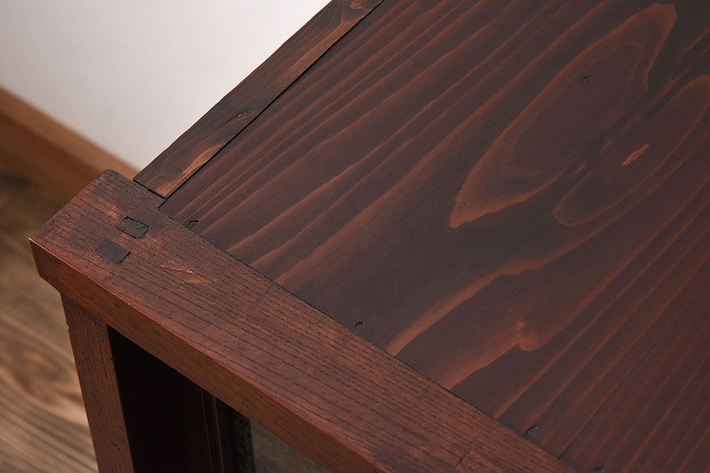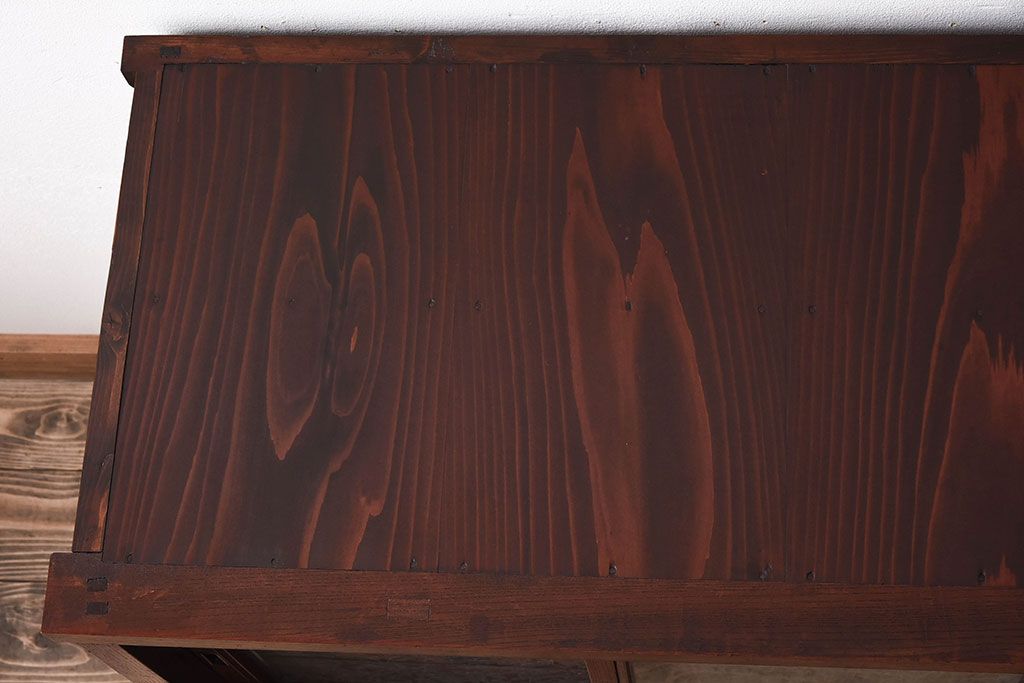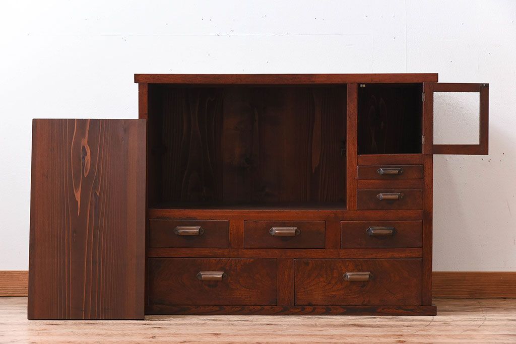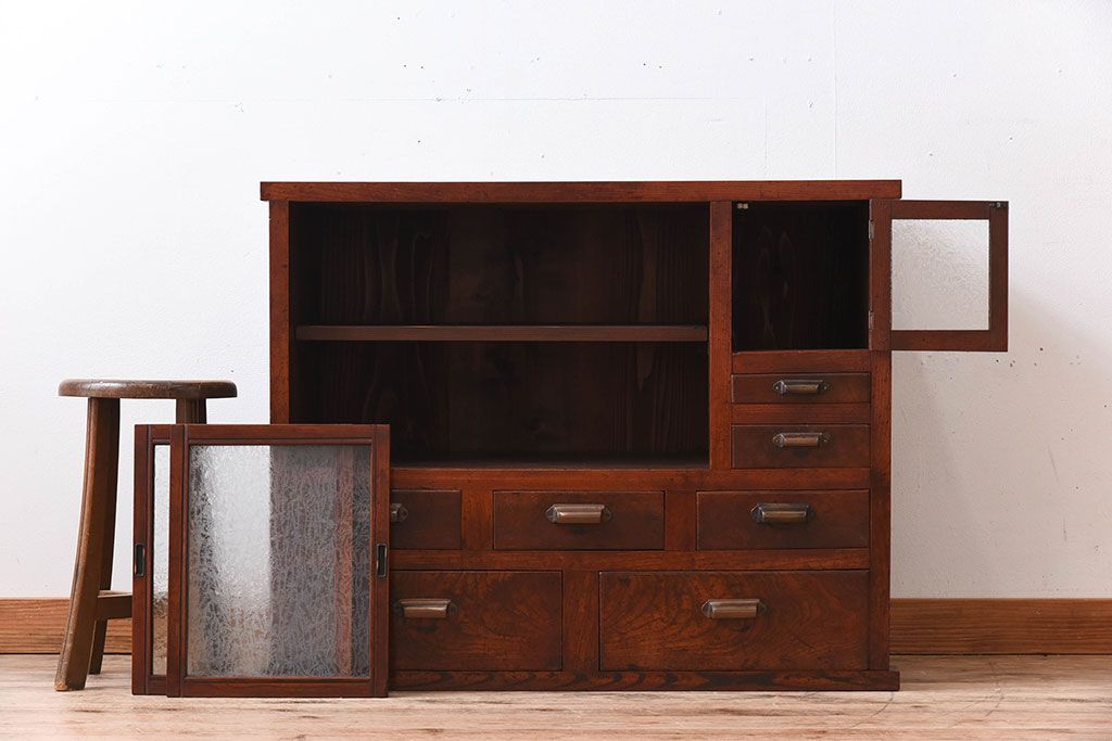 アンティーク家具 結霜ガラス入り!前面欅材の小ぶりなアンティーク収納棚(2)