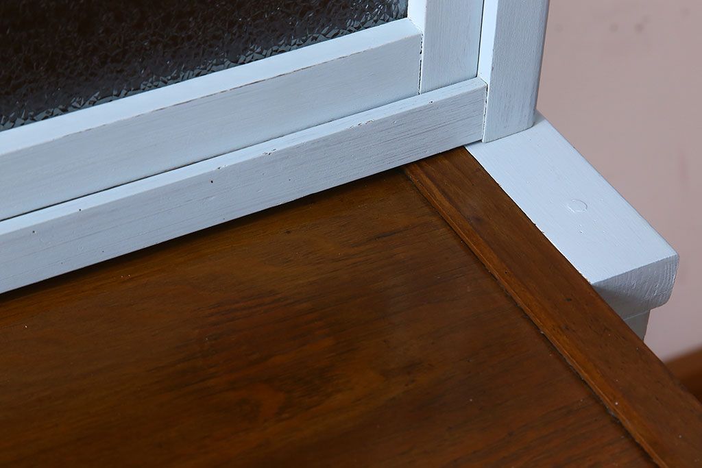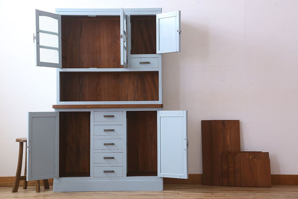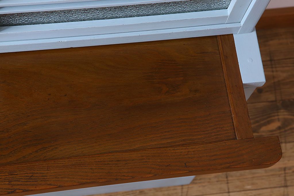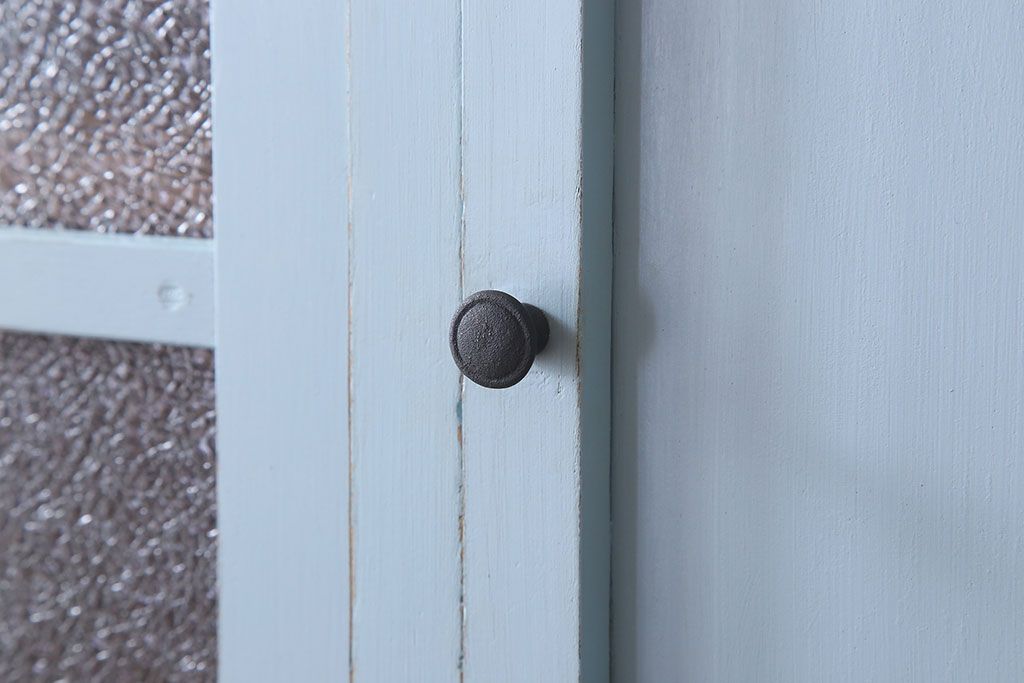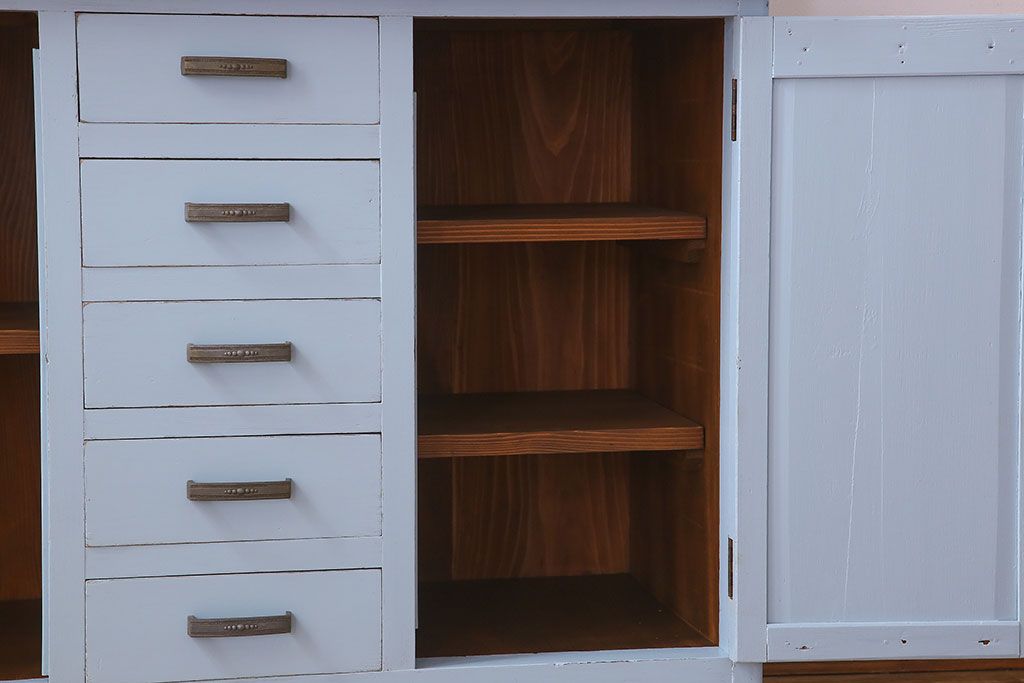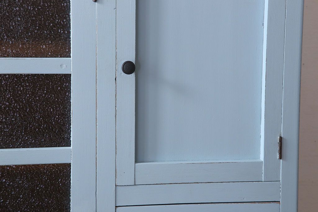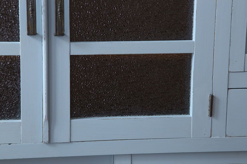 アンティーク家具 作業台付き 水色ペイントのおしゃれなアンティークカップボード