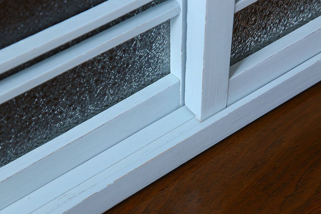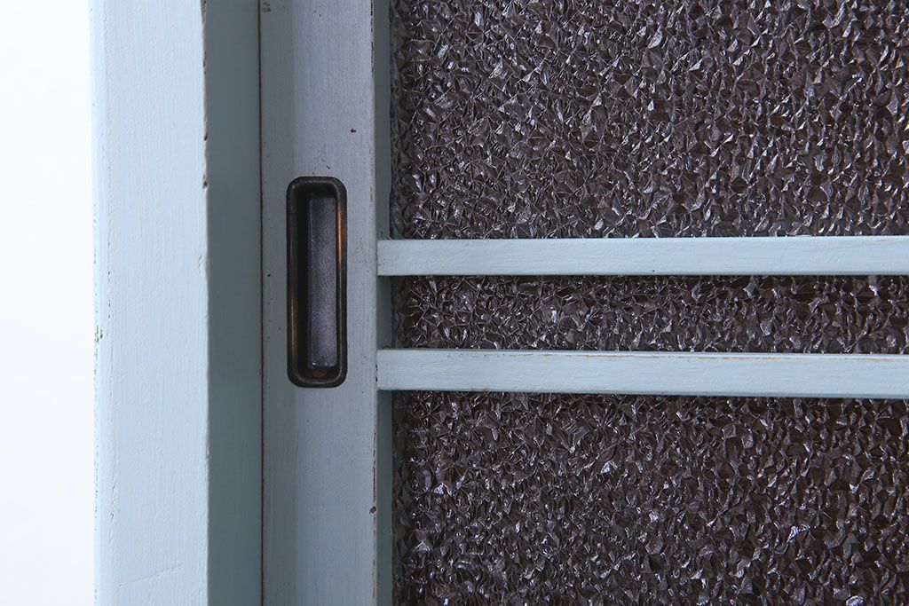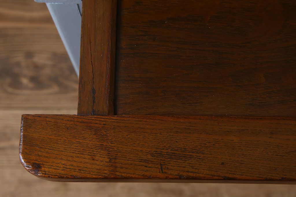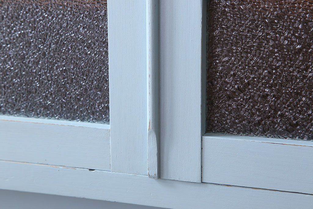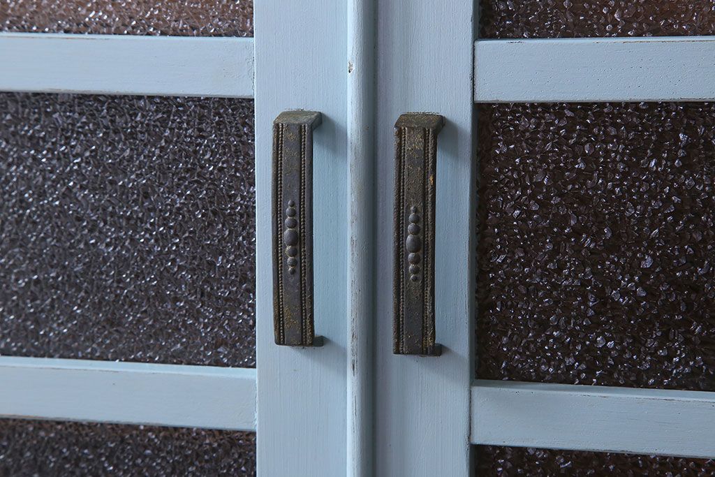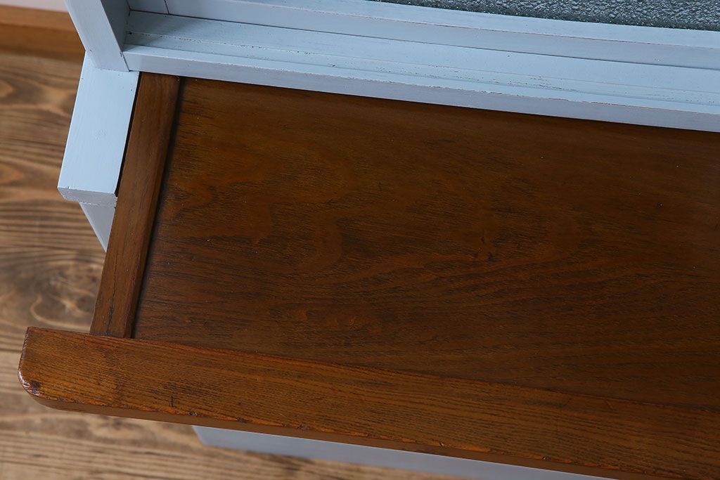 アンティーク家具 作業台付き 水色ペイントのおしゃれなアンティークカップボード