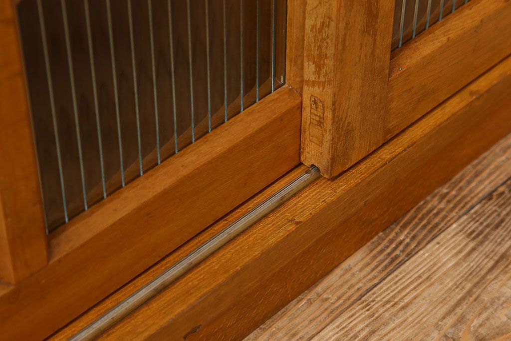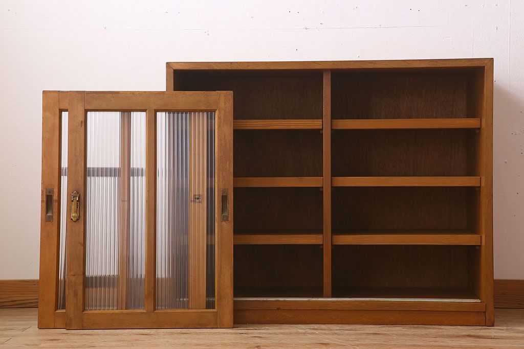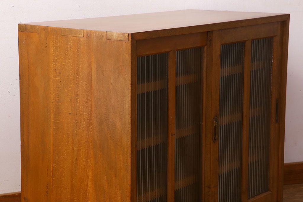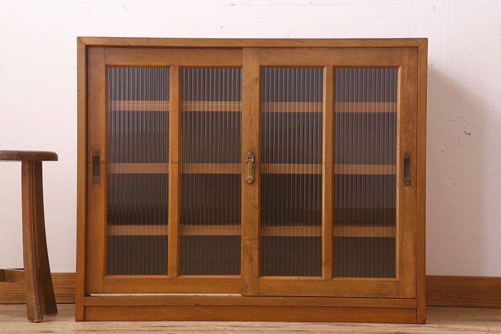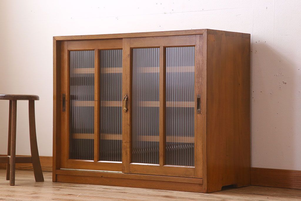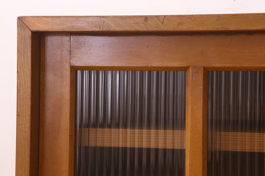 アンティーク家具 モールガラス引き戸 ブナ材 小ぶりなアンティーク収納棚