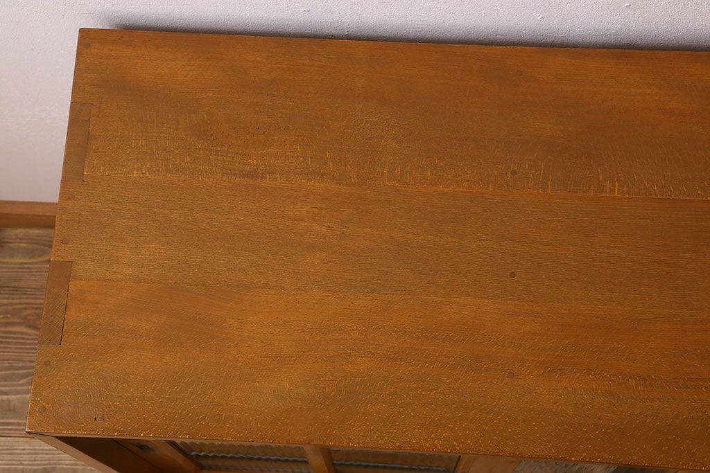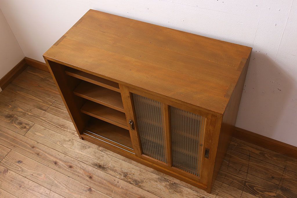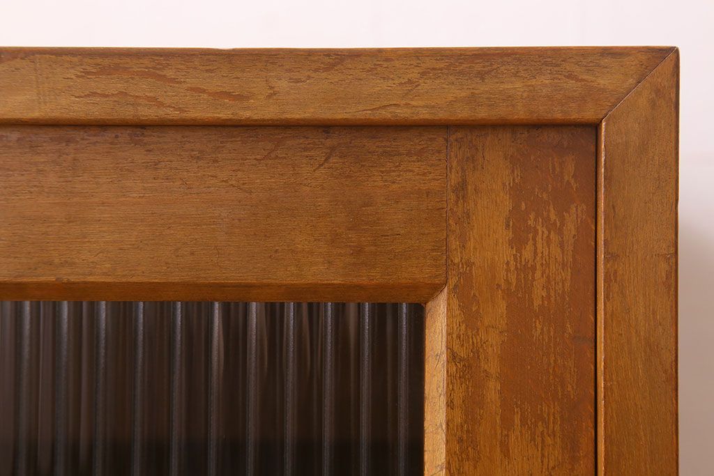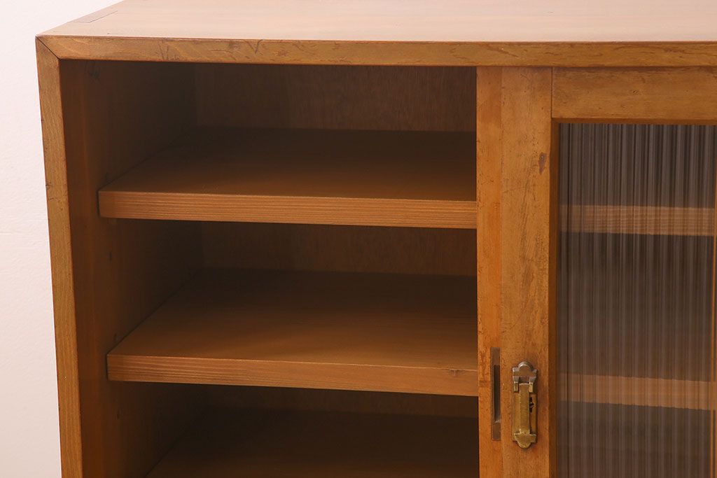 モールガラス引き戸 ブナ材 小ぶりなアンティーク収納棚です。