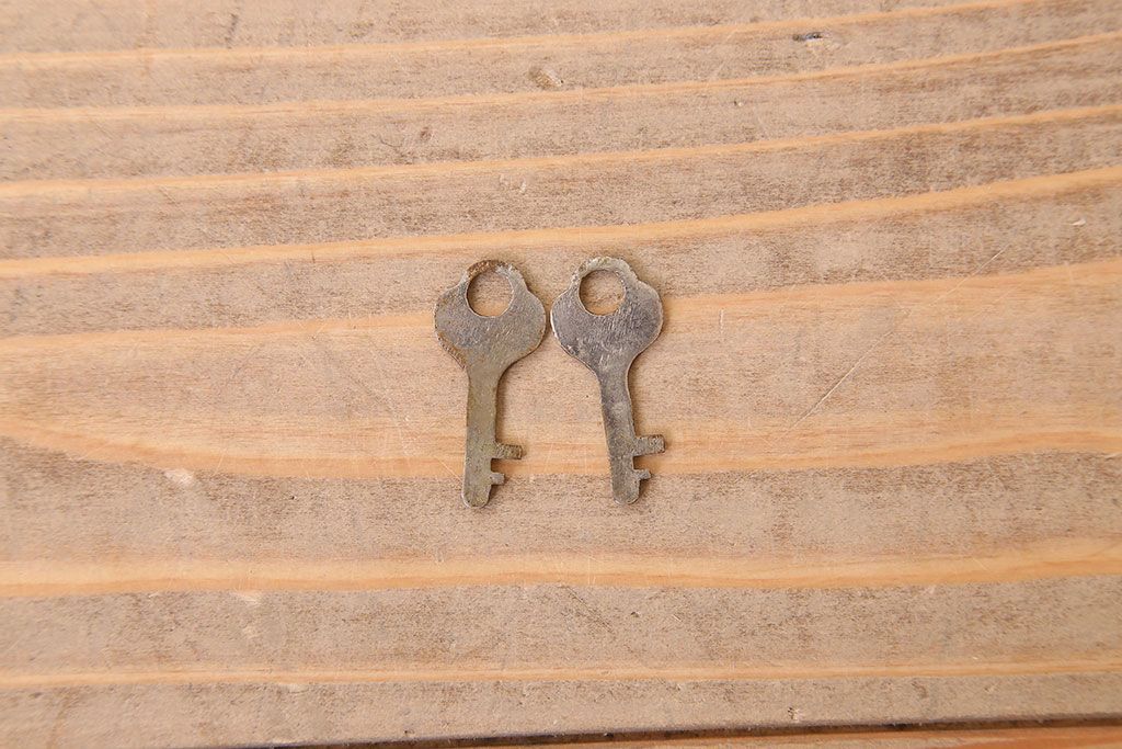 鍵は付属します。画像にありますように、袋に入れお付けします。スムーズに動くように調整していますが、あくまでも古いものや中古品ですので、長期の使用保証は出来かねます。ご購入後不具合が発生した場合は、当店でサポートさせていただきますので、お気軽にご相談くださいませ。