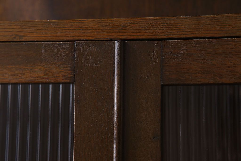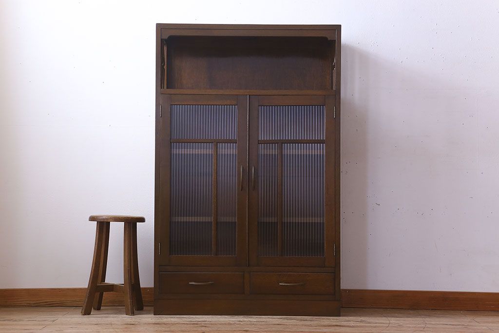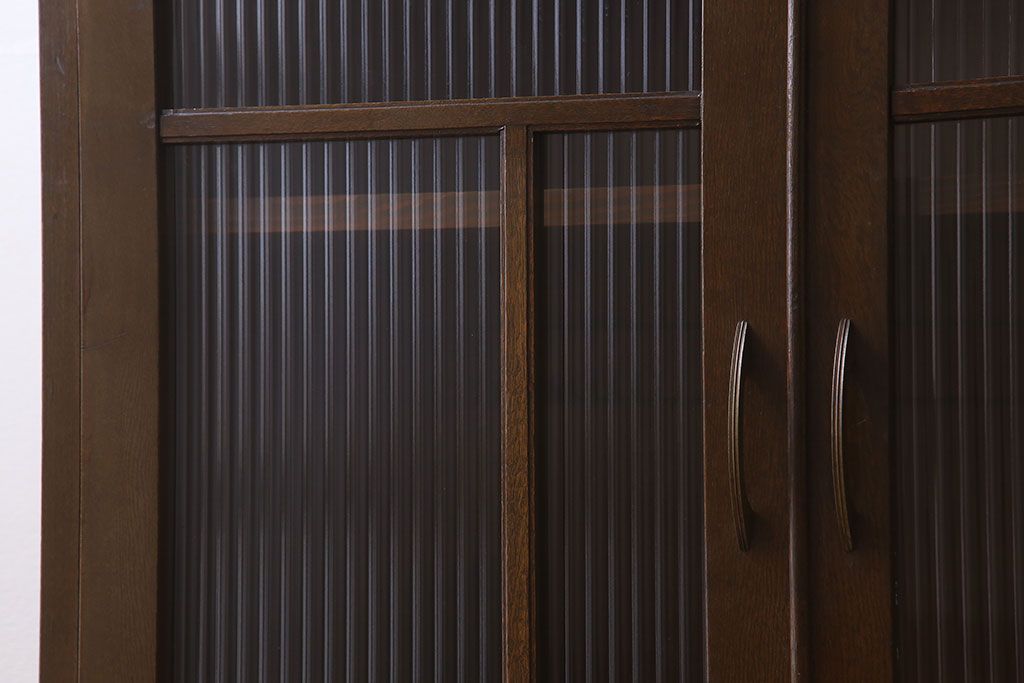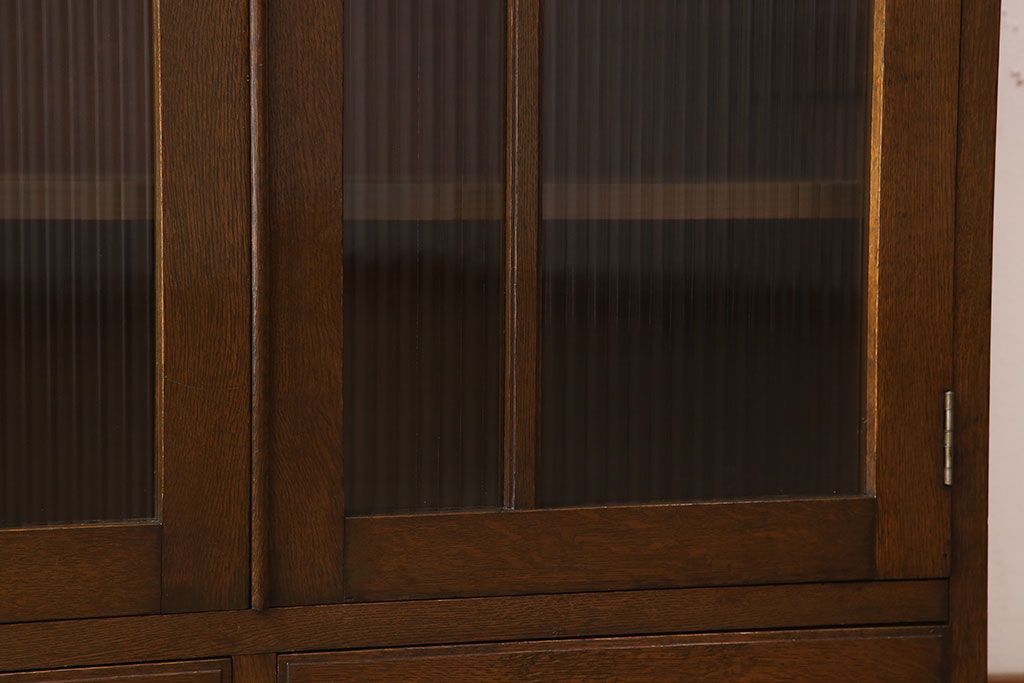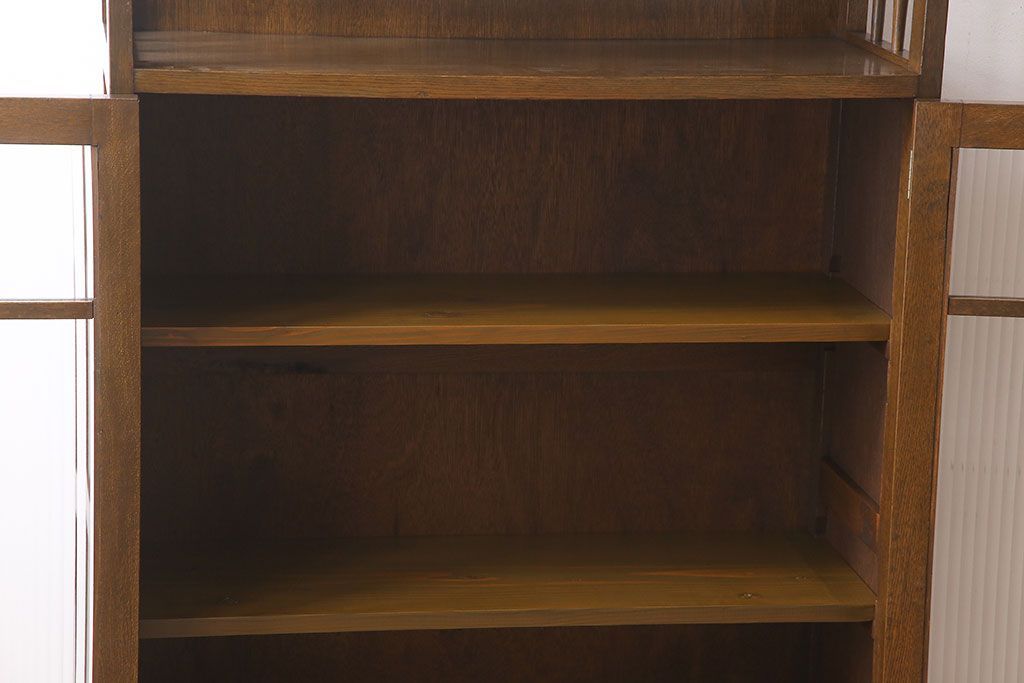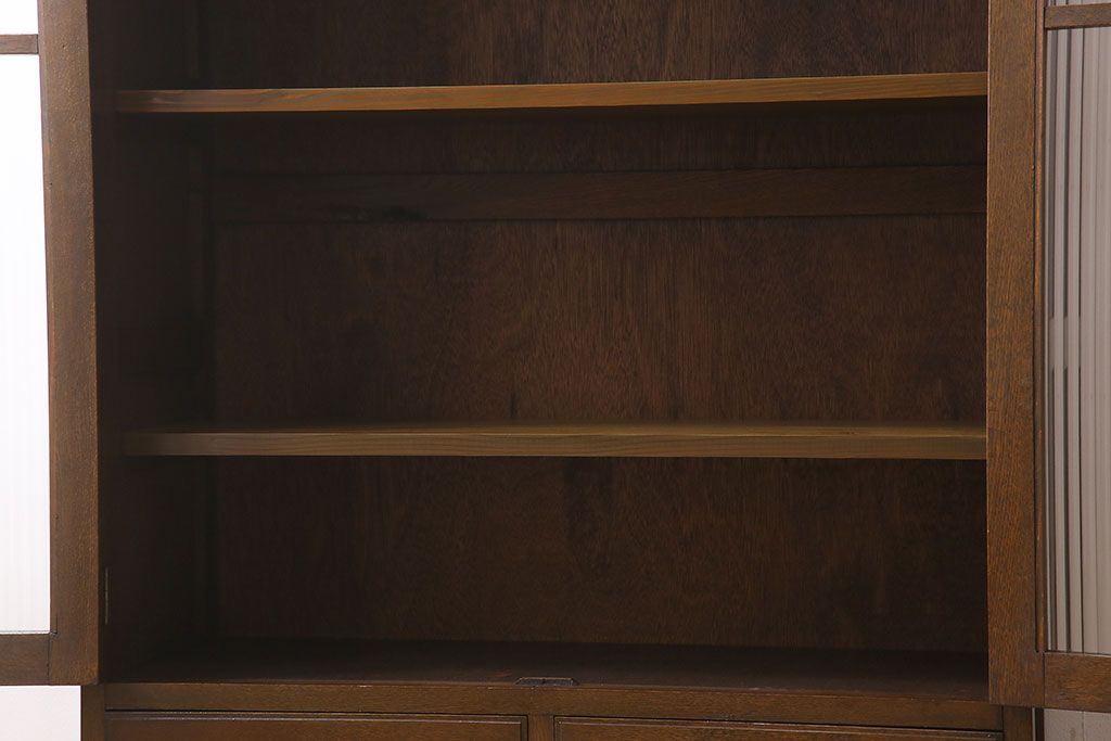 レトロ家具 和製アンティーク モールガラス入り!大ぶりなレトロ本箱(ブックケース)(3)