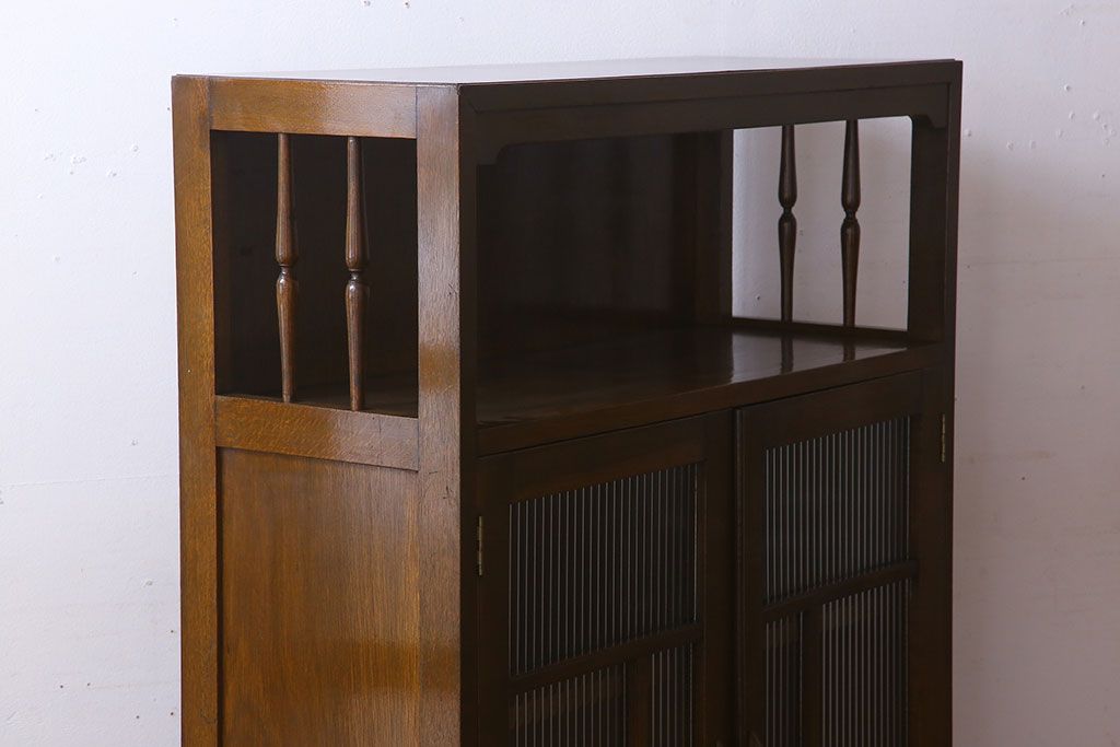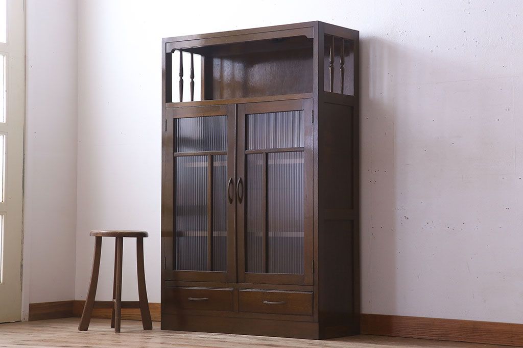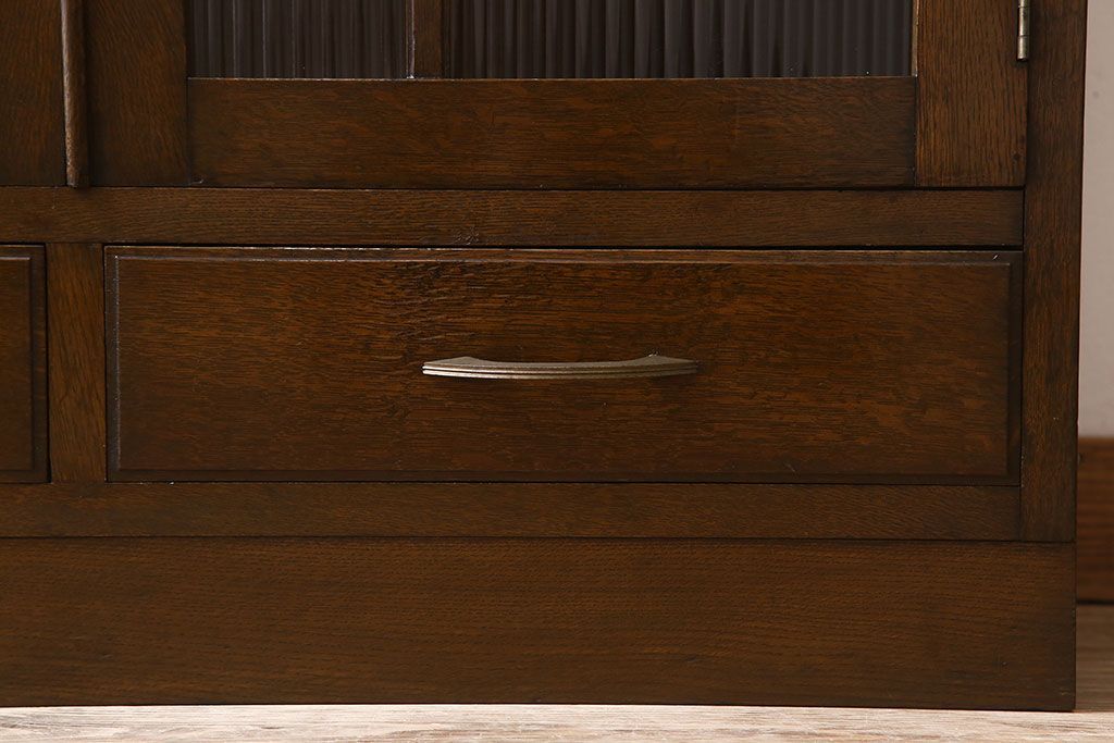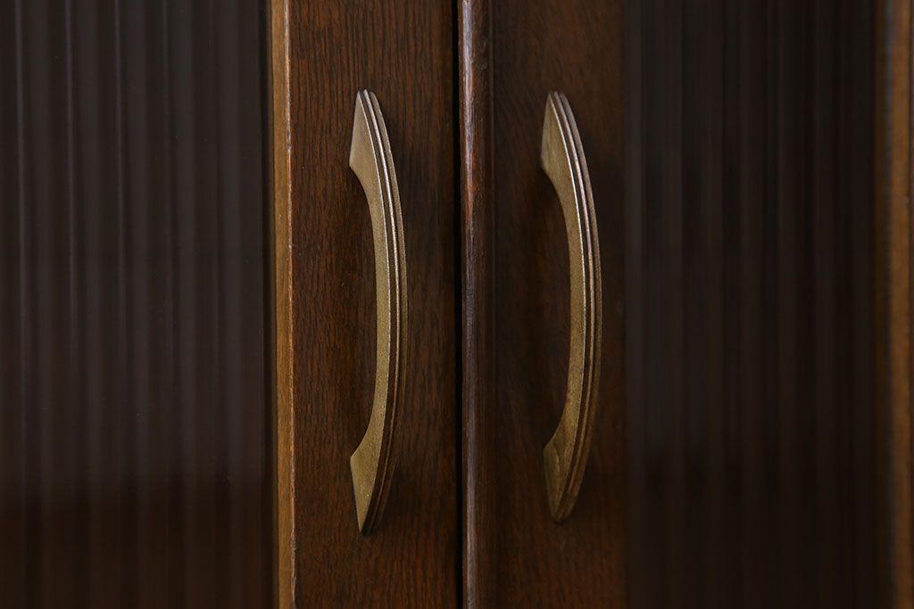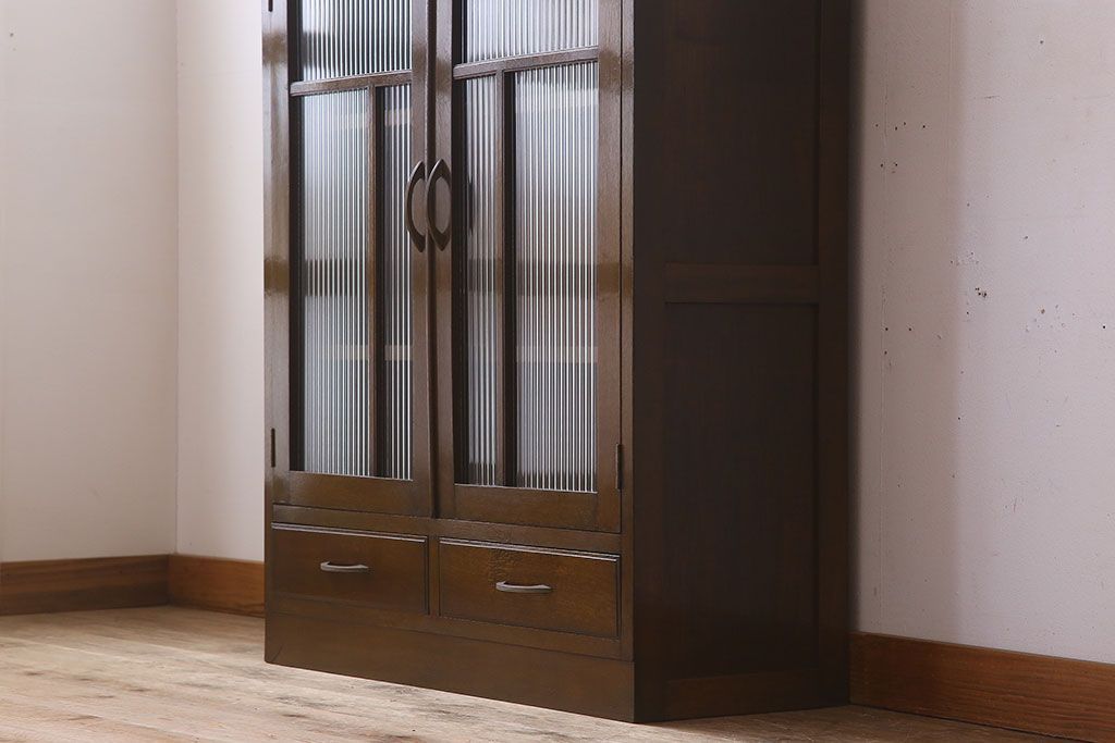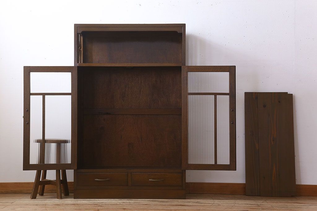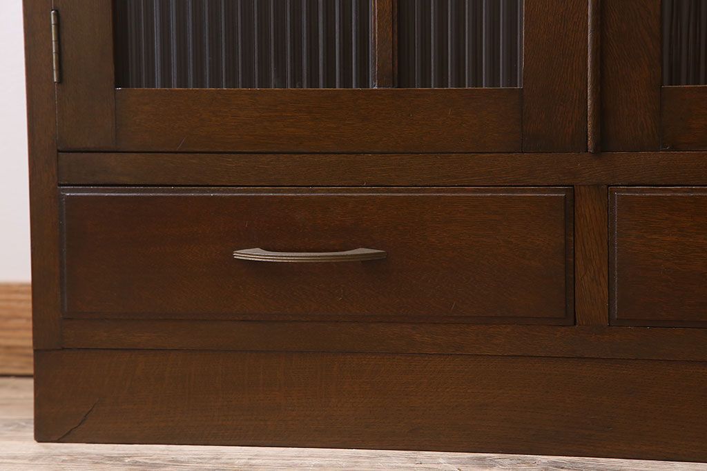 レトロ家具 和製アンティーク モールガラス入り!大ぶりなレトロ本箱(ブックケース)(3)