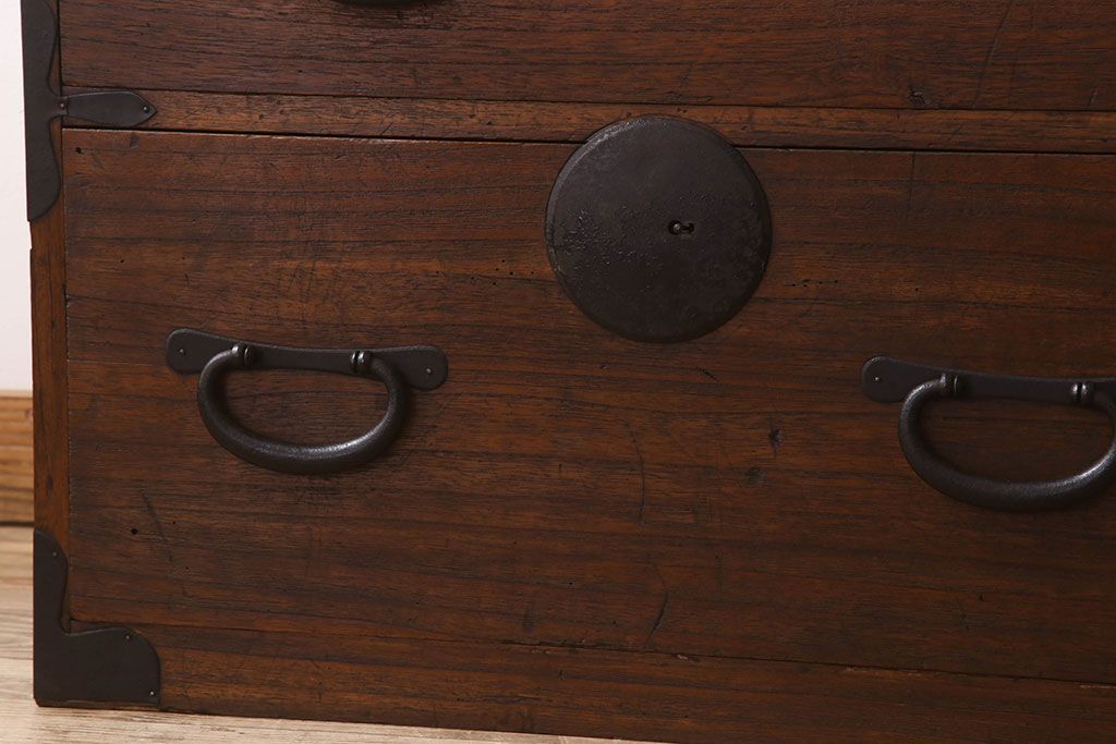 アンティーク家具 和製アンティーク 前面桐材!シンプルな丸金具の時代箪笥ローボード(衣装箪笥)
