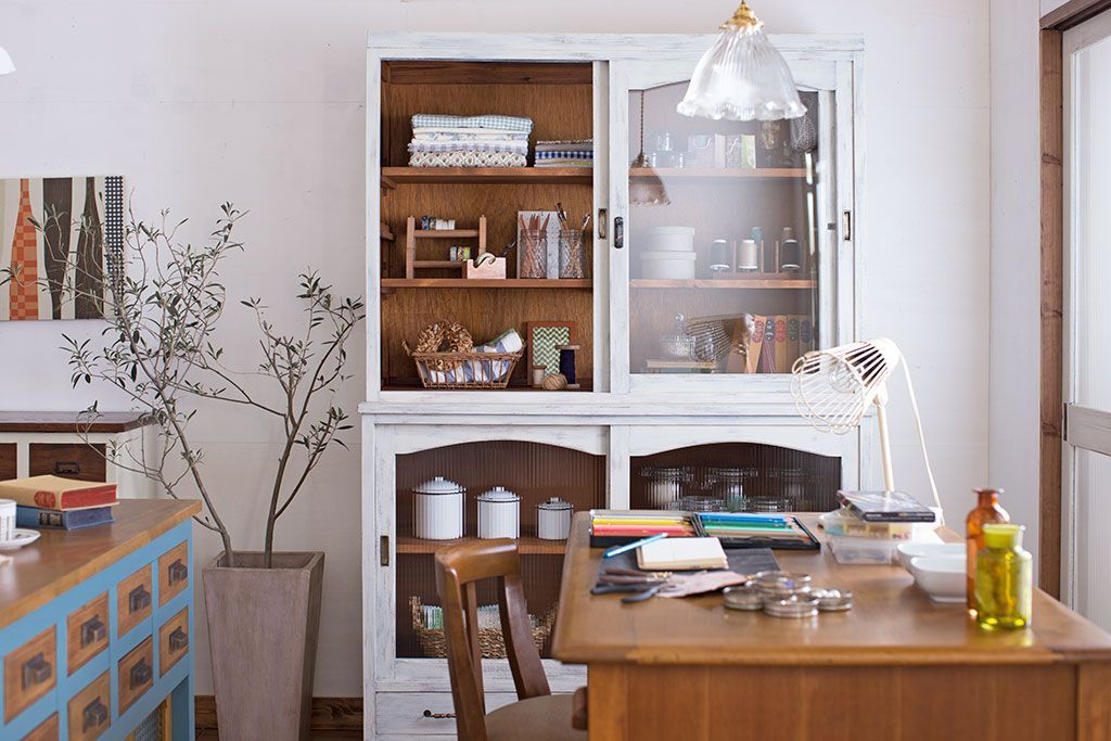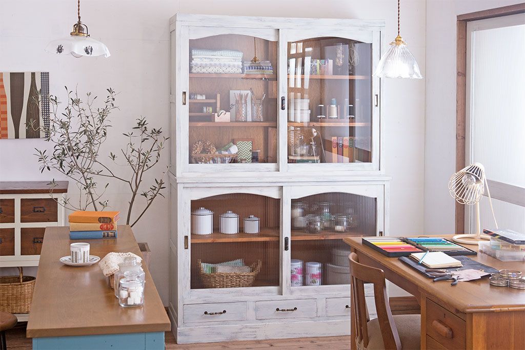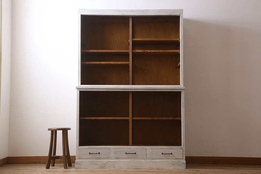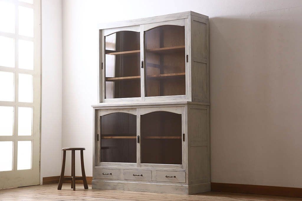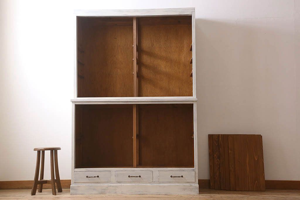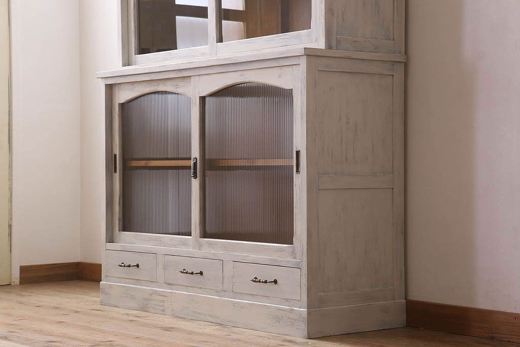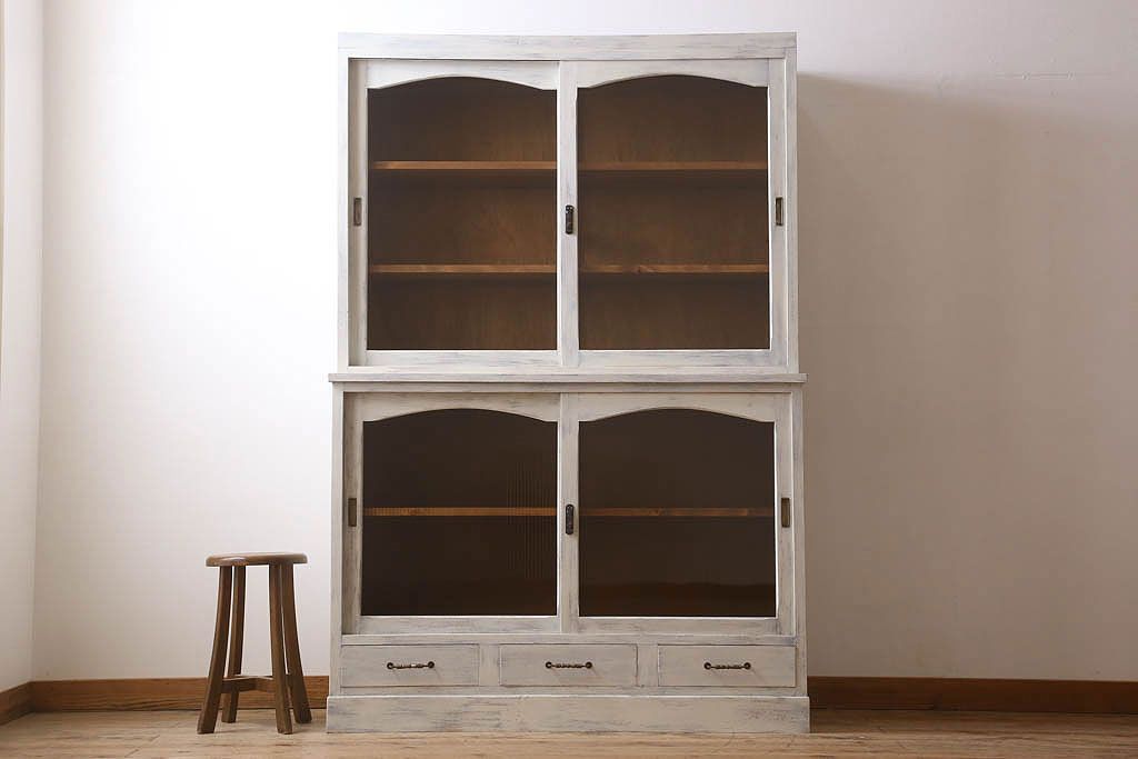アンティーク家具 キャビネット アンティーク 大きなペイント重ね収納棚(食器棚)
