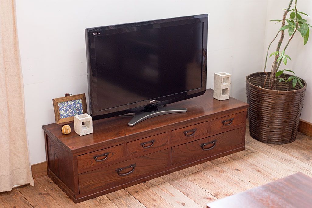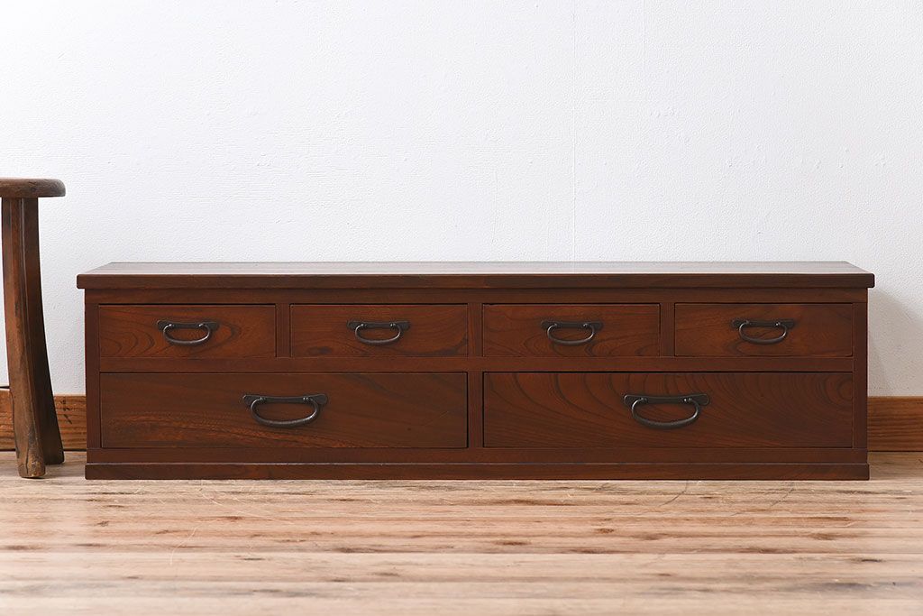 ラフジュ工房> キャビネット・戸棚> テレビ台・ローボード > アンティーク家具 前面・側面欅材 高級品 古い木の和製アンティークローボード