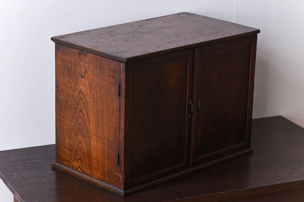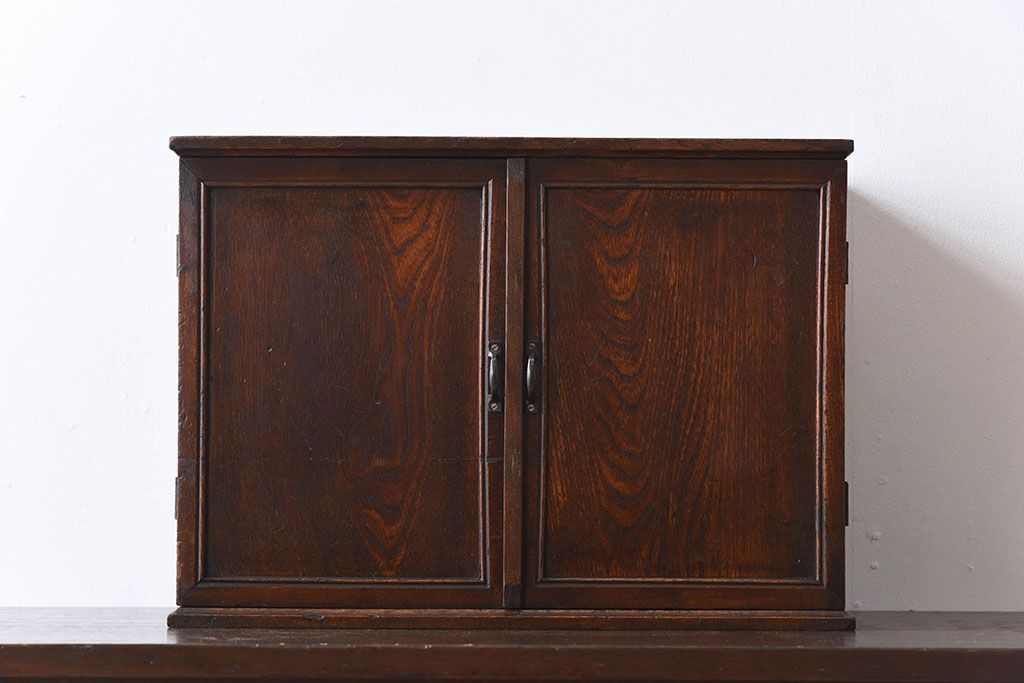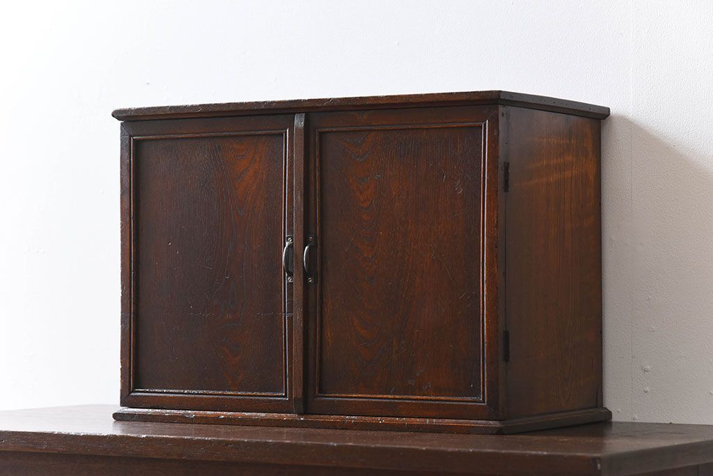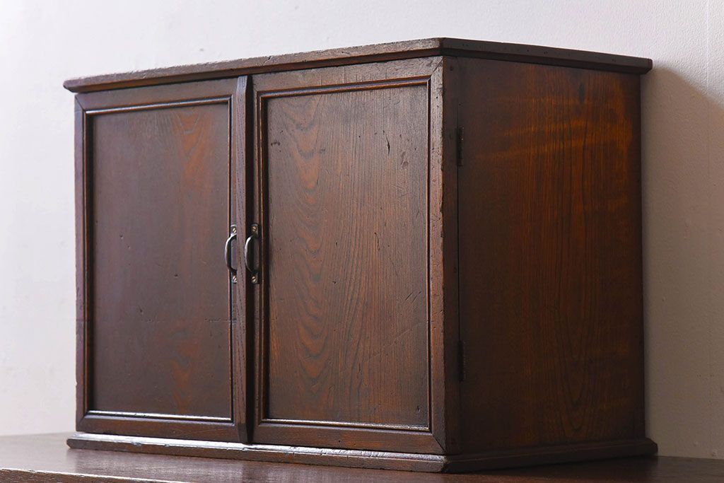 アンティーク家具 大正昭和期 古い栓材の小ぶりでシンプルなアンティーク収納棚