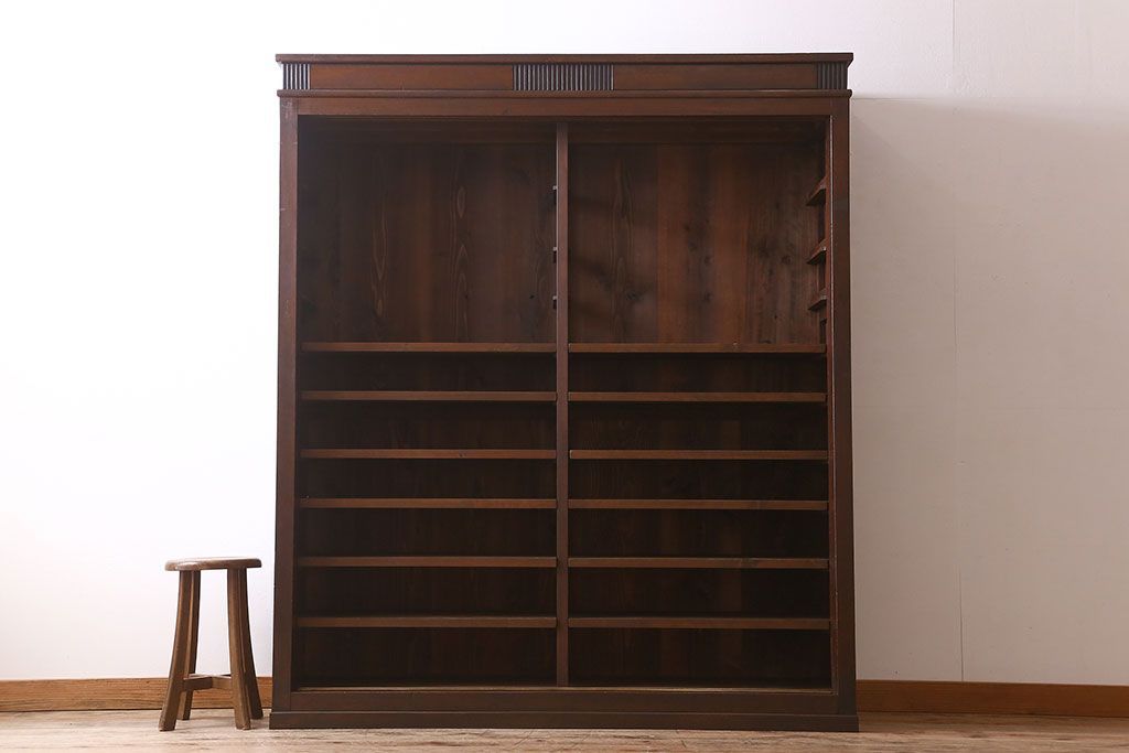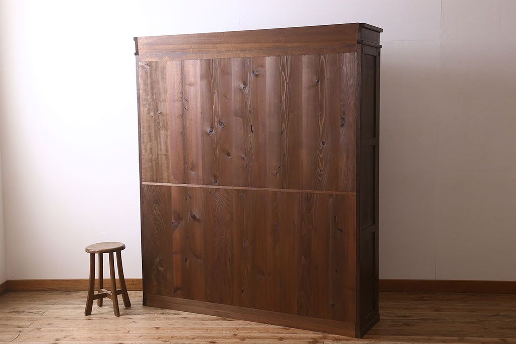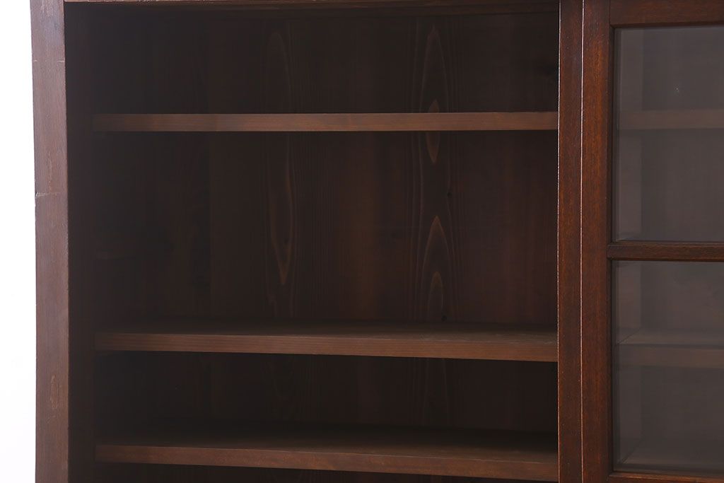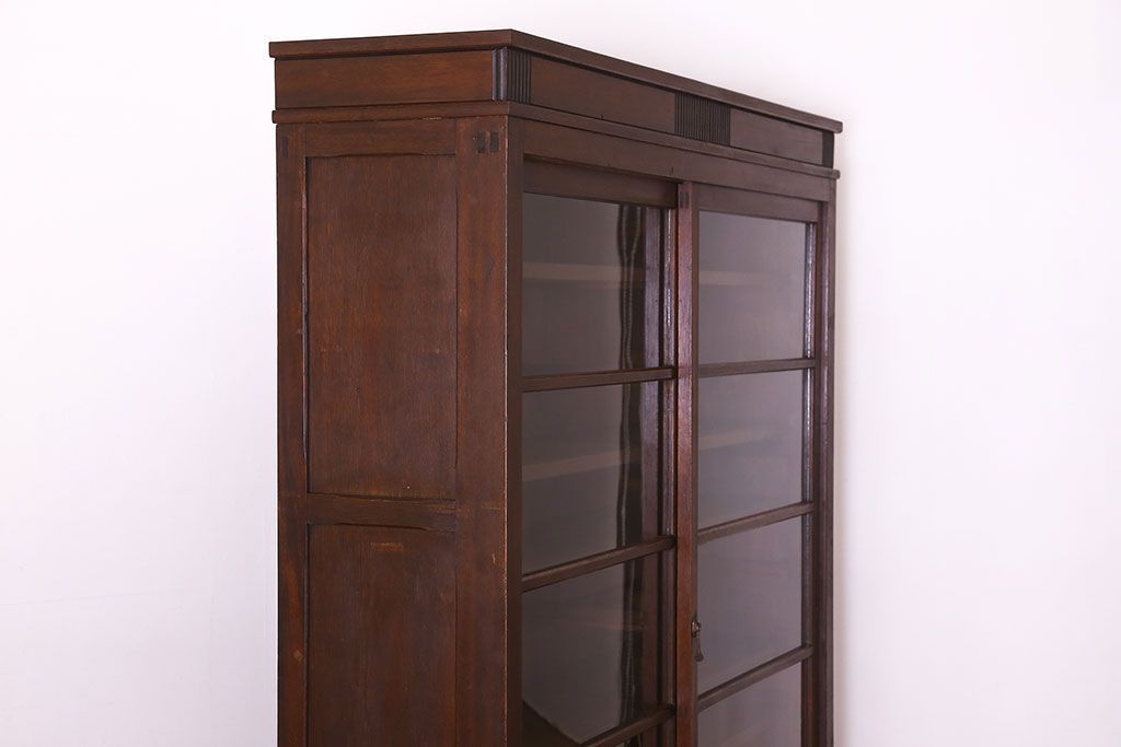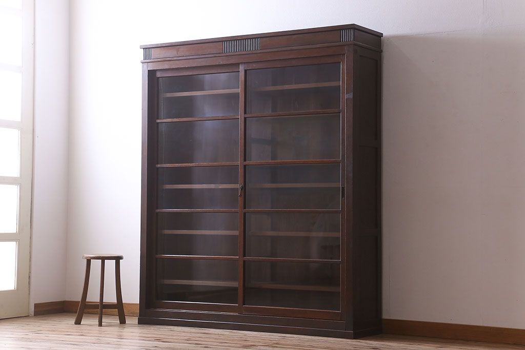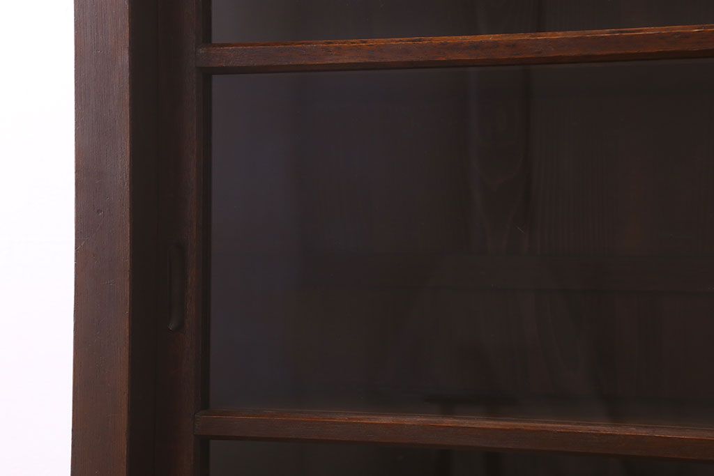 アンティーク家具 ガラス引き戸 薄型!和製アンティークの大きな収納棚