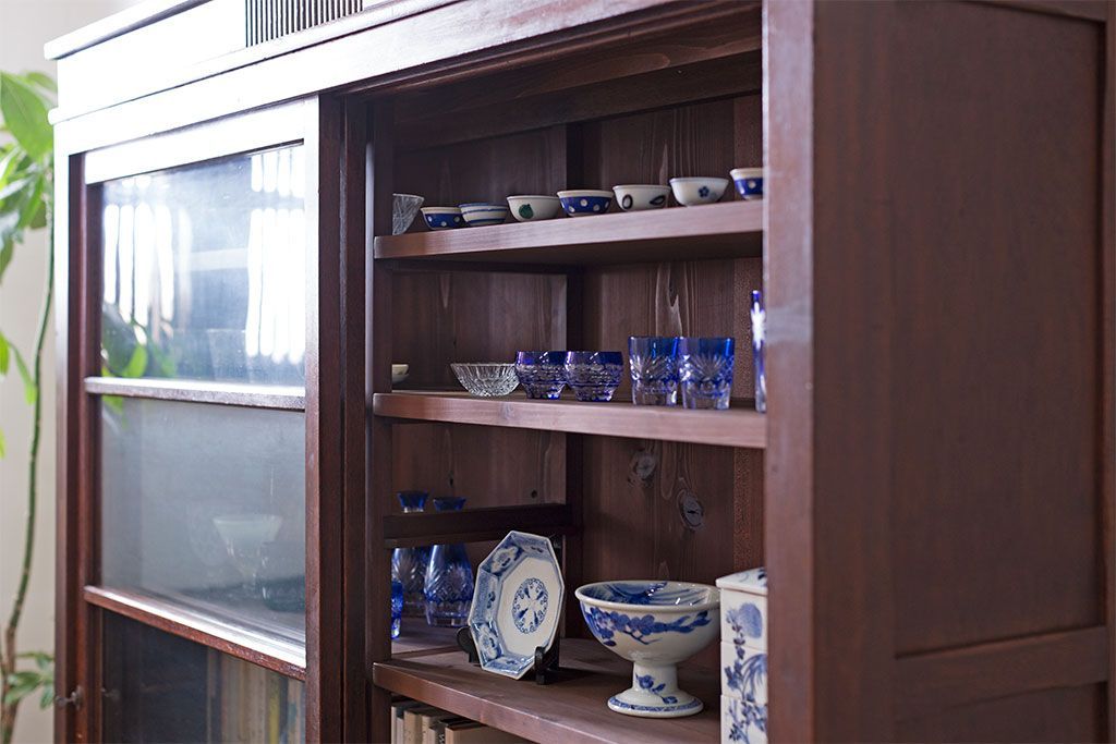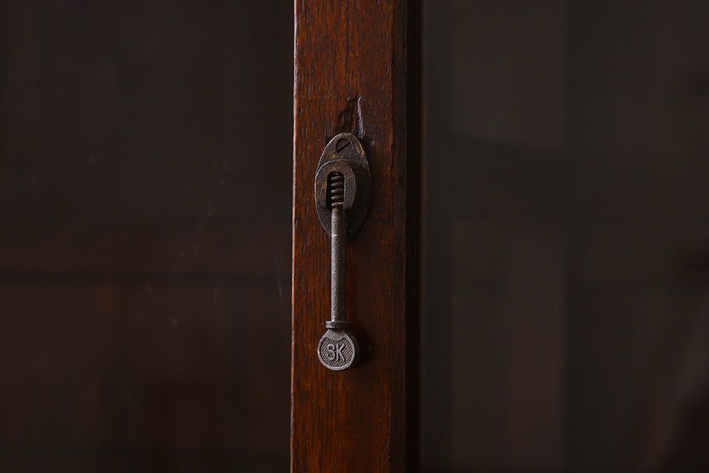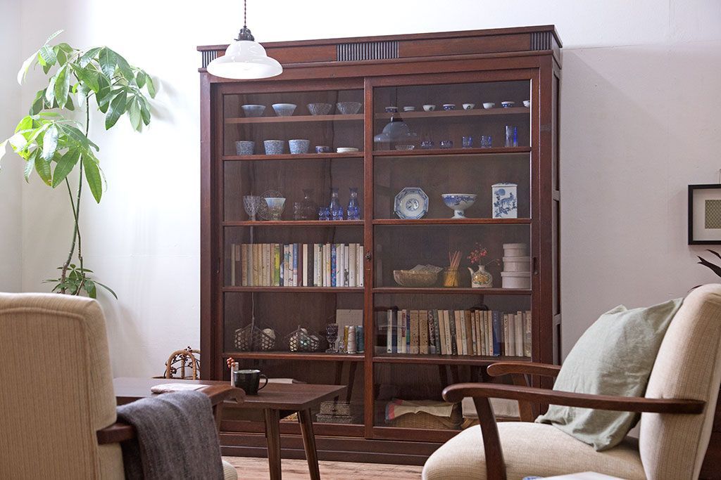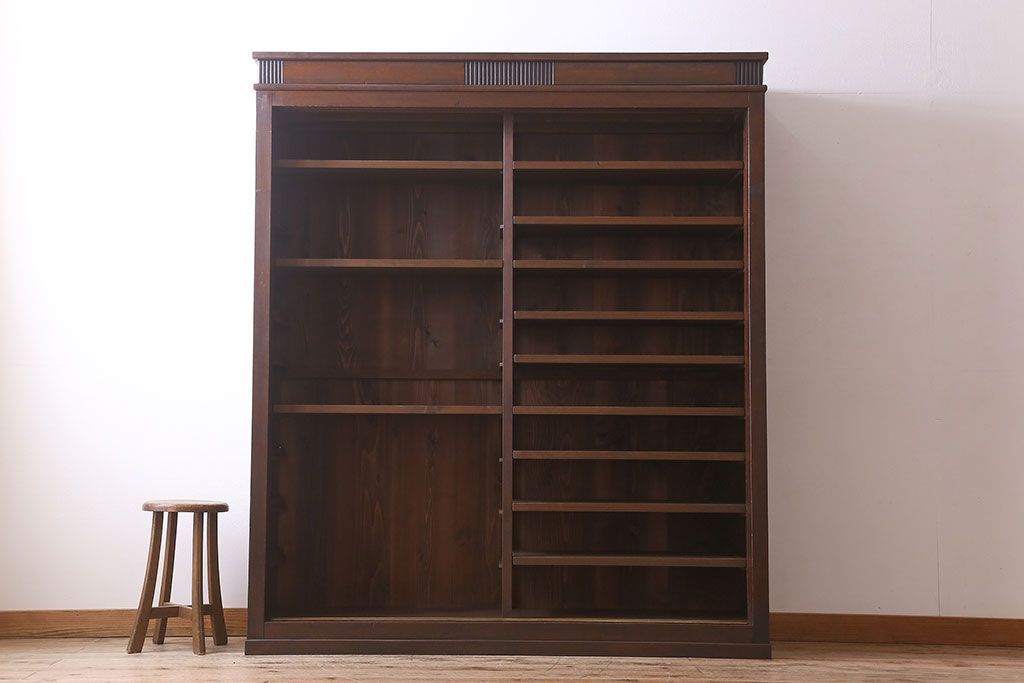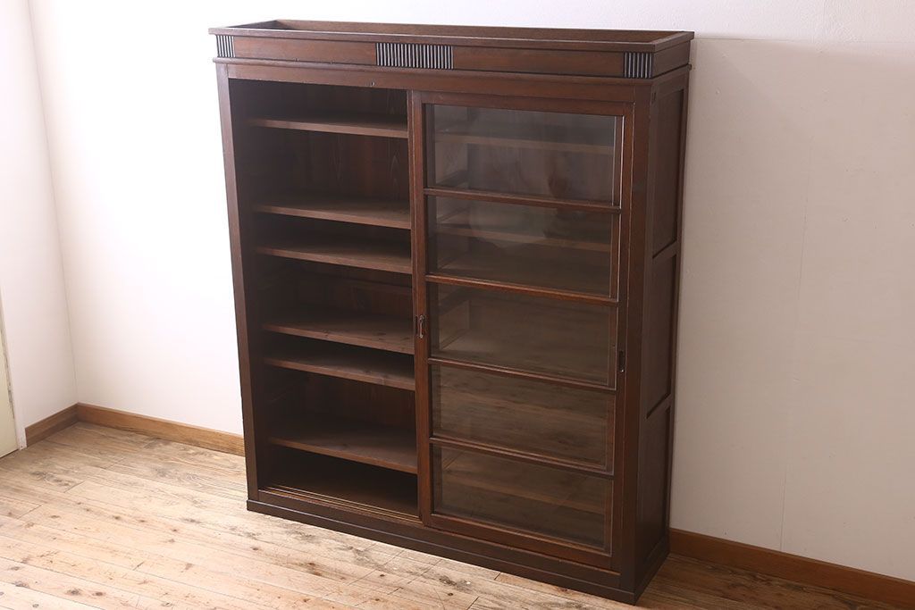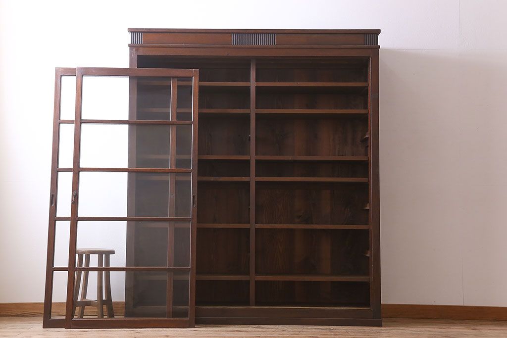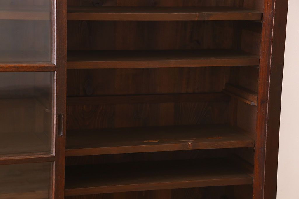 アンティーク家具 ガラス引き戸 薄型!和製アンティークの大きな収納棚