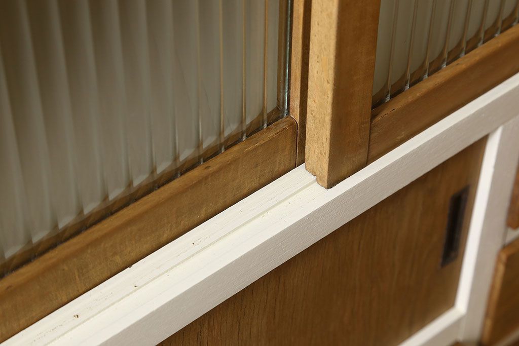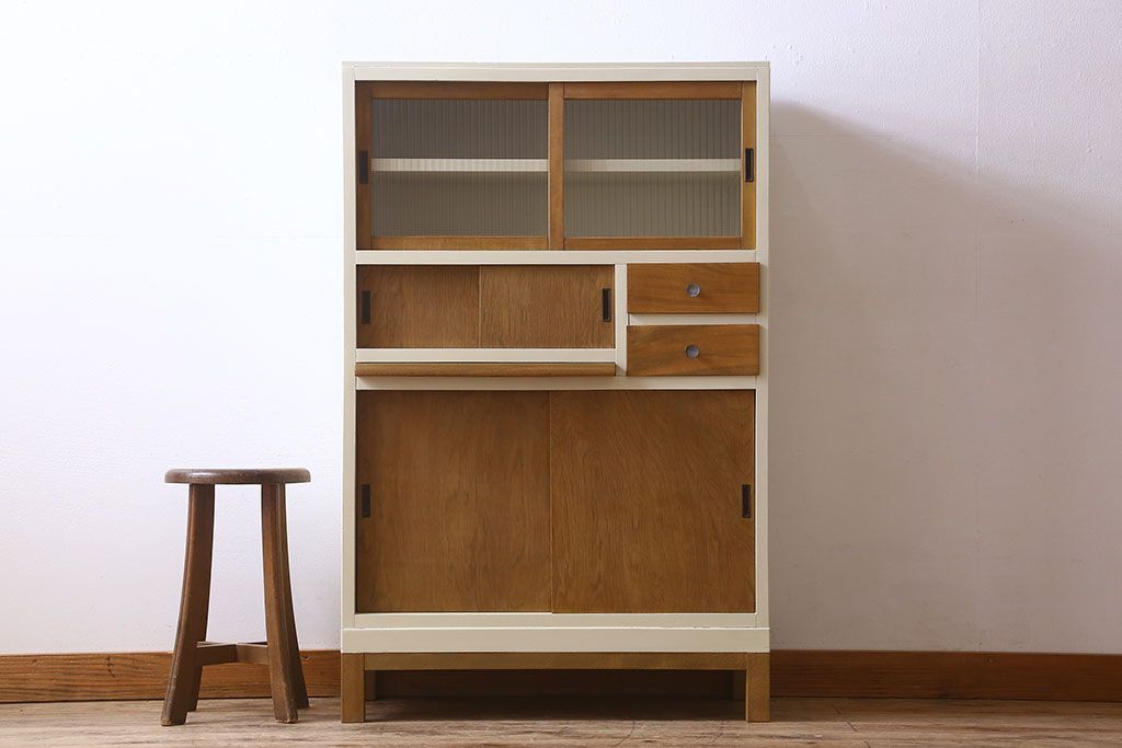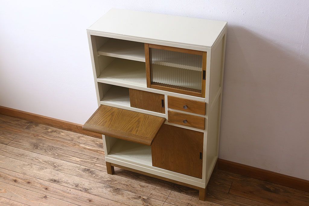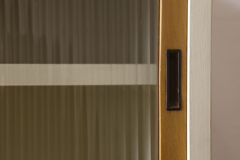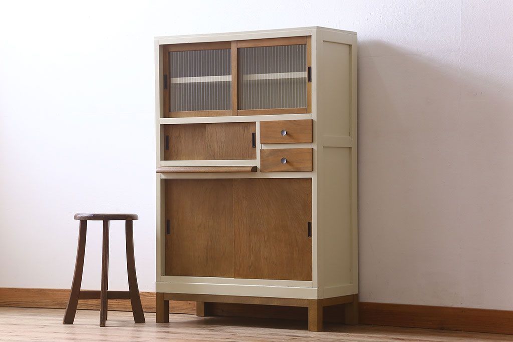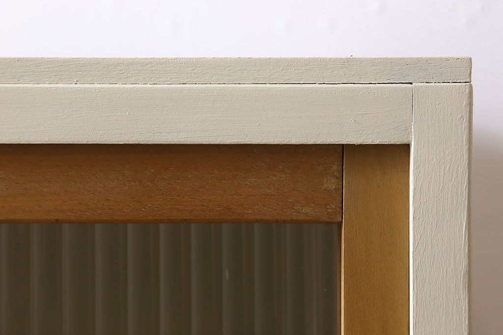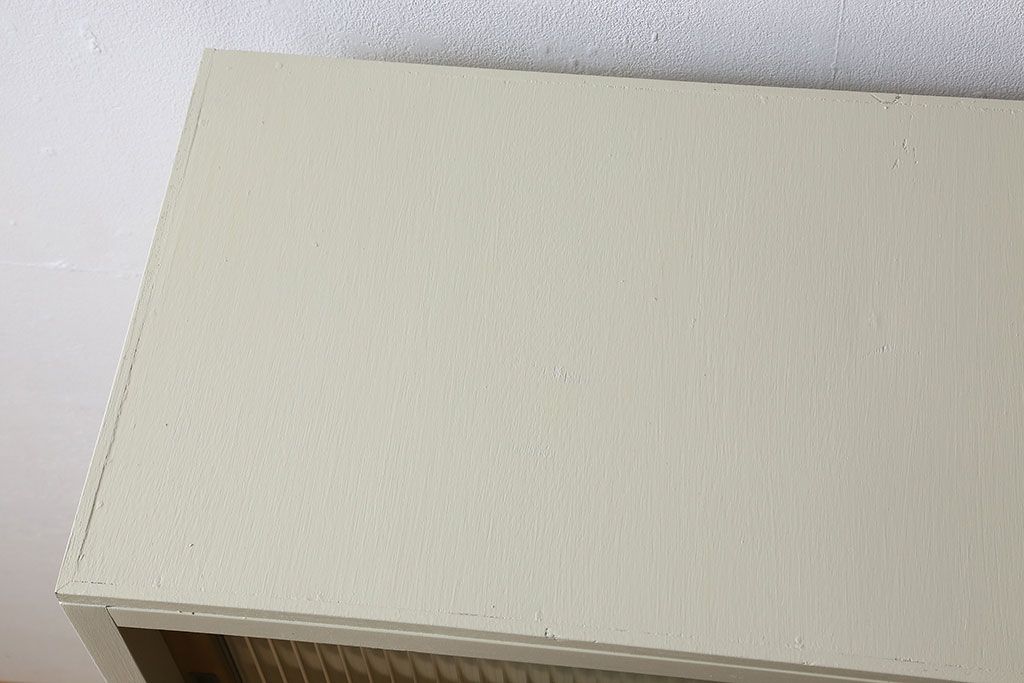 アンティーク家具 アンティークペイント 脚付き!モールガラス引き戸の小振りな食器棚(2)