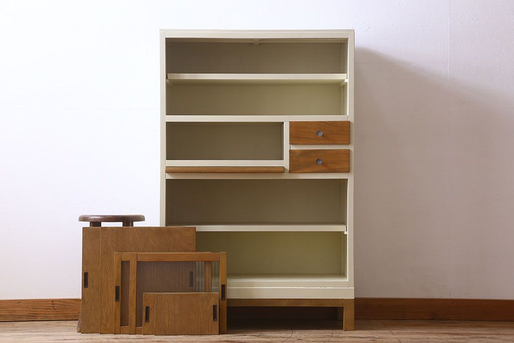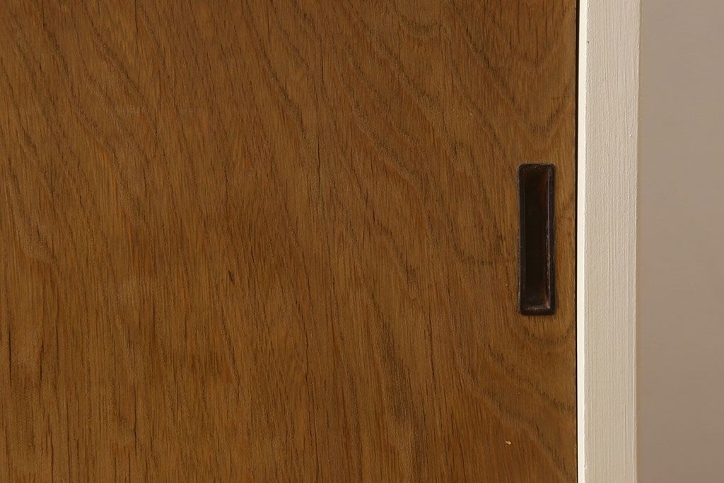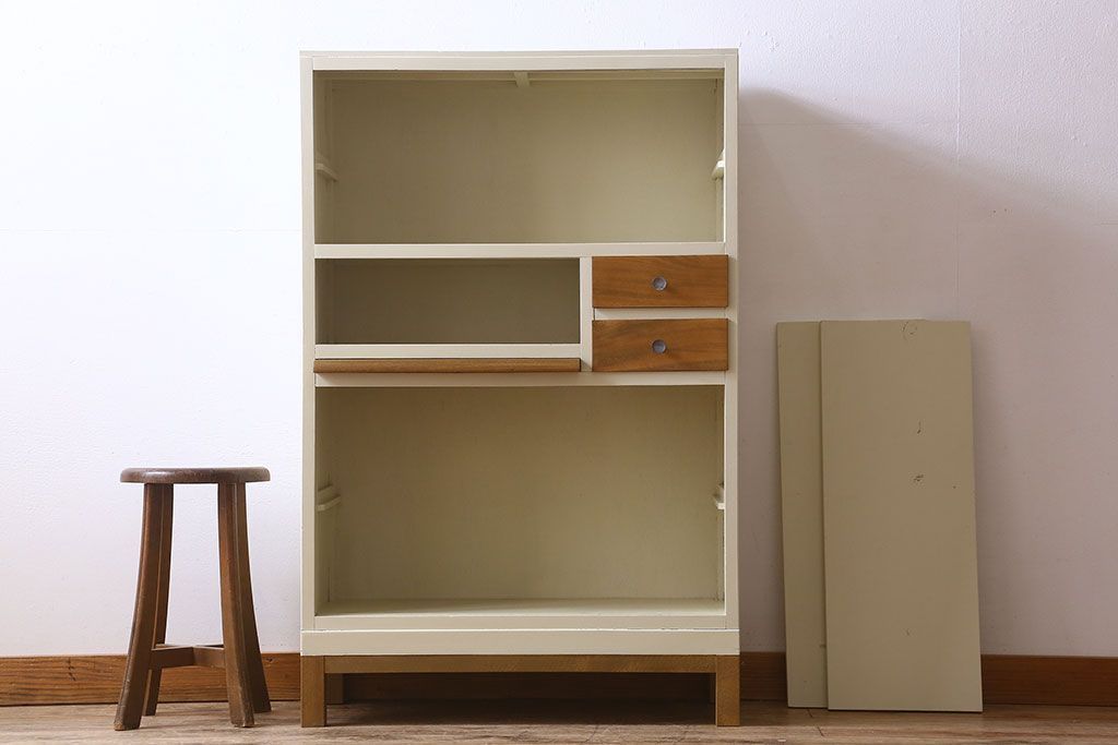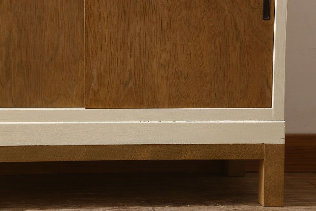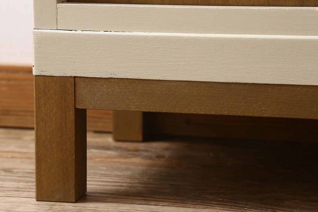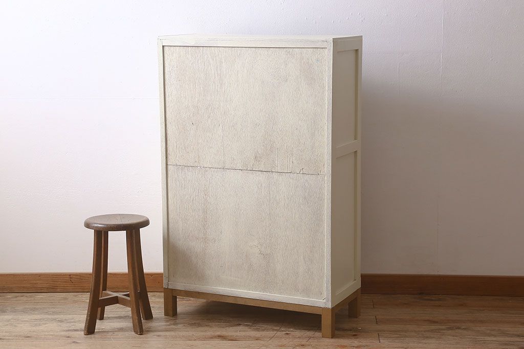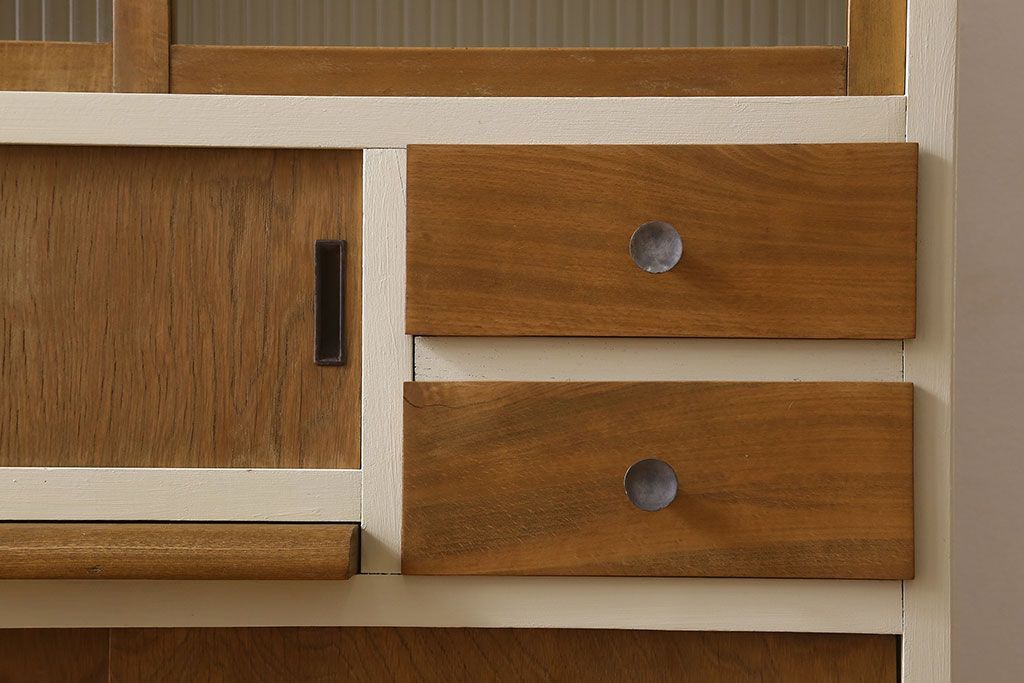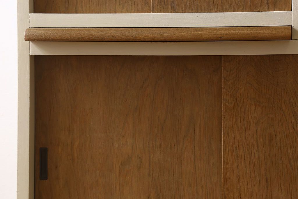 アンティーク家具 アンティークペイント 脚付き!モールガラス引き戸の小振りな食器棚(2)