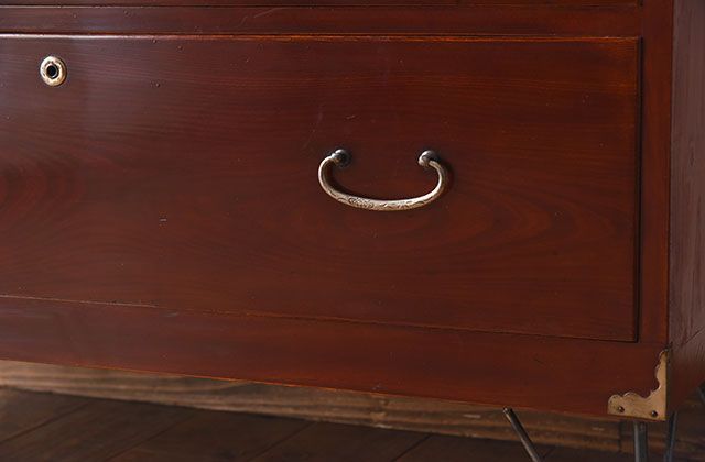 アンティーク家具 鉄脚付き時代箪笥ローボード 前面欅材 和製アンティーク