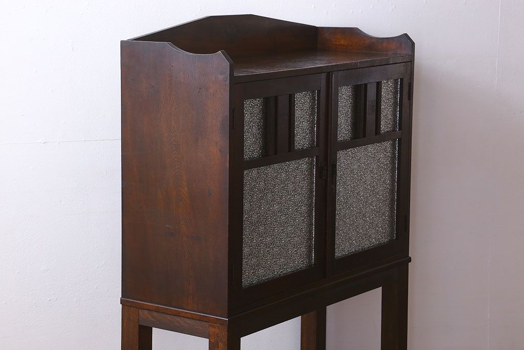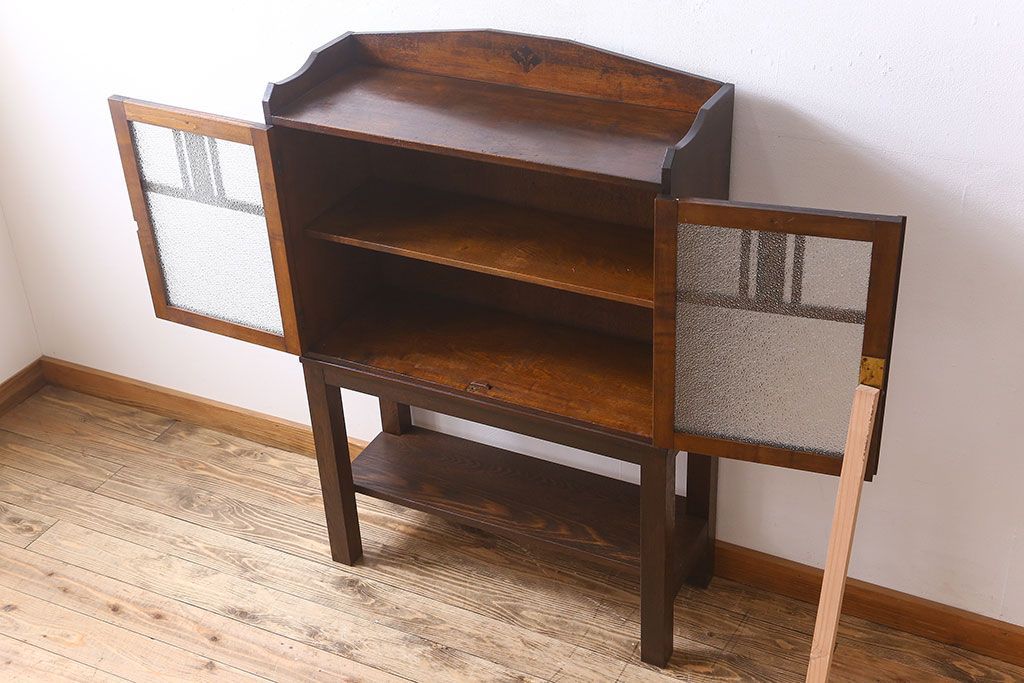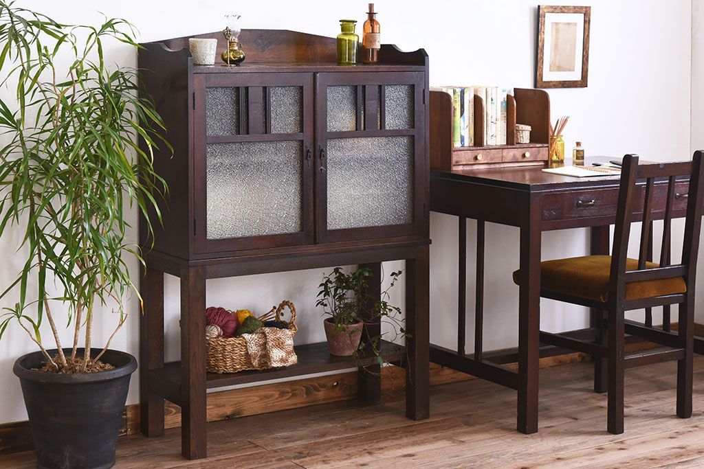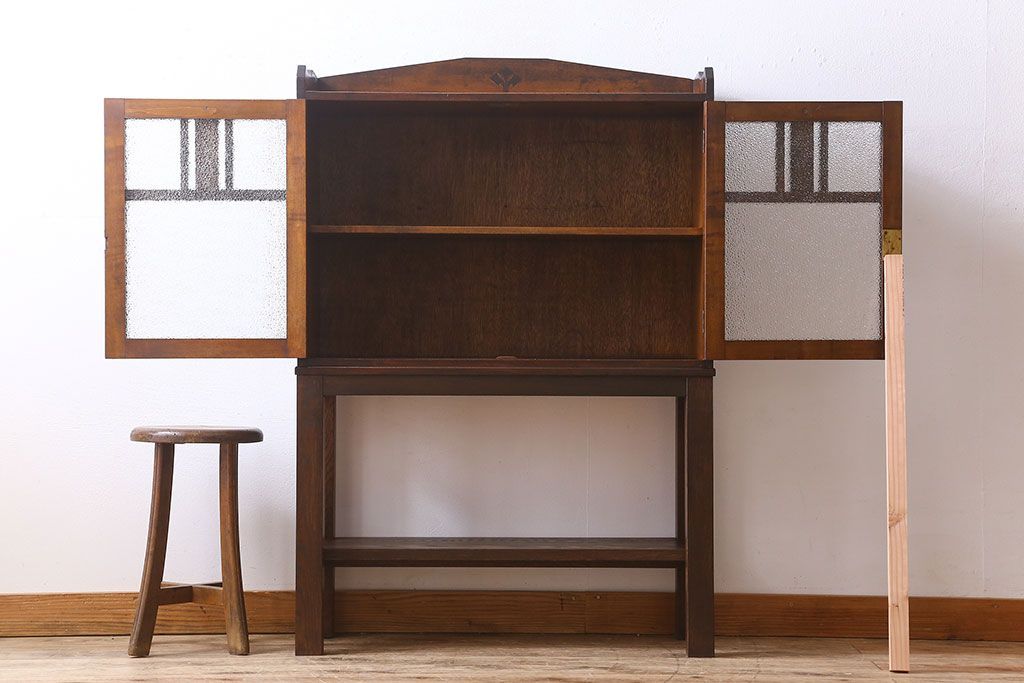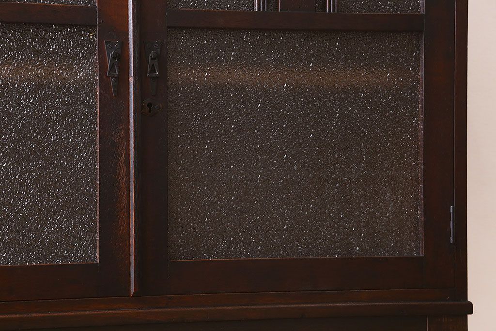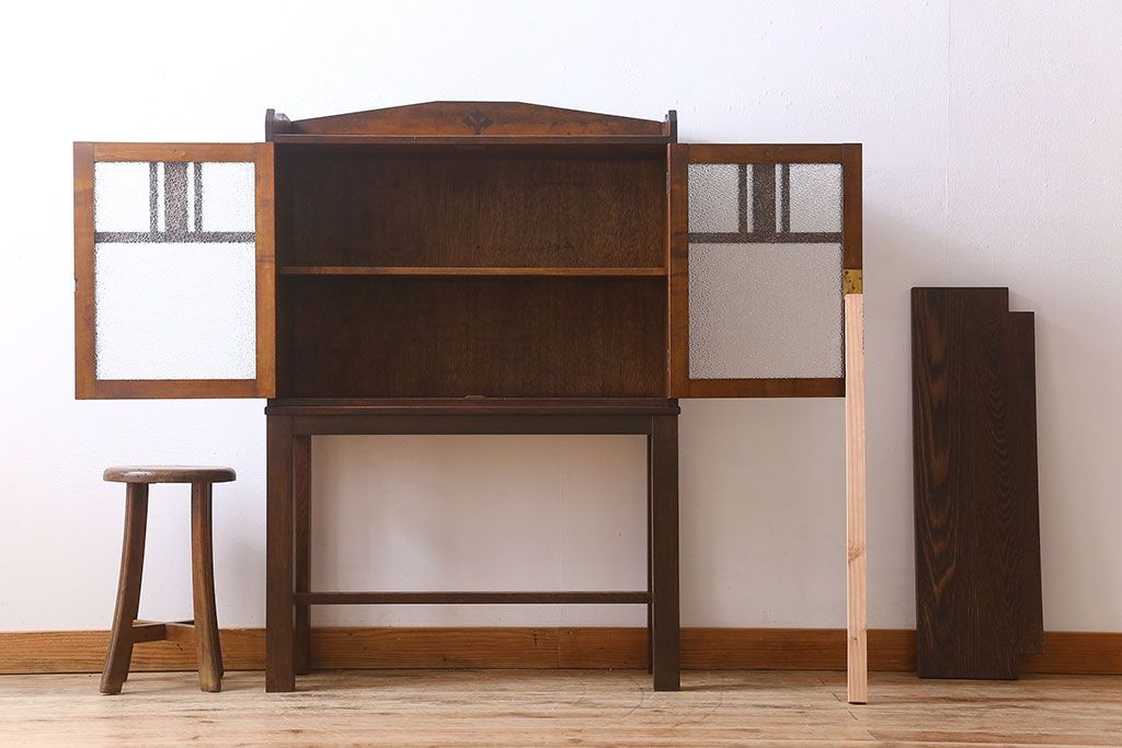 アンティーク家具 大正ロマン 脚付き!ダイヤガラス扉のアンティークブックケース(本箱)