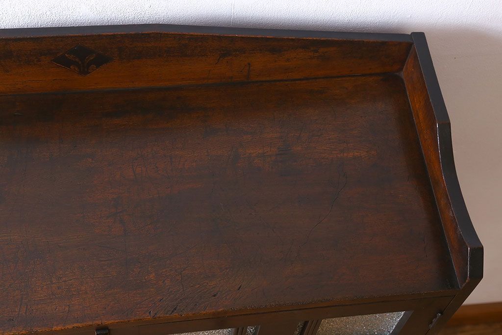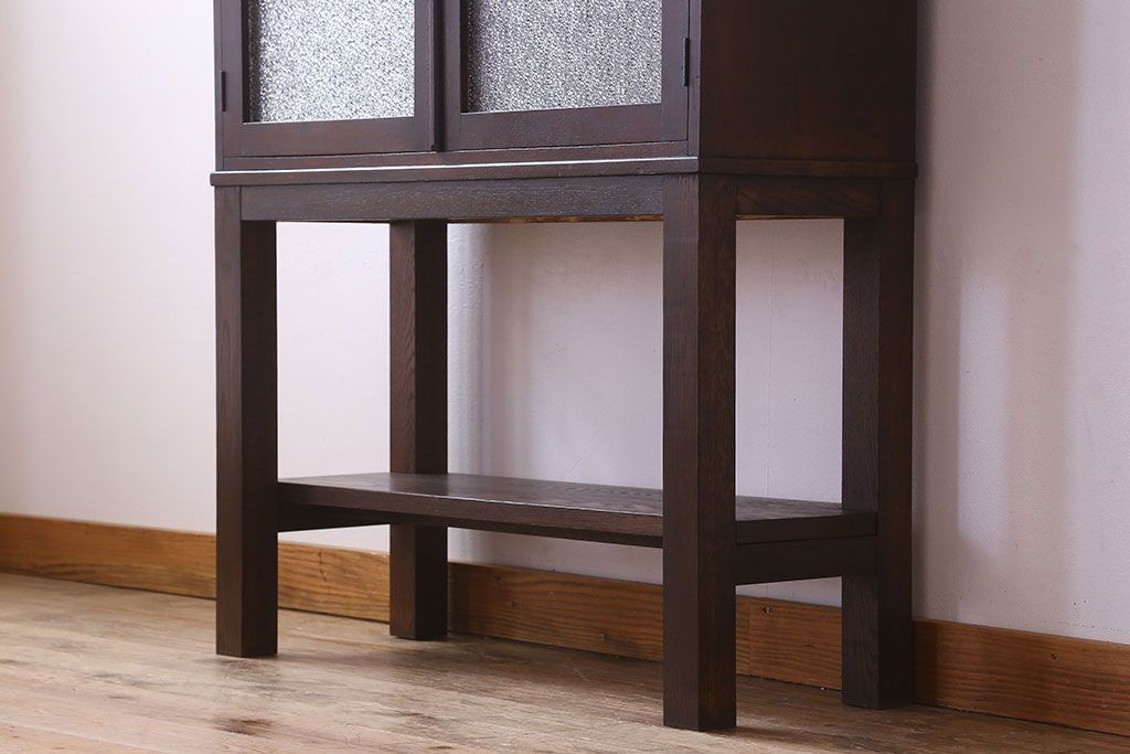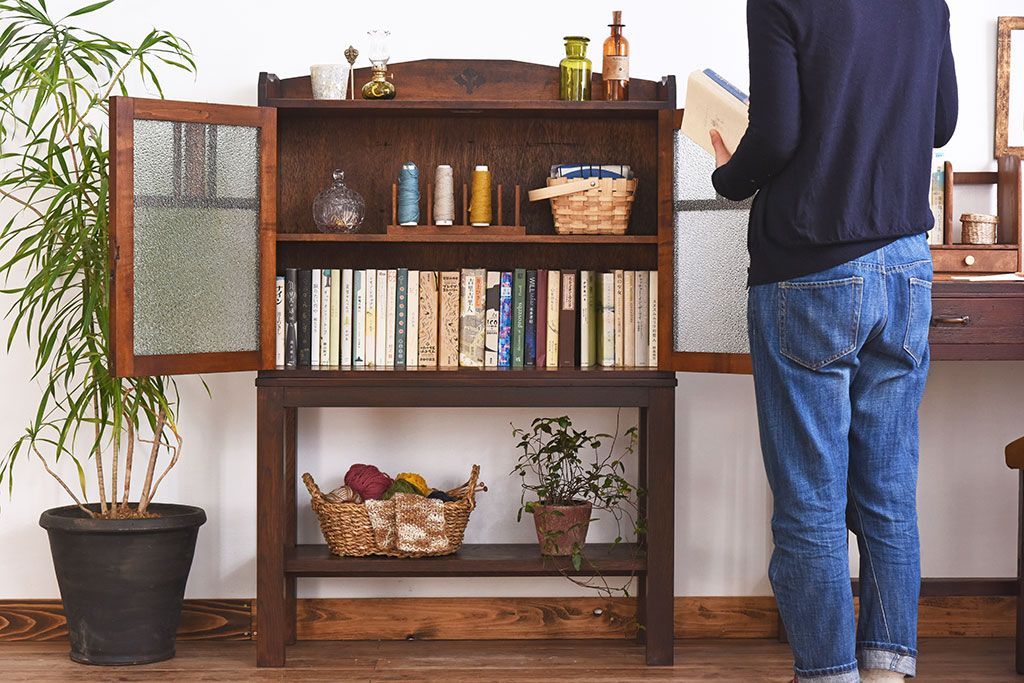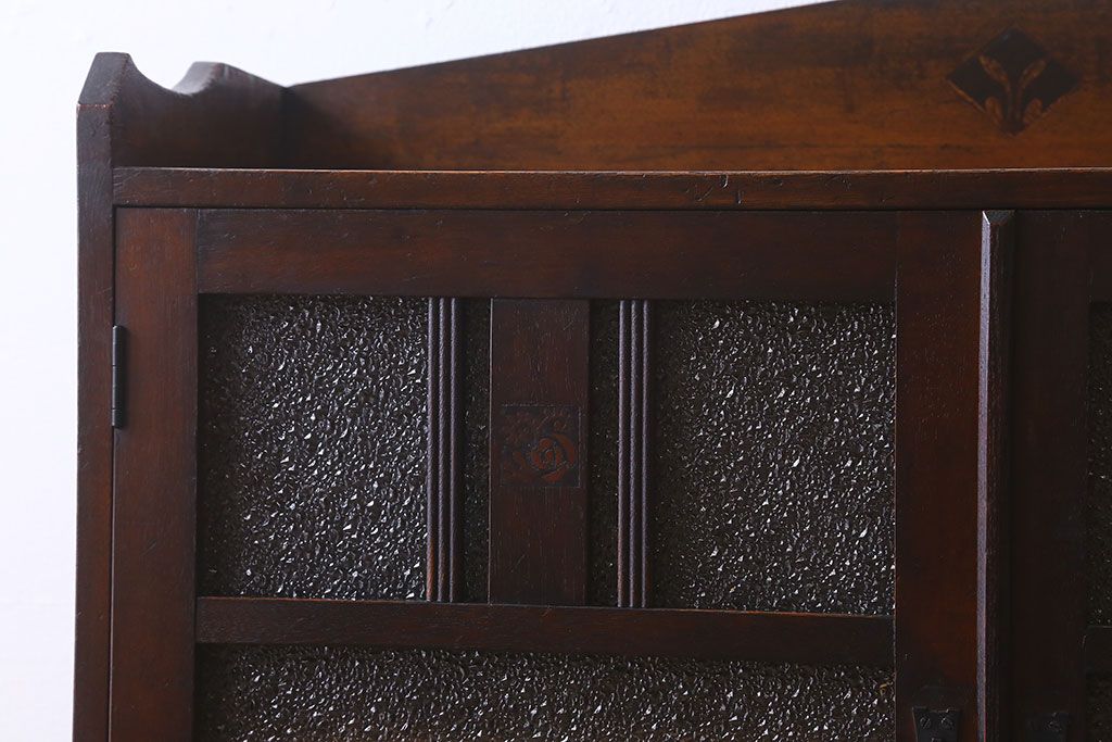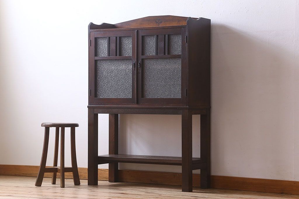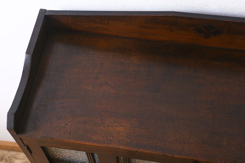 アンティーク家具 大正ロマン 脚付き!ダイヤガラス扉のアンティークブックケース(本箱)