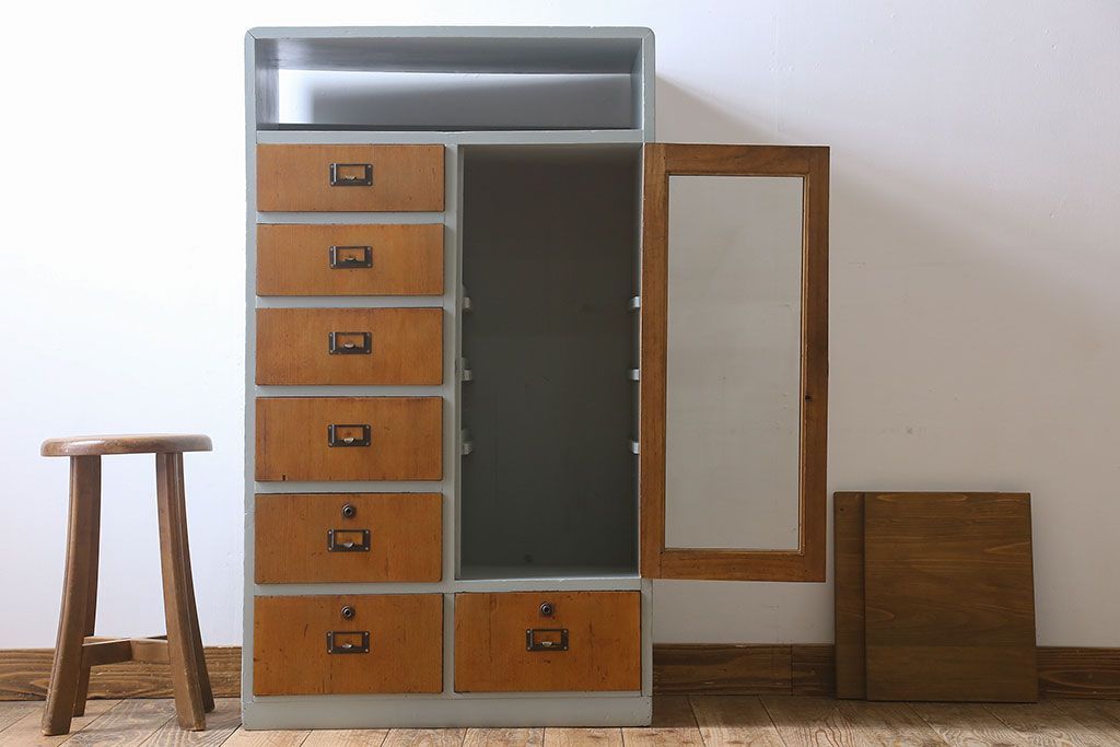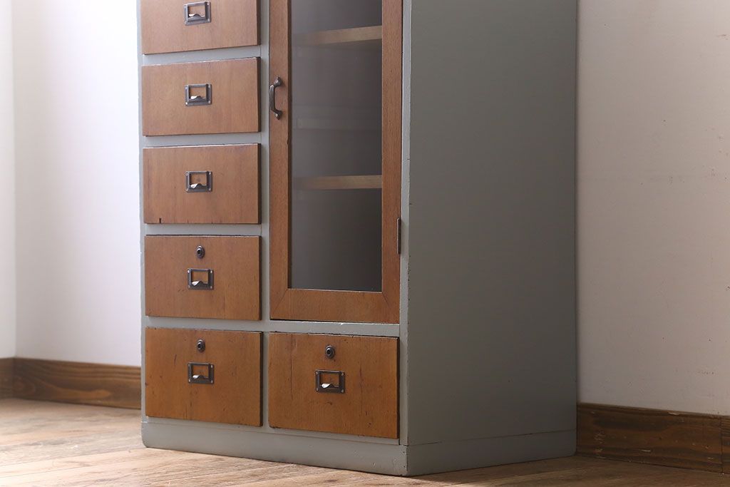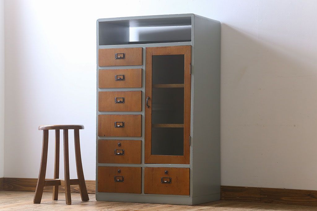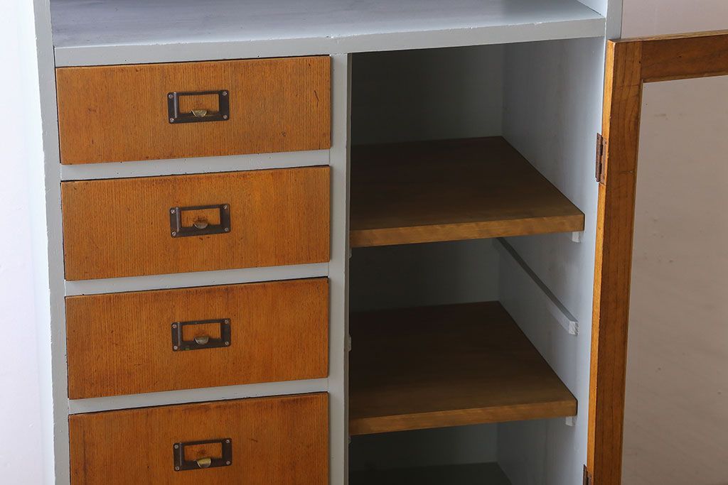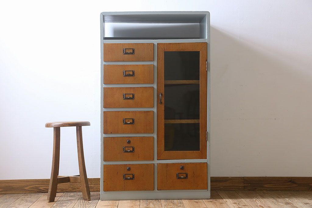 アンティーク家具 7杯引き出し付き!和製アンティークのペイント収納棚(戸棚)