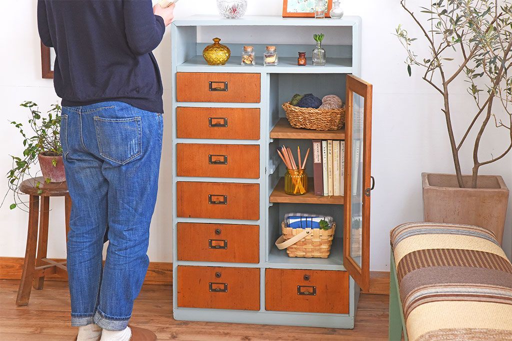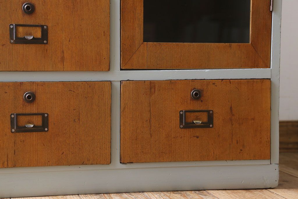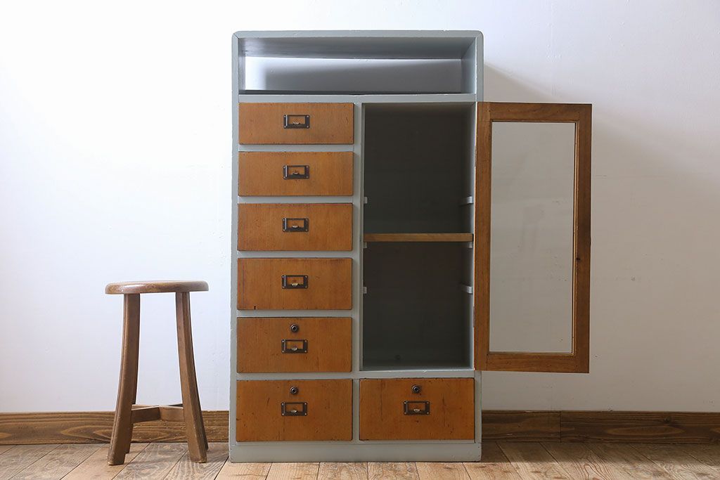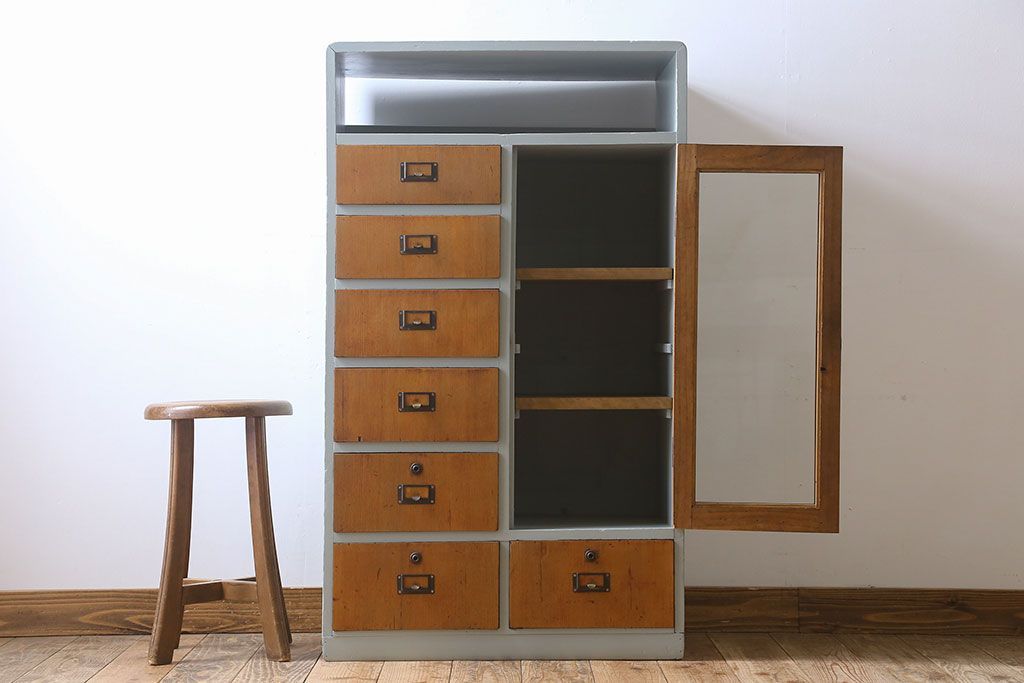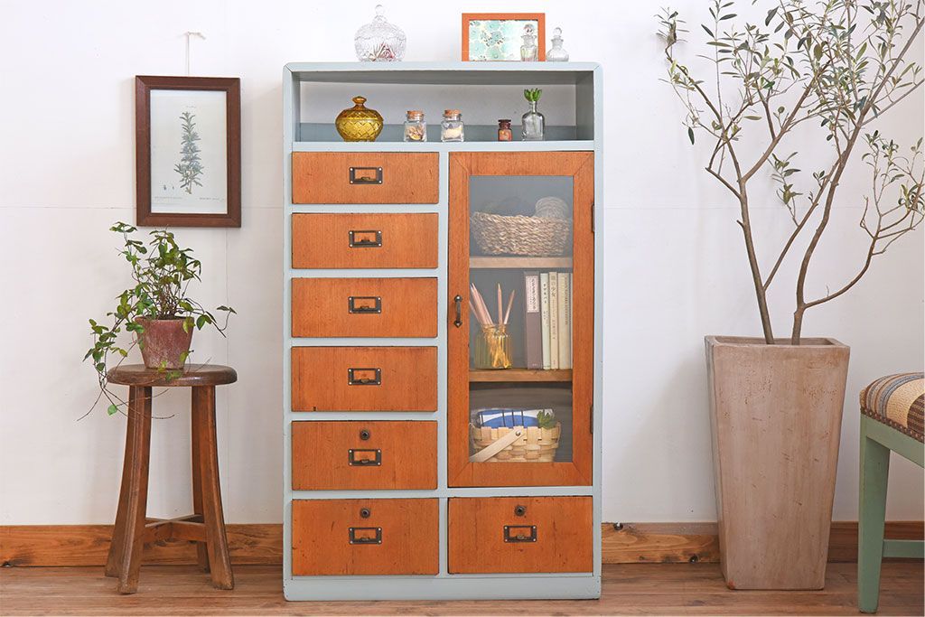 アンティーク家具 7杯引き出し付き!和製アンティークのペイント収納棚(戸棚)