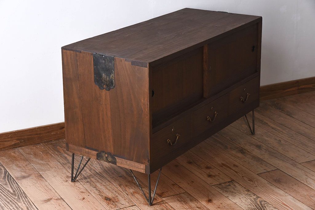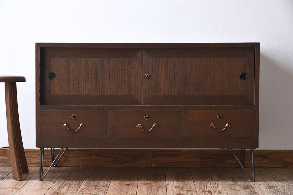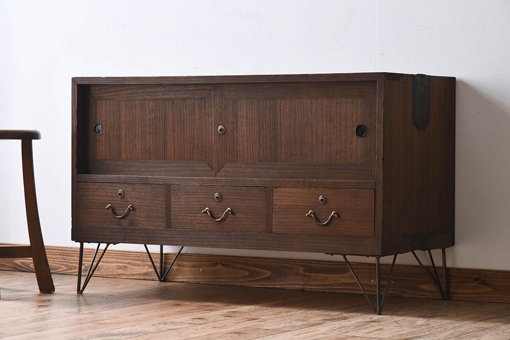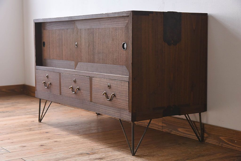 アンティーク家具 総桐材製!シンプルな鉄脚付きローボード
