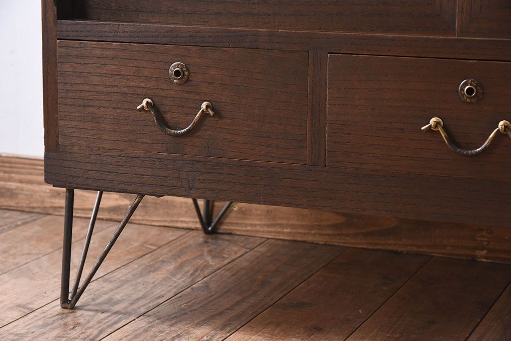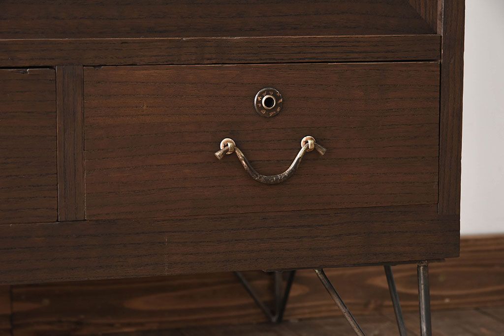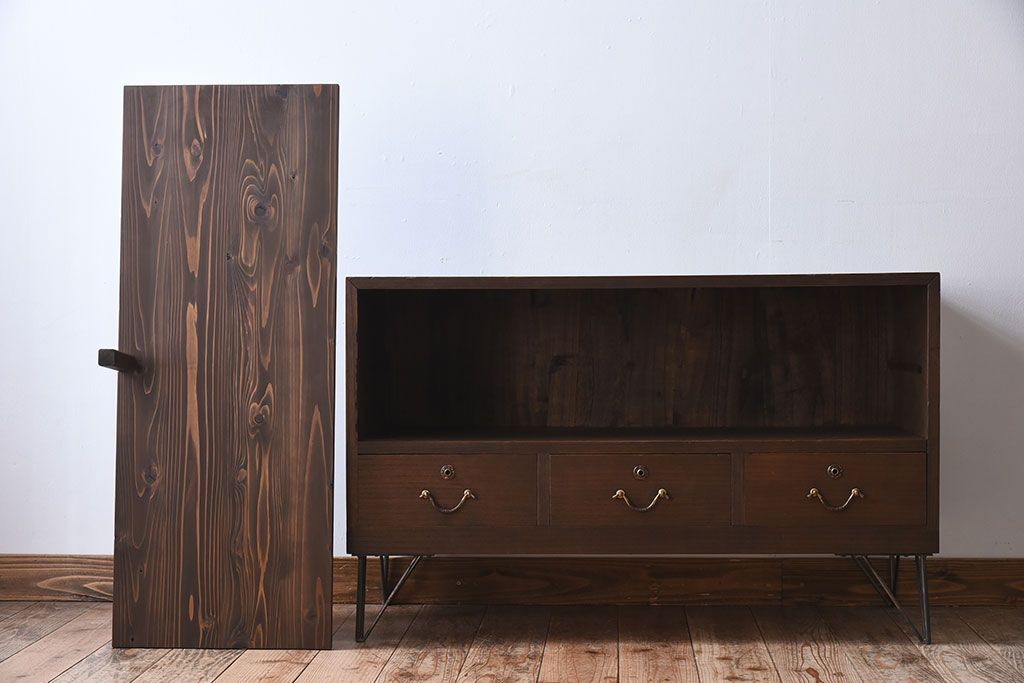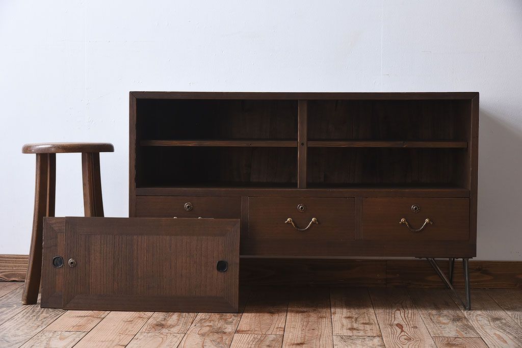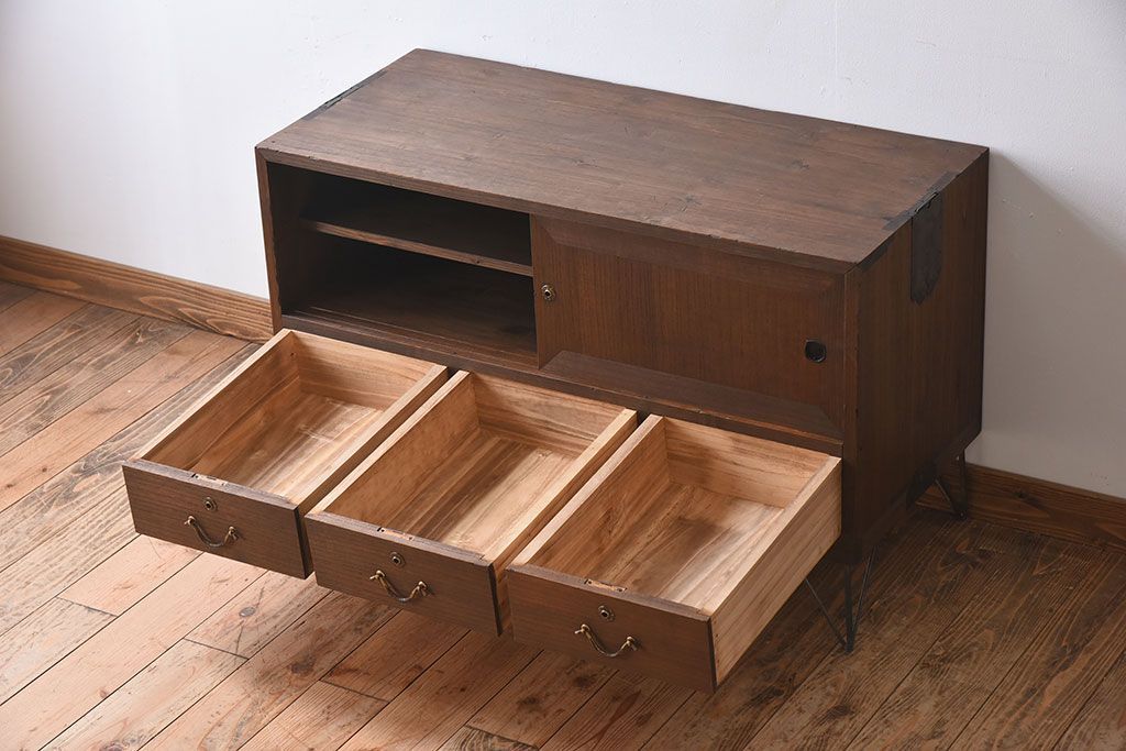 アンティーク家具 総桐材製!シンプルな鉄脚付きローボード