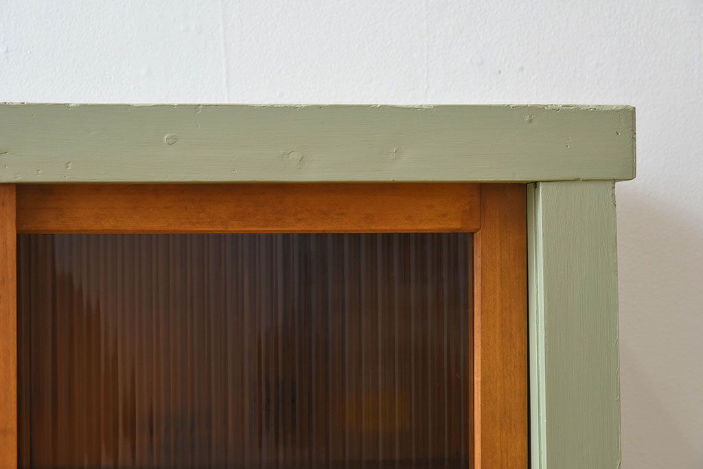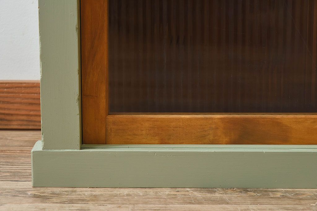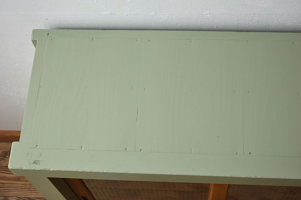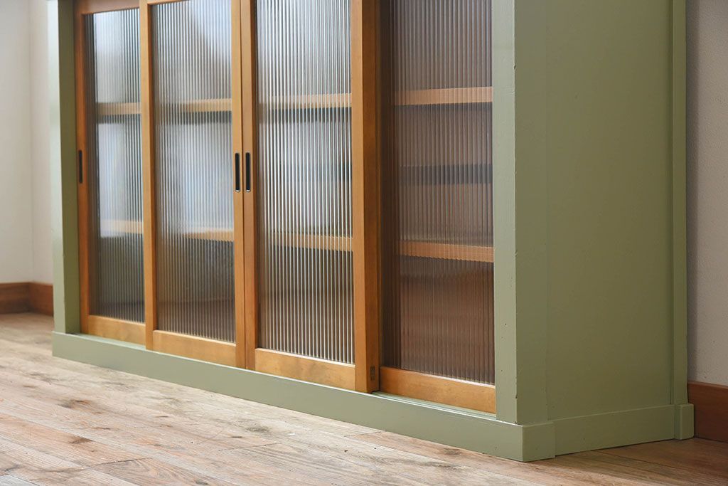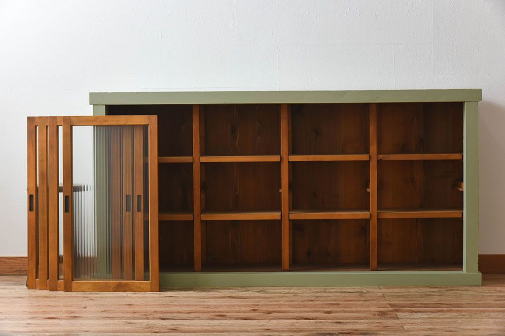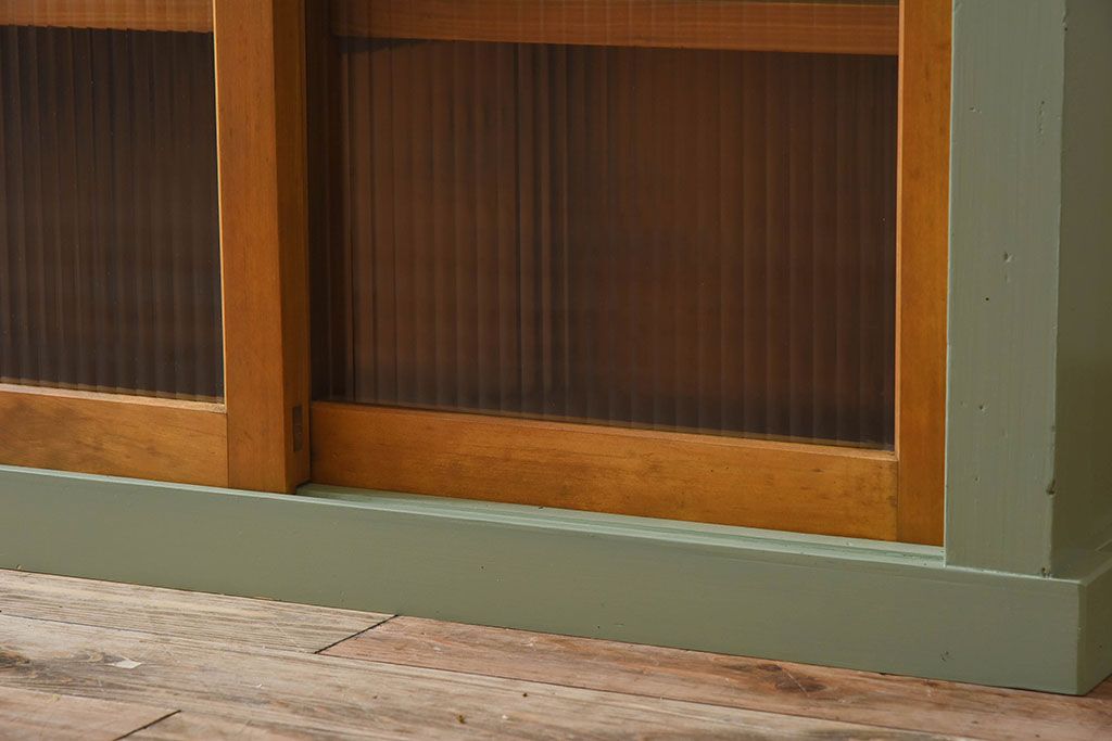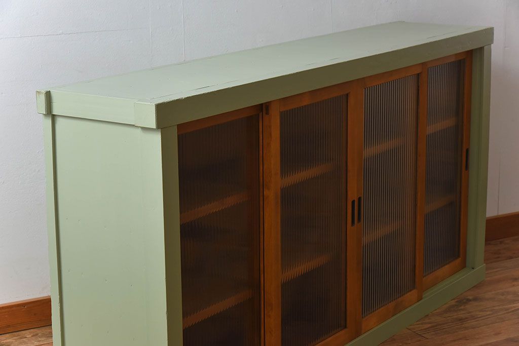 アンティーク家具 アンティークペイント 4枚引き戸 モールガラス戸のおしゃれなローボード