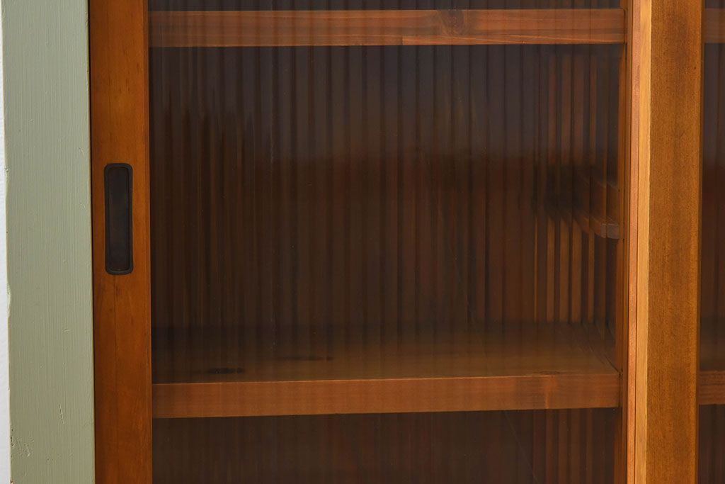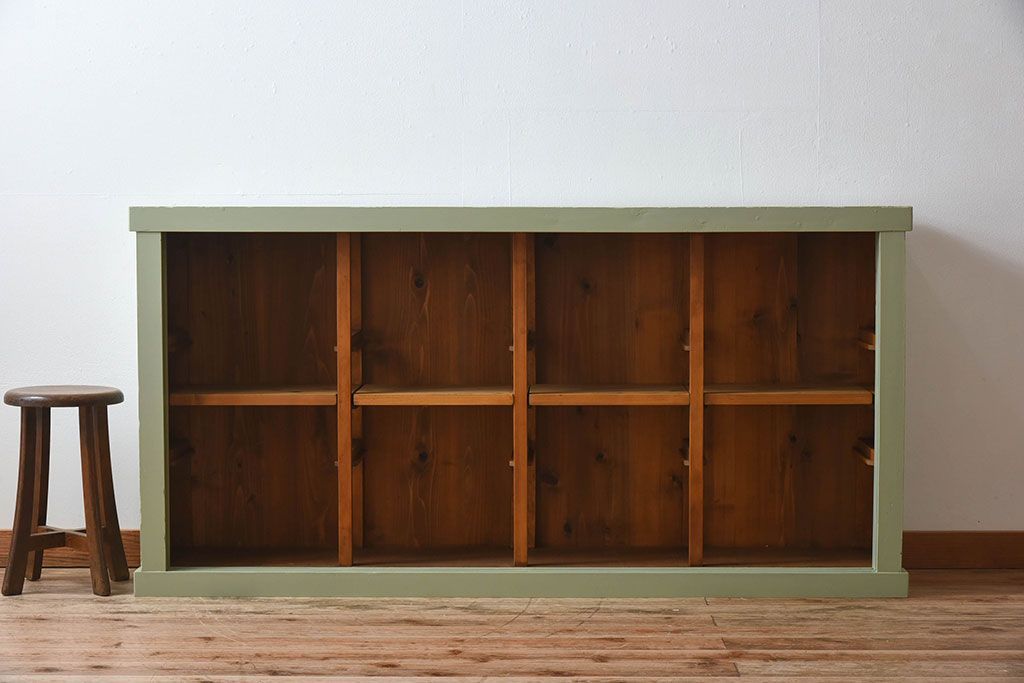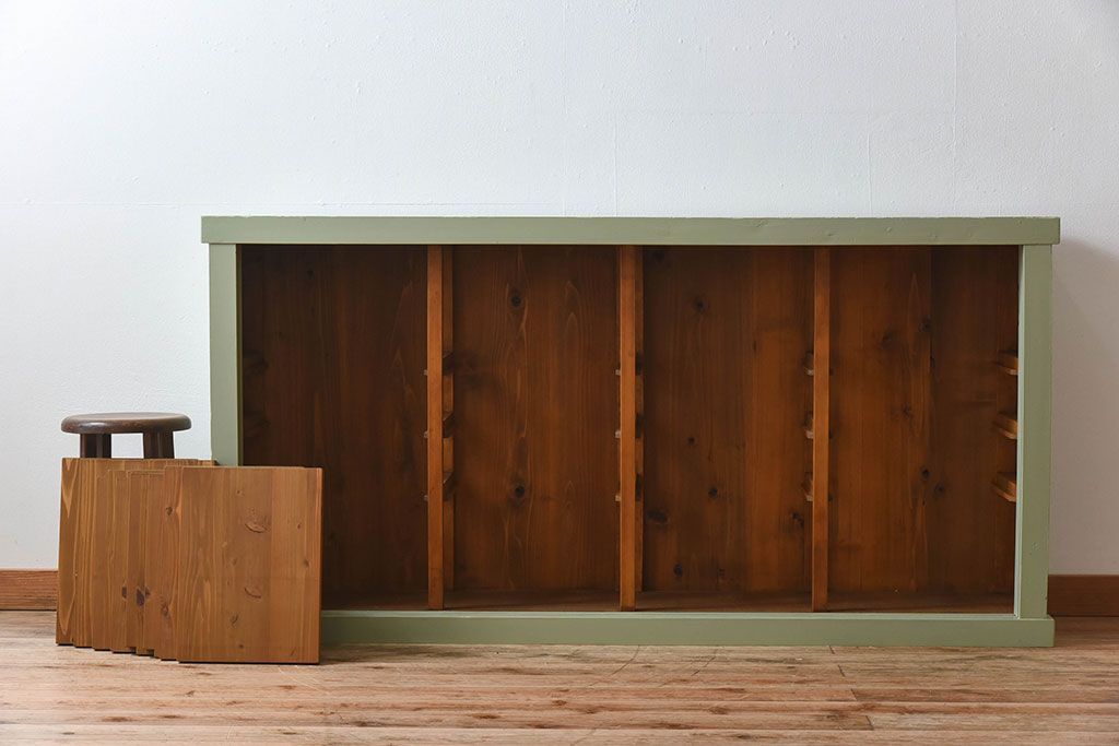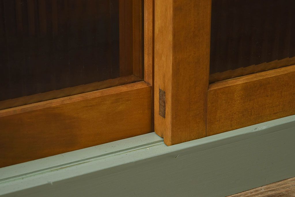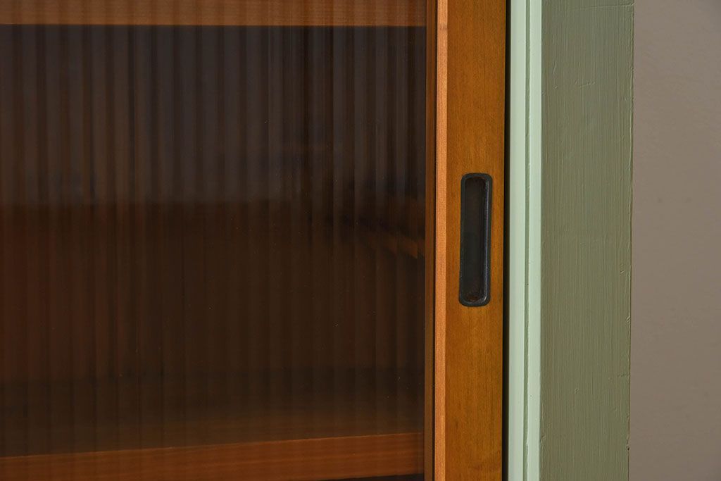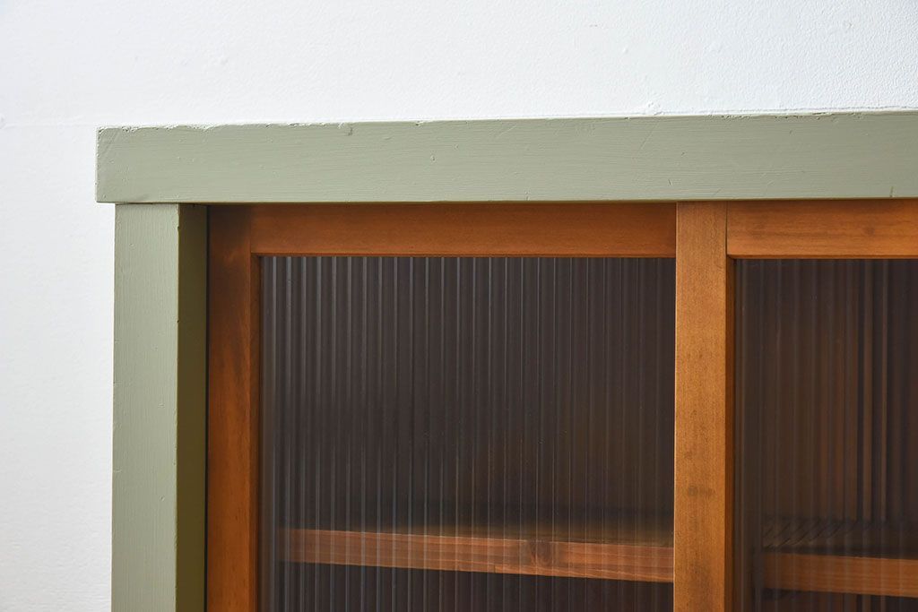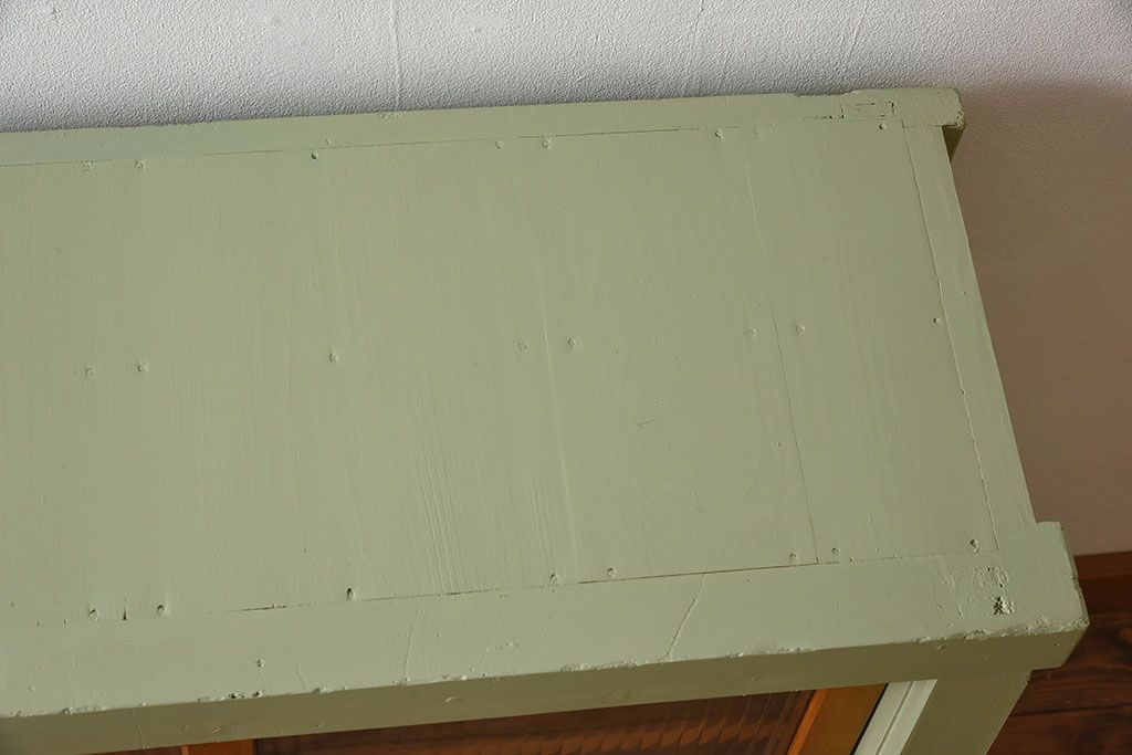 アンティーク家具 アンティークペイント 4枚引き戸 モールガラス戸のおしゃれなローボード