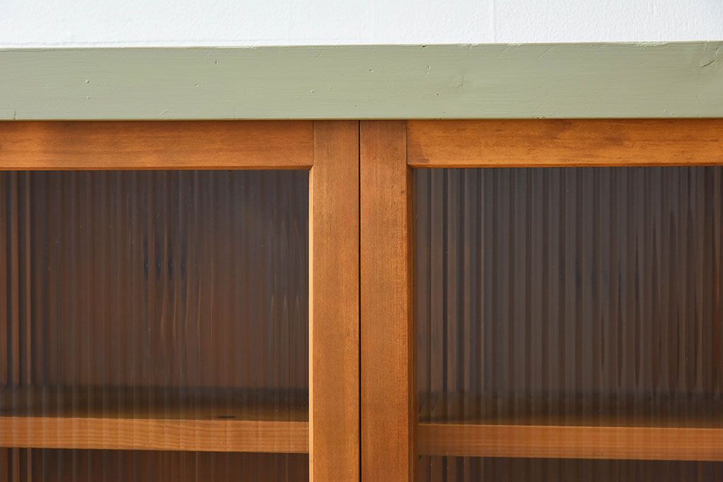アンティークペイント 4枚引き戸 モールガラス戸のおしゃれなローボードです。