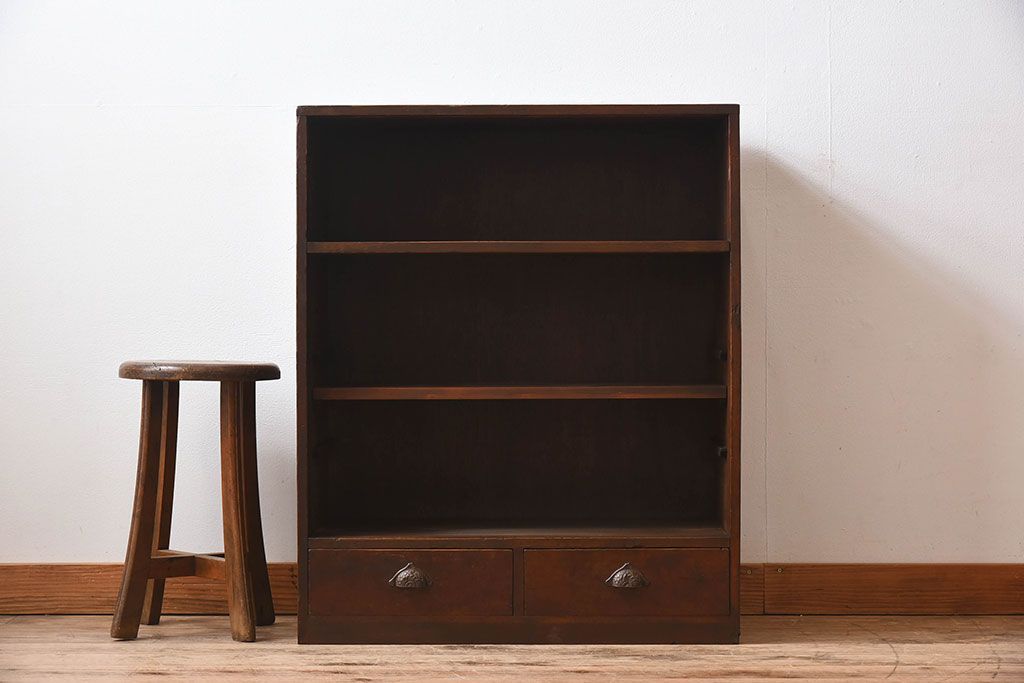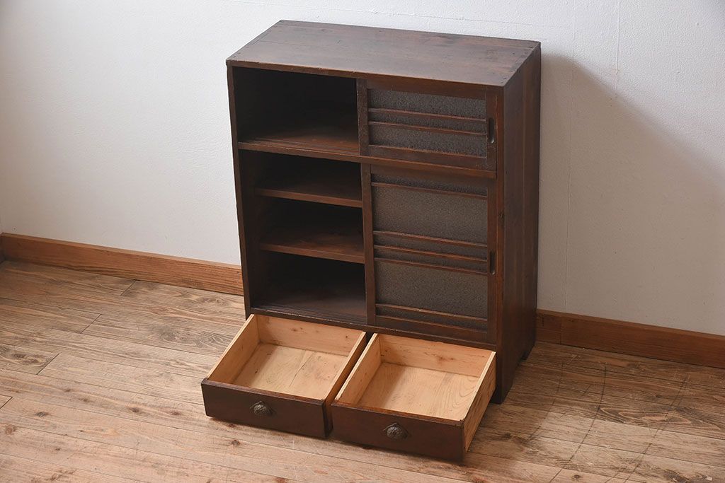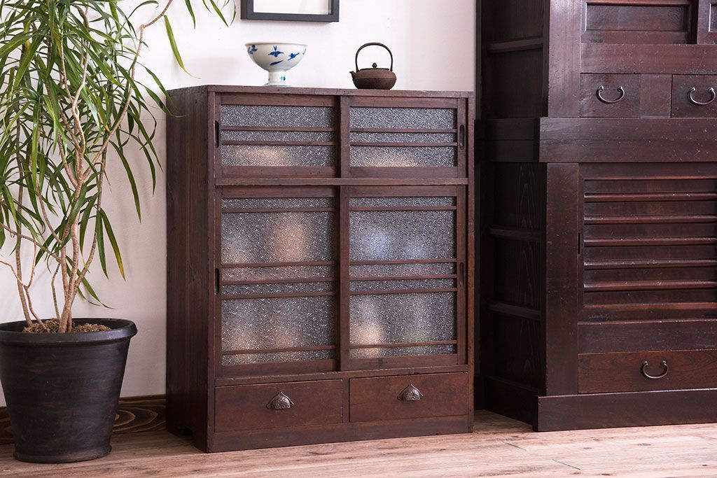 レトロ家具 昭和期 レトロ ダイヤガラス!アンティーク収納棚