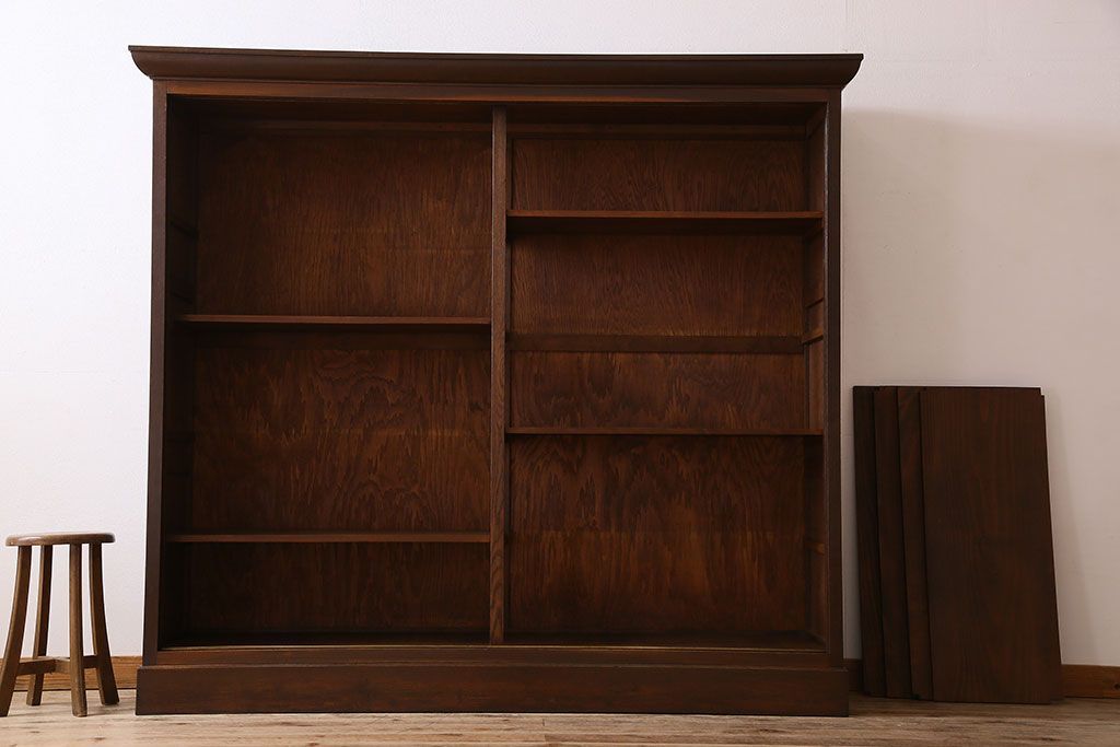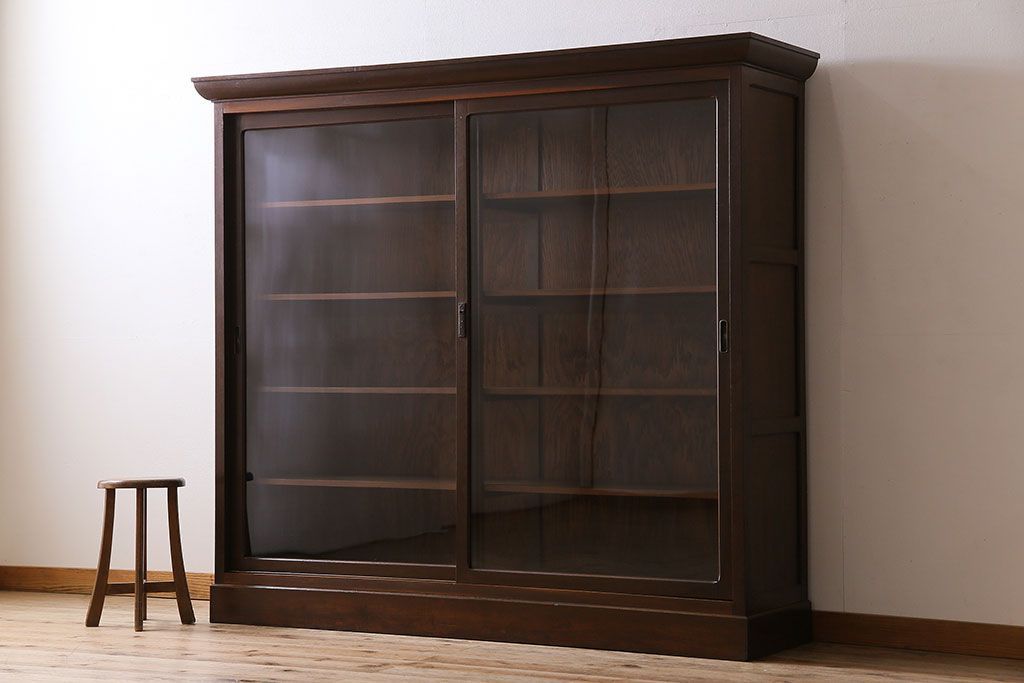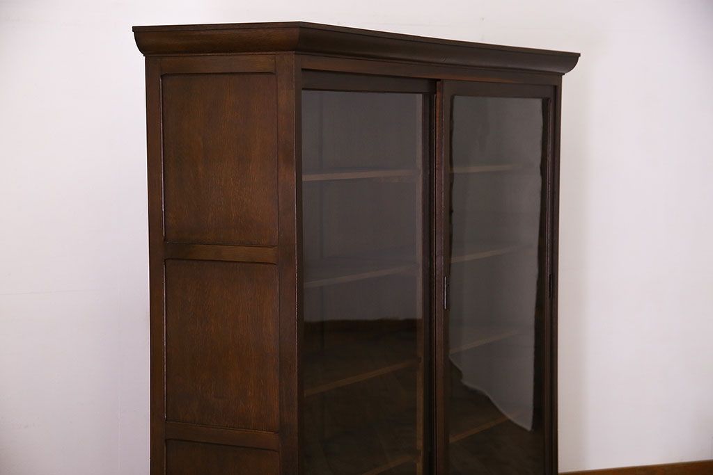アンティーク家具 ナラ材製!ガラス引き戸の上品なアンティーク飾り棚(ディスプレイ棚)