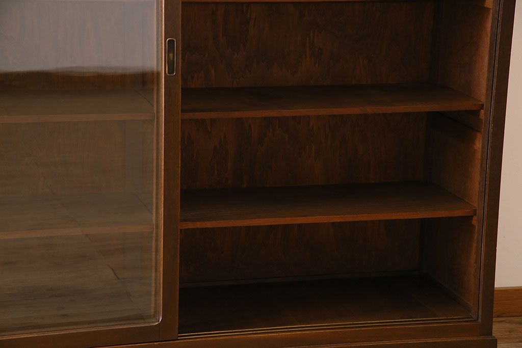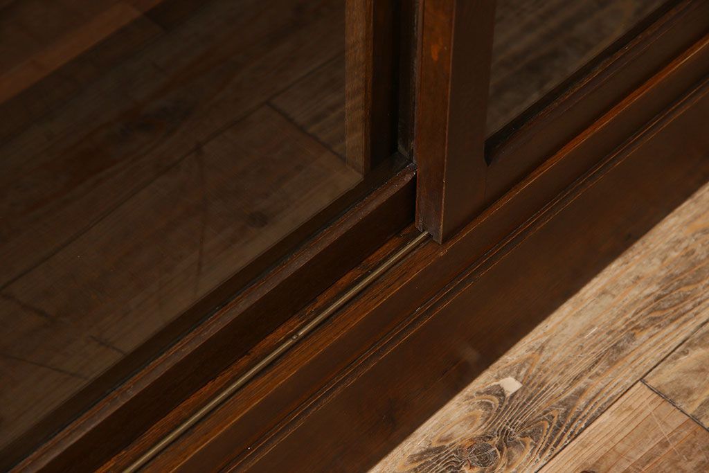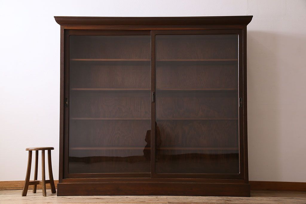 ナラ材製!ガラス引き戸の上品なアンティーク飾り棚(ディスプレイ棚)です。