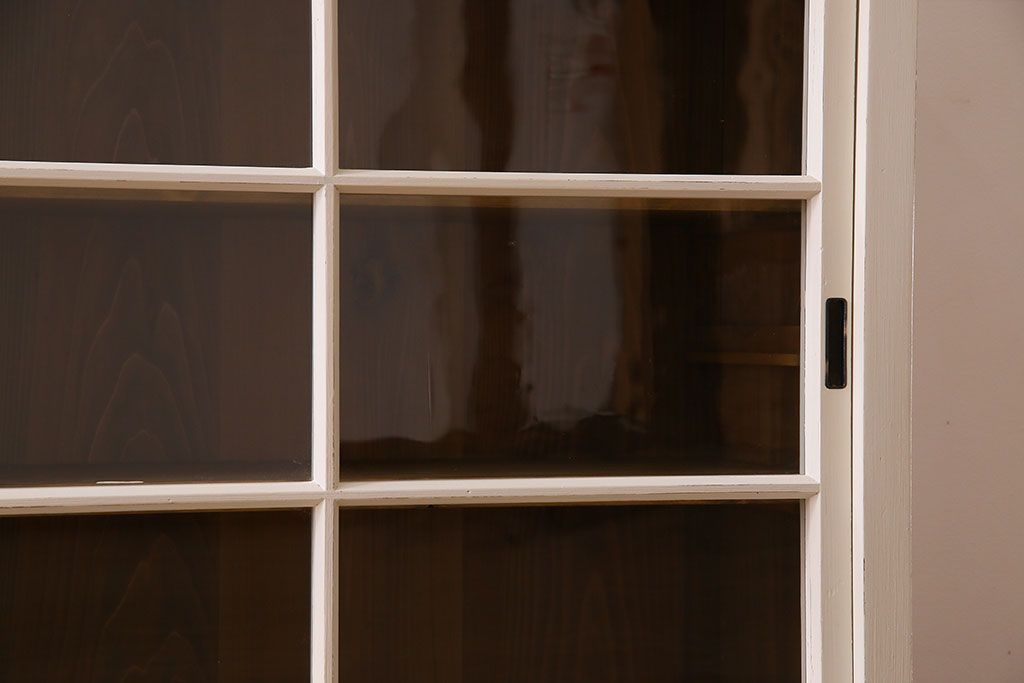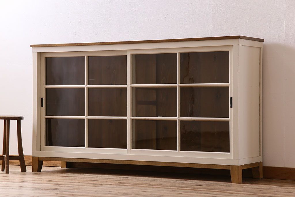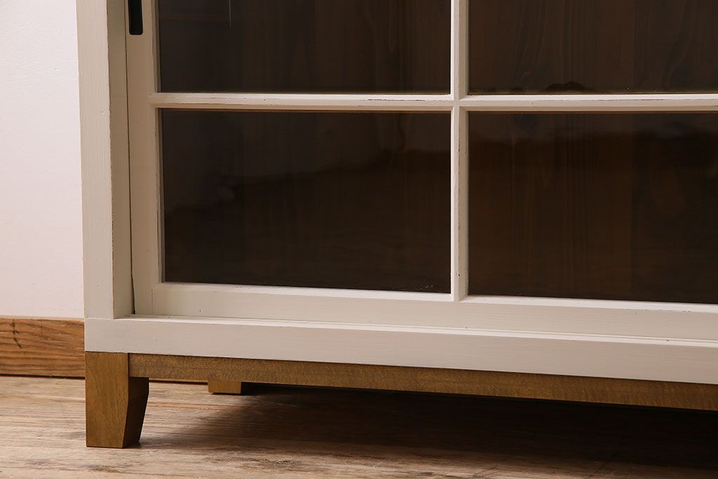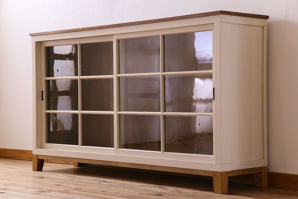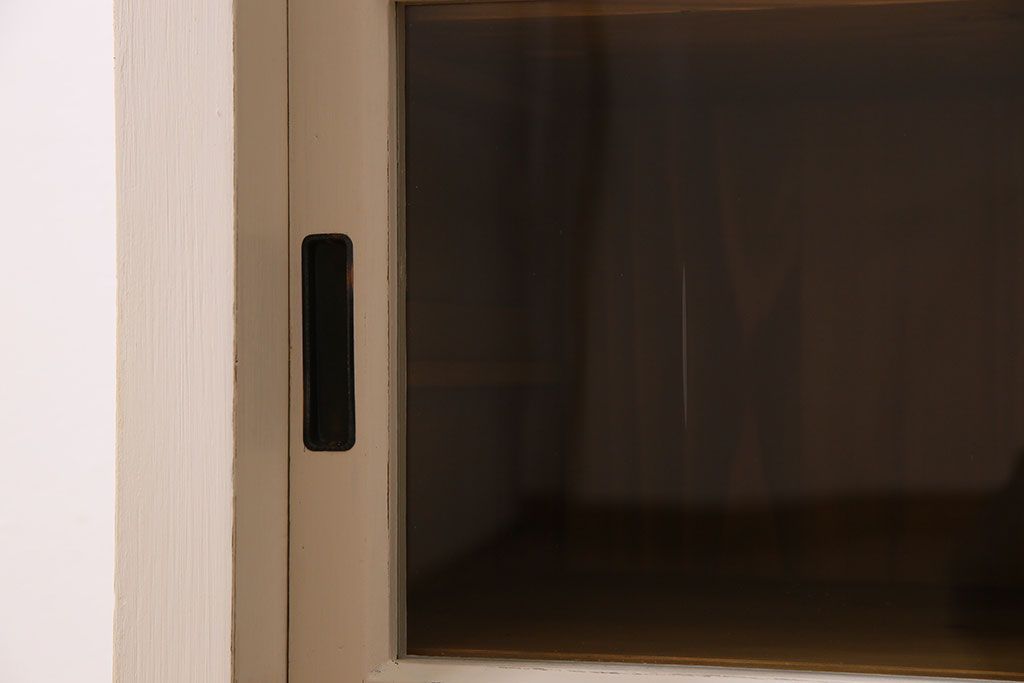レトロ家具 レトロデザイン アンティークペイント!クリアガラス引き戸の収納棚(戸棚)