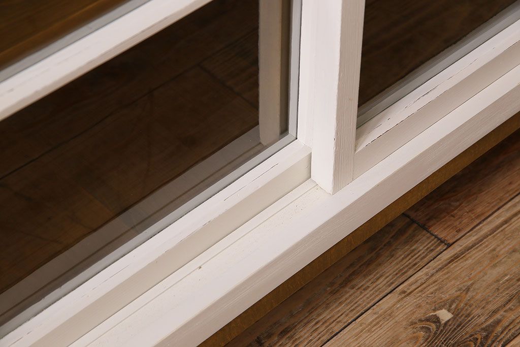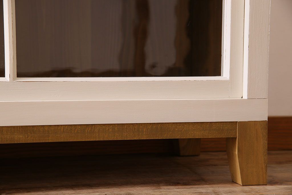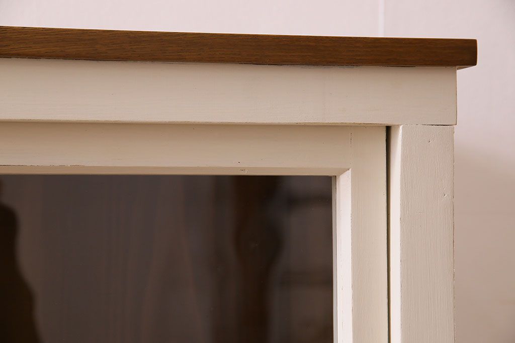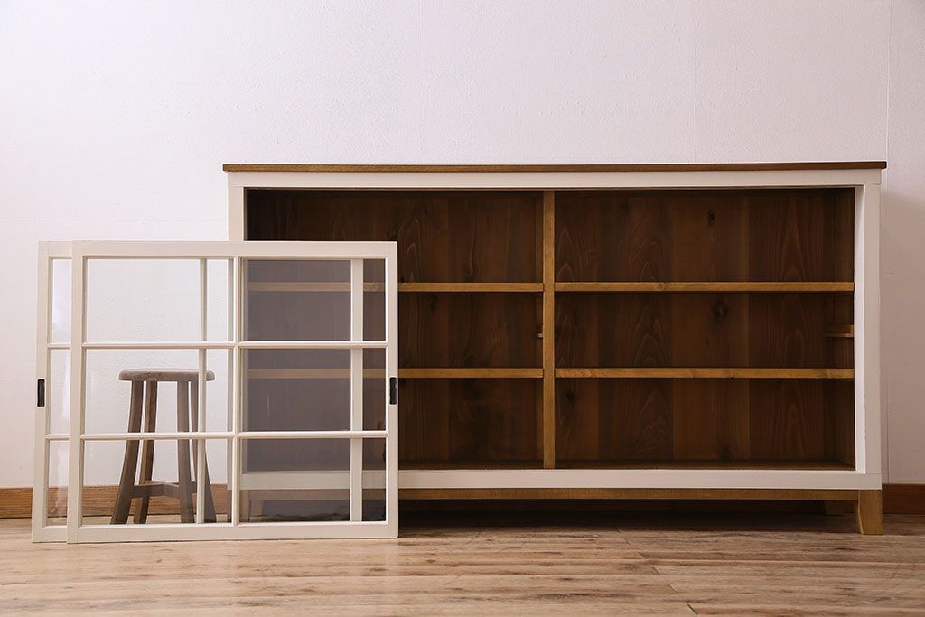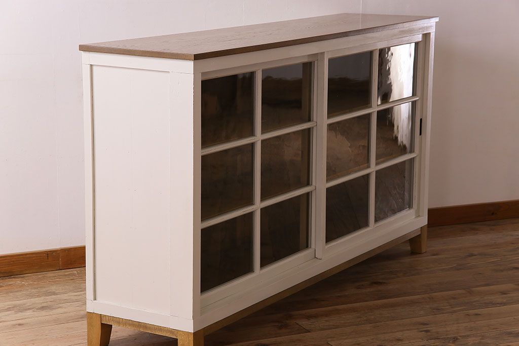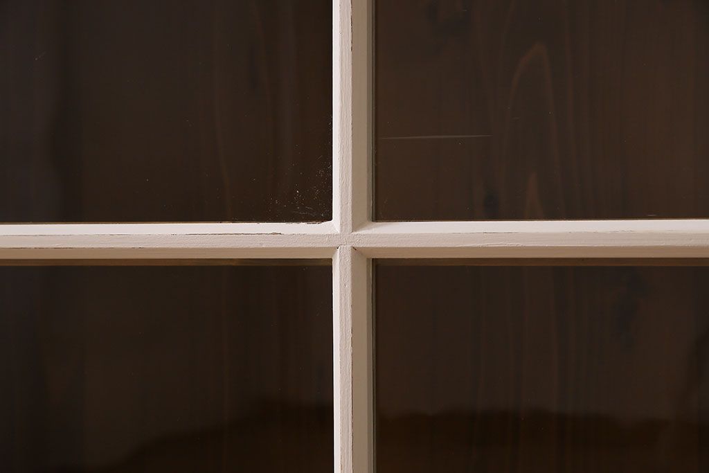 レトロ家具 レトロデザイン アンティークペイント!クリアガラス引き戸の収納棚(戸棚)