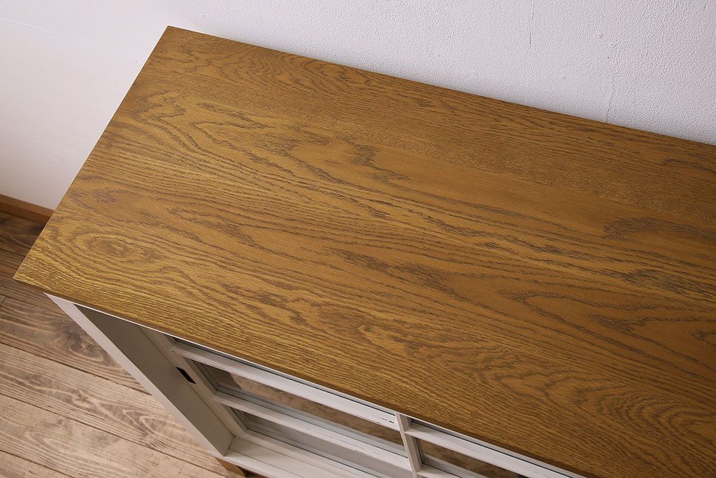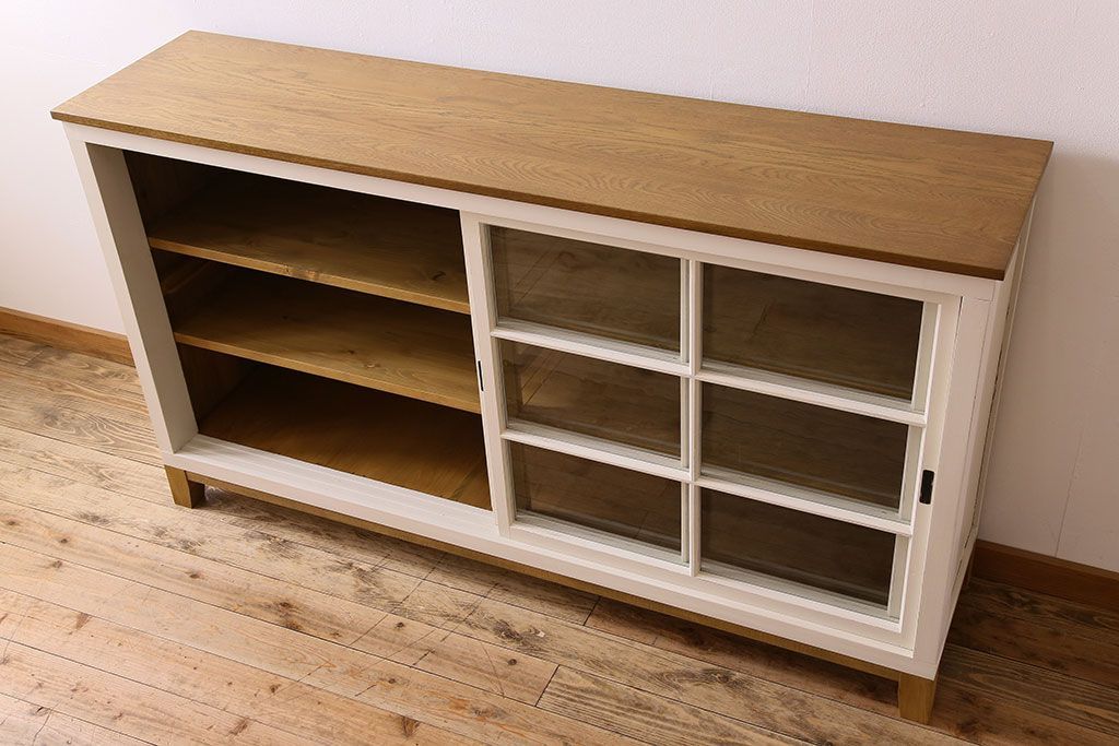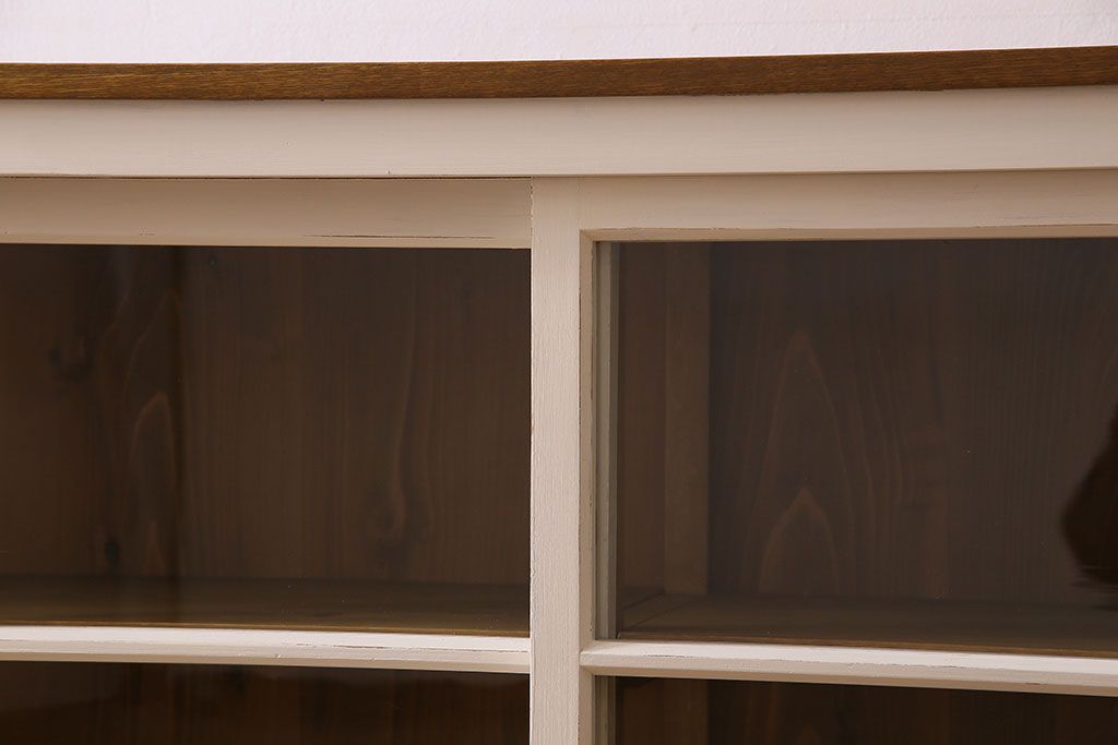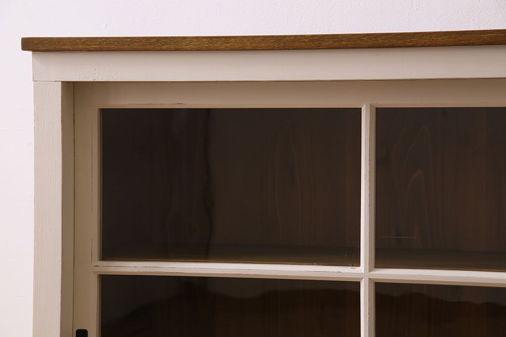 レトロデザイン アンティークペイント!クリアガラス引き戸の収納棚(戸棚)です。