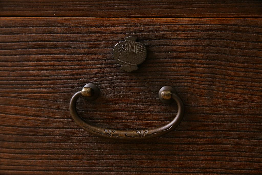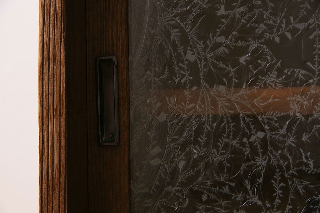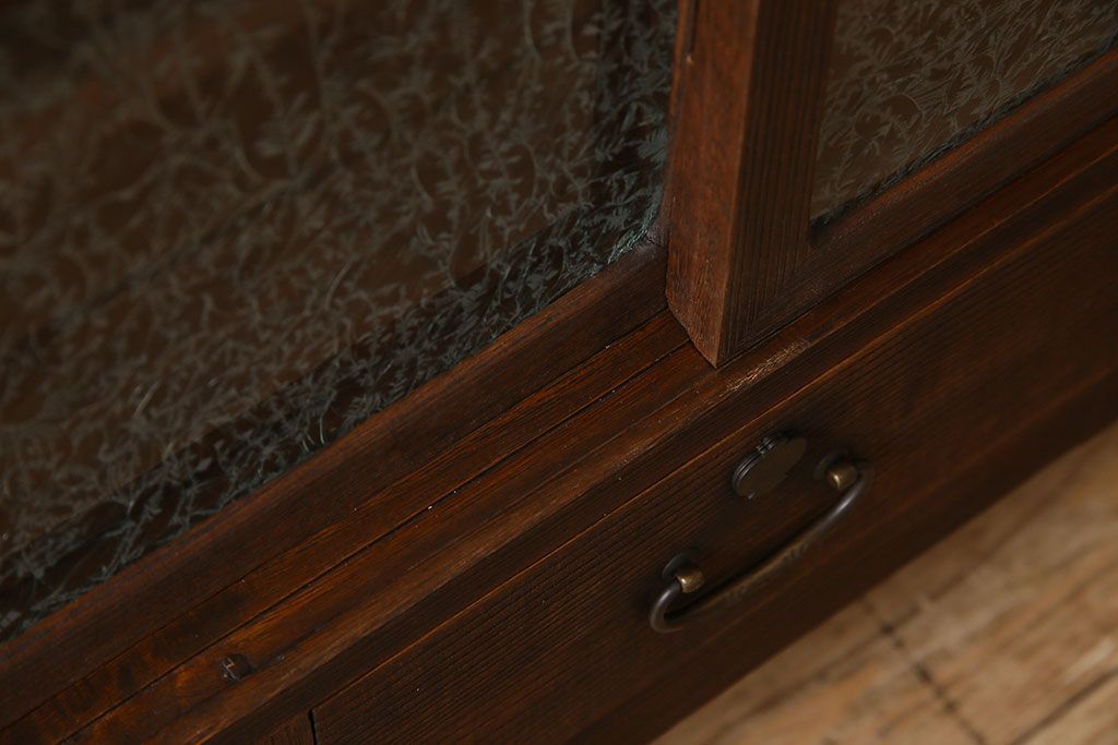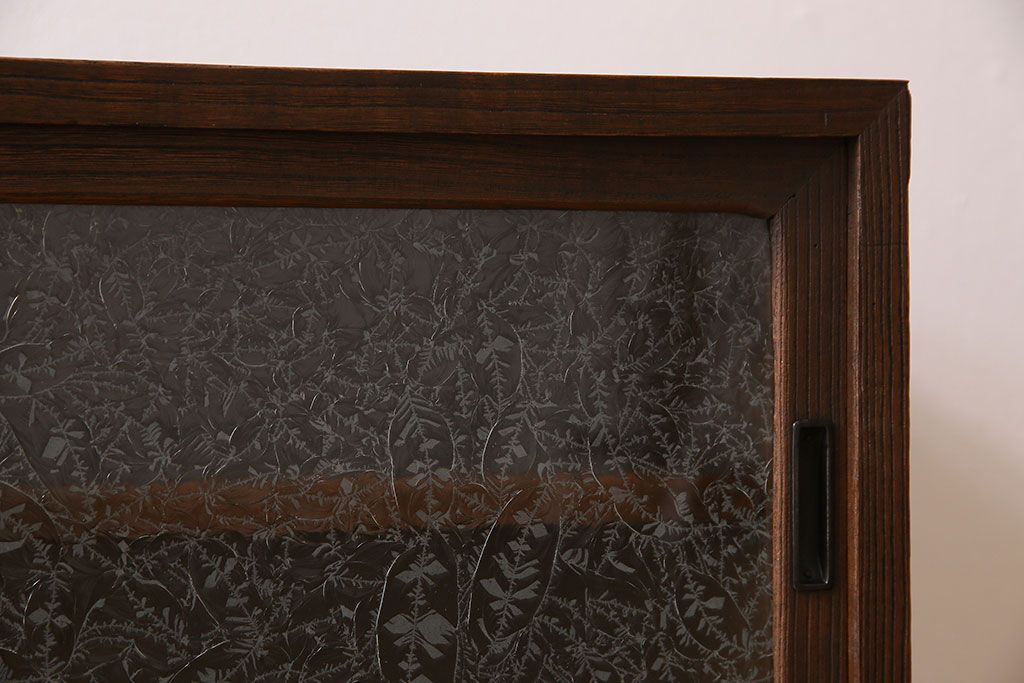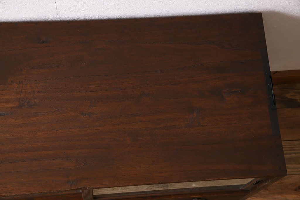 アンティーク家具 和製アンティーク 結霜ガラス入り!和モダンな鉄脚付きタンスローボード(箪笥)