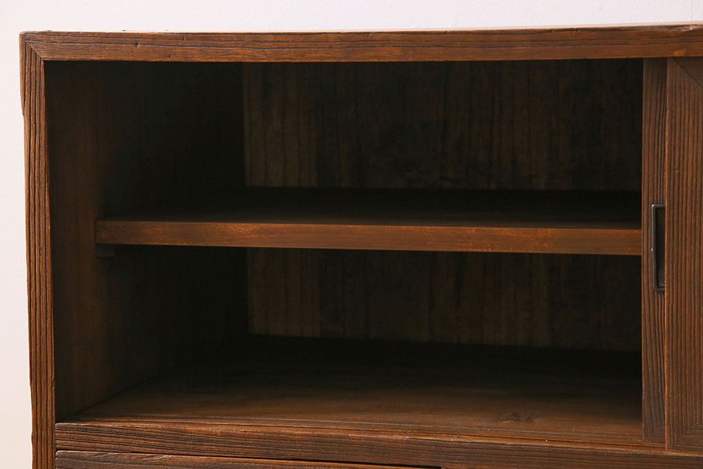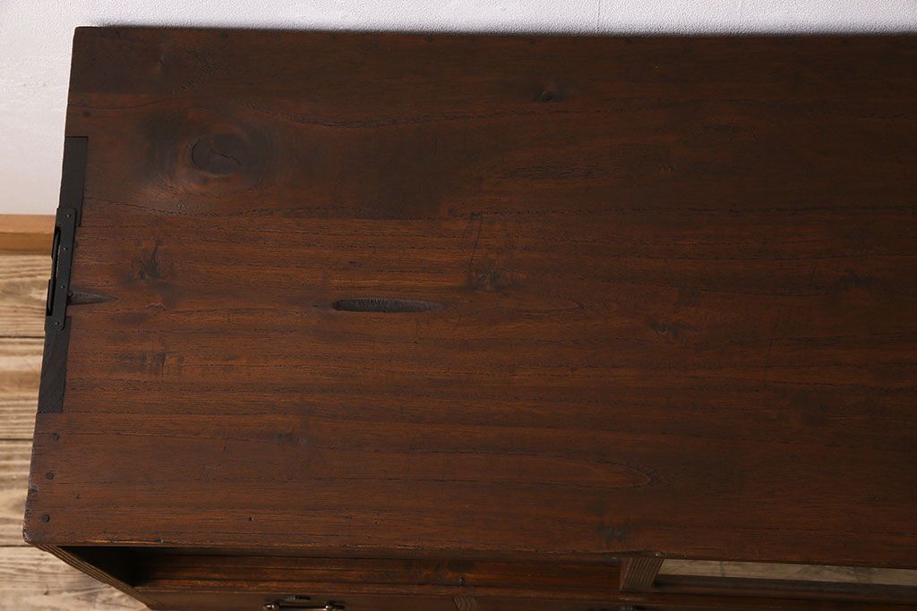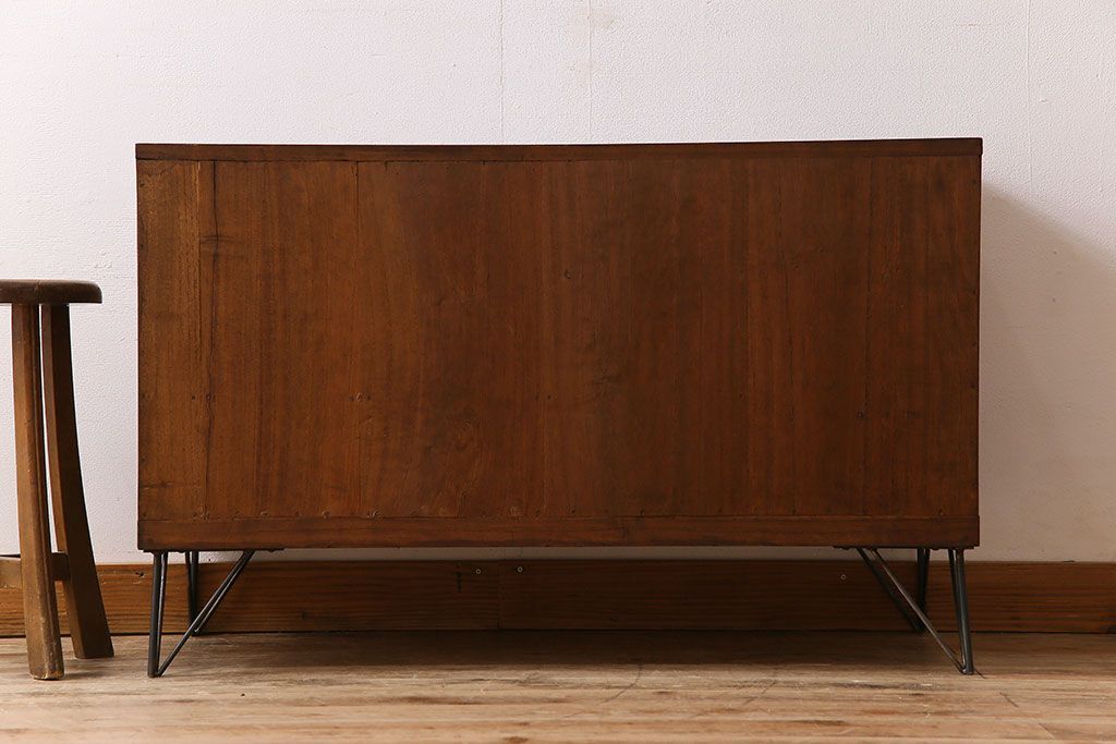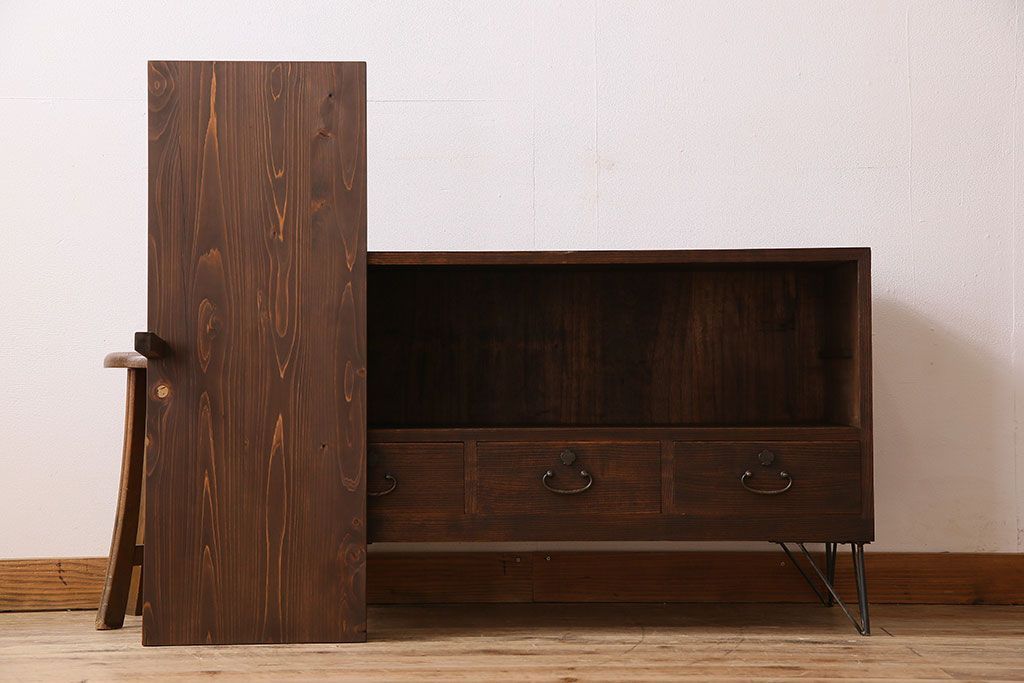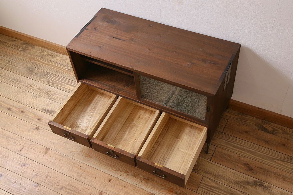 ラフジュ工房> キャビネット・戸棚> テレビ台・ローボード > アンティーク家具 和製アンティーク 結霜ガラス入り!和モダンな鉄脚付きタンスローボード(箪笥)