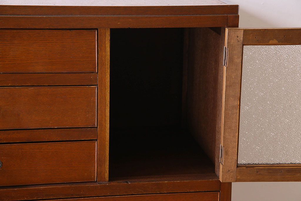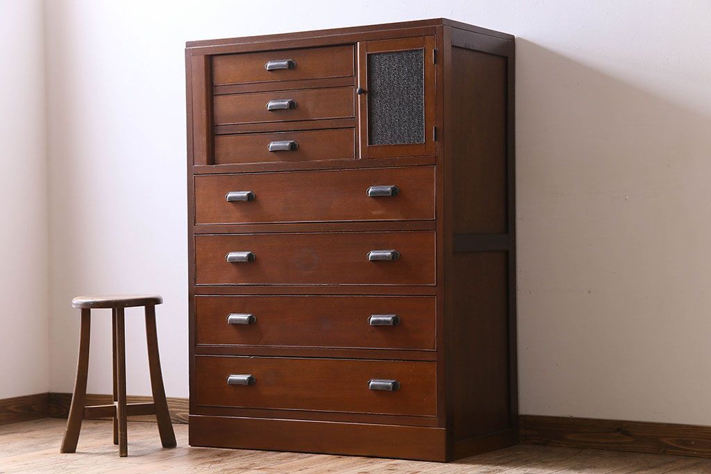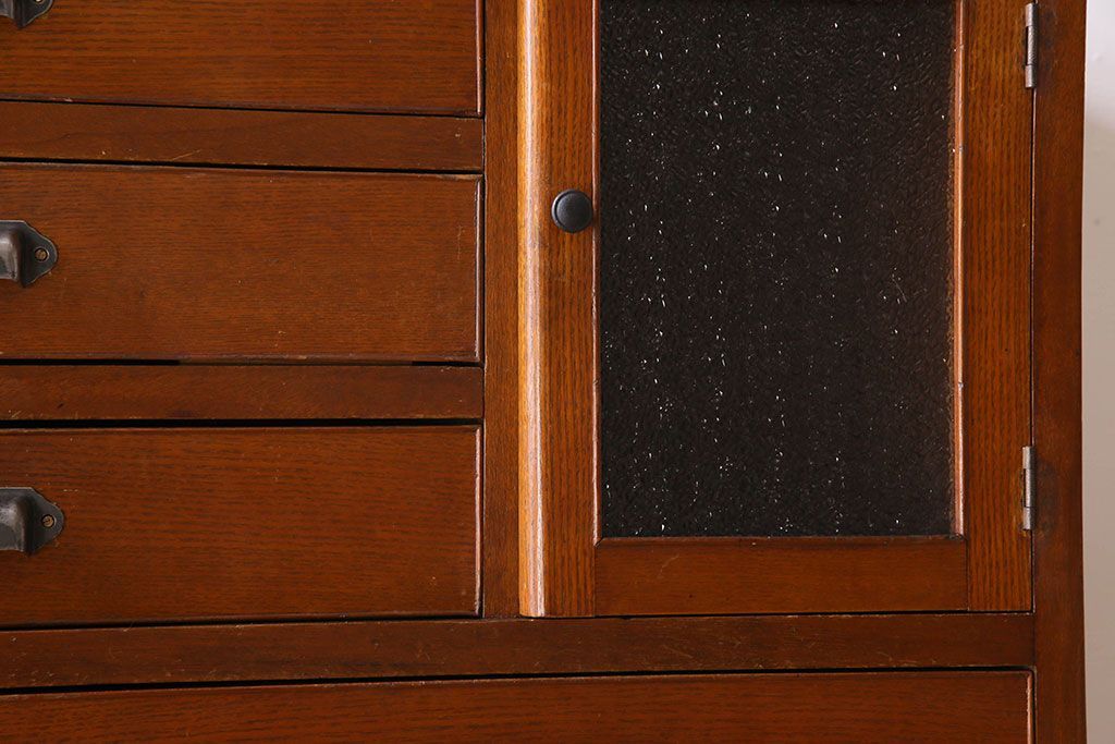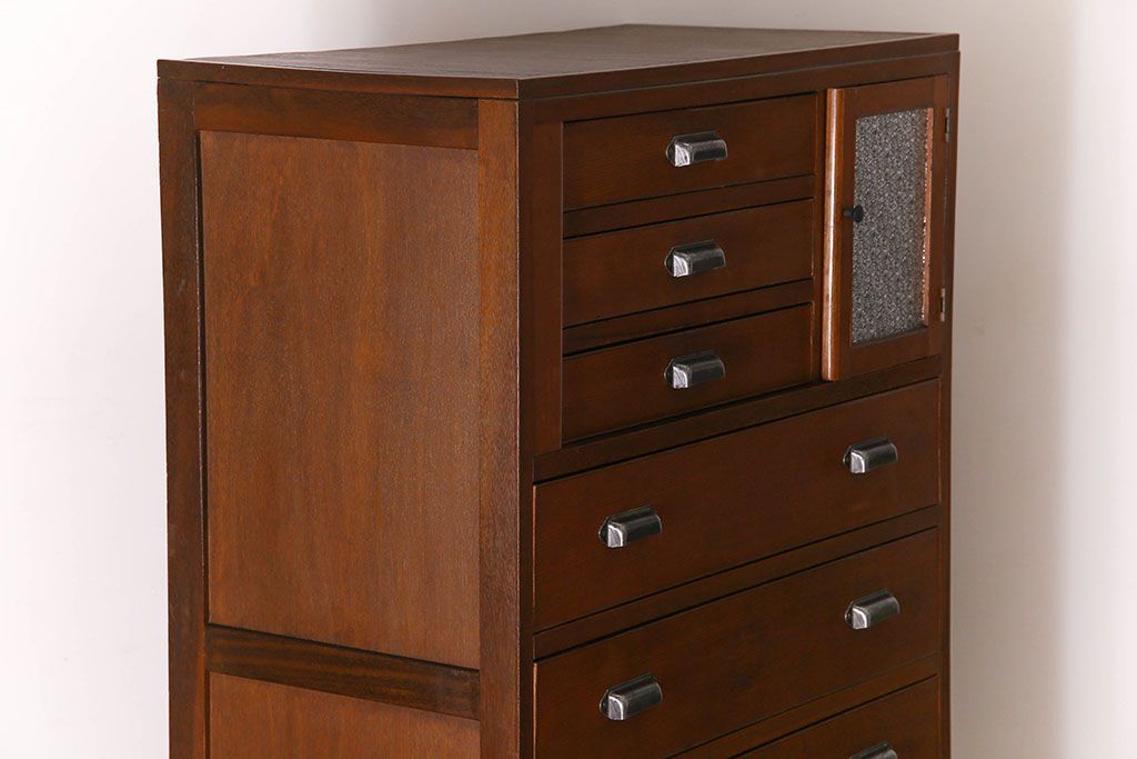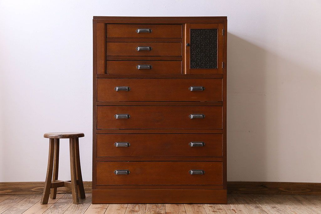 ダイヤガラス入り! レトロな雰囲気漂う和製アンティークのチェストです。