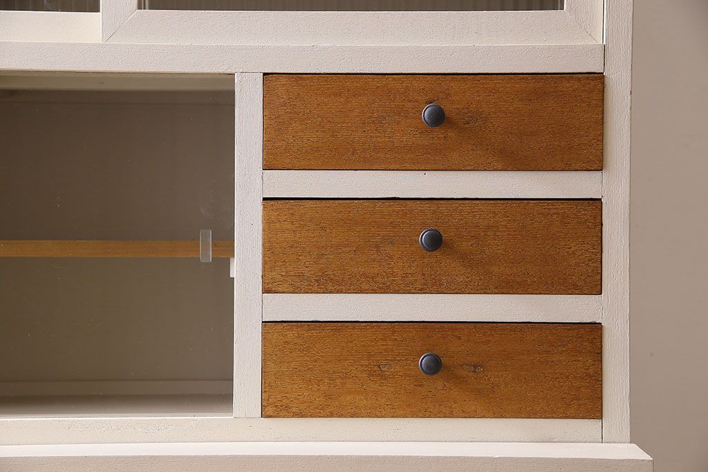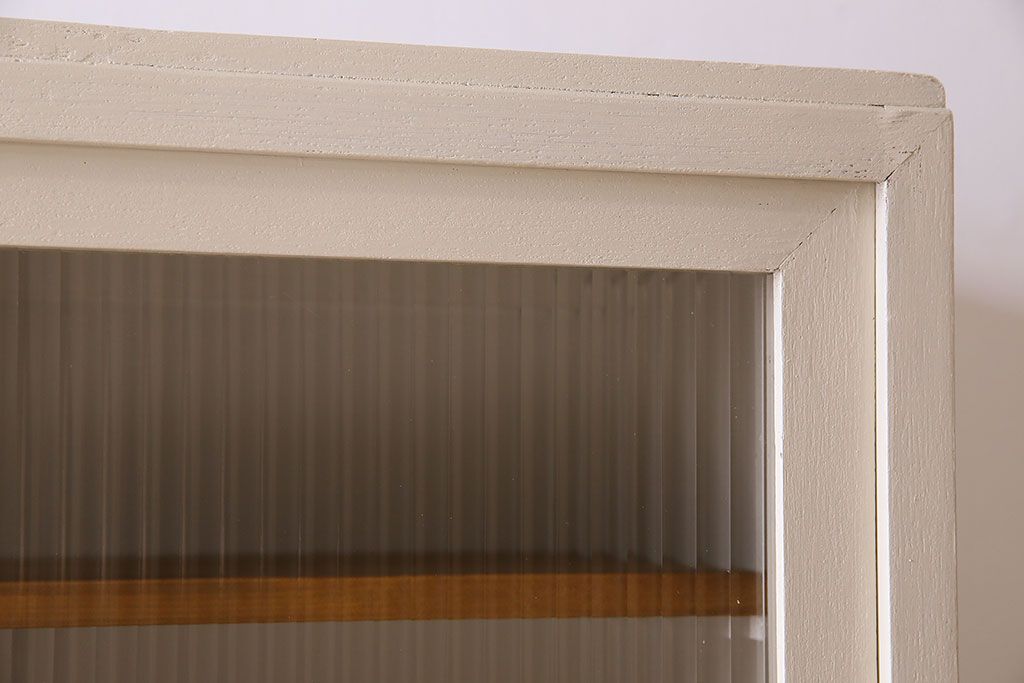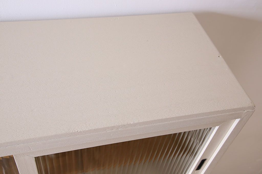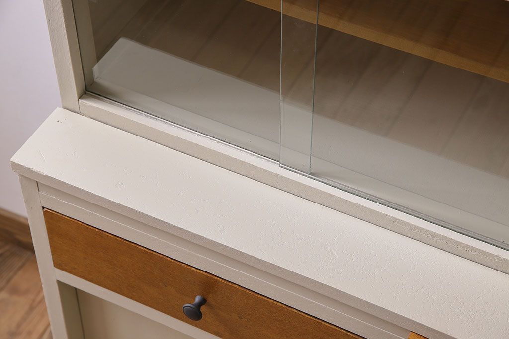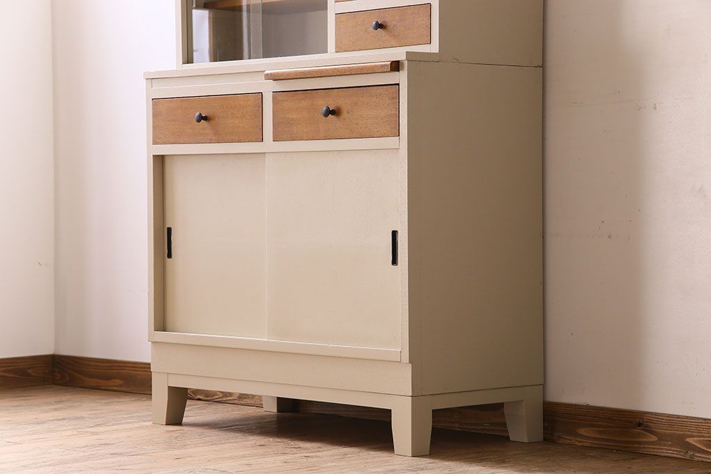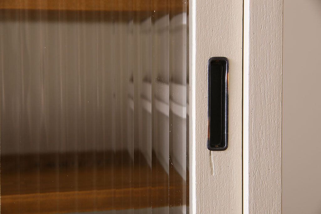 アンティーク家具 アンティークペイント 脚付き!モールガラス引き戸の食器棚