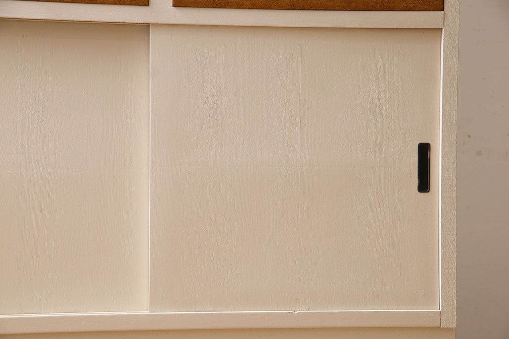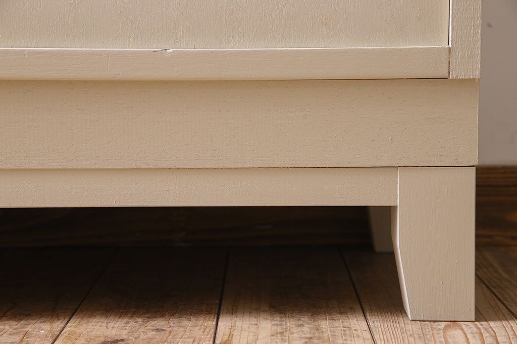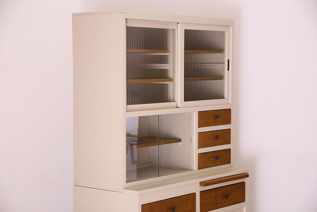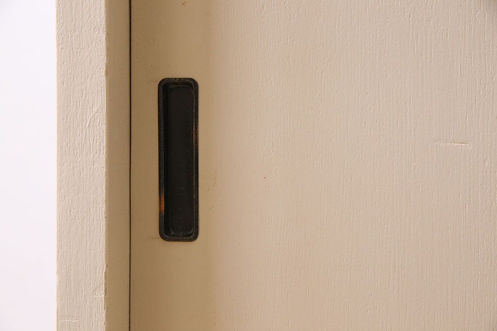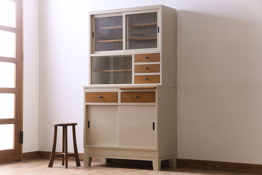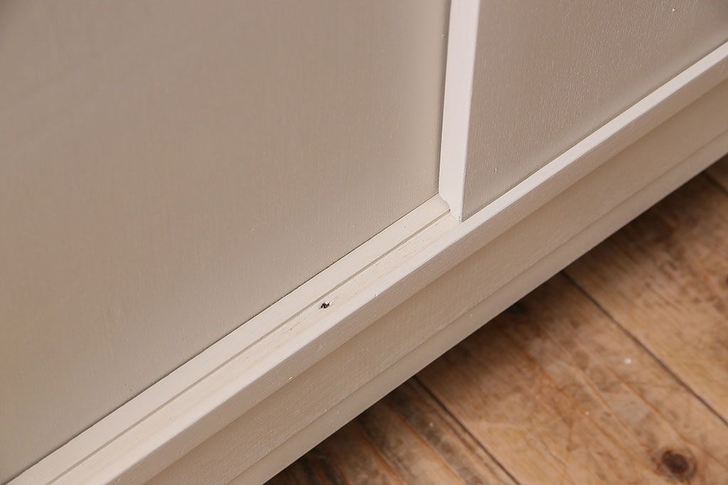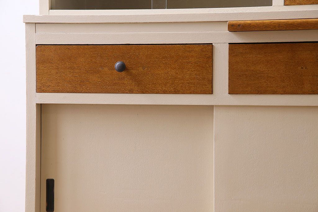 アンティーク家具 アンティークペイント 脚付き!モールガラス引き戸の食器棚