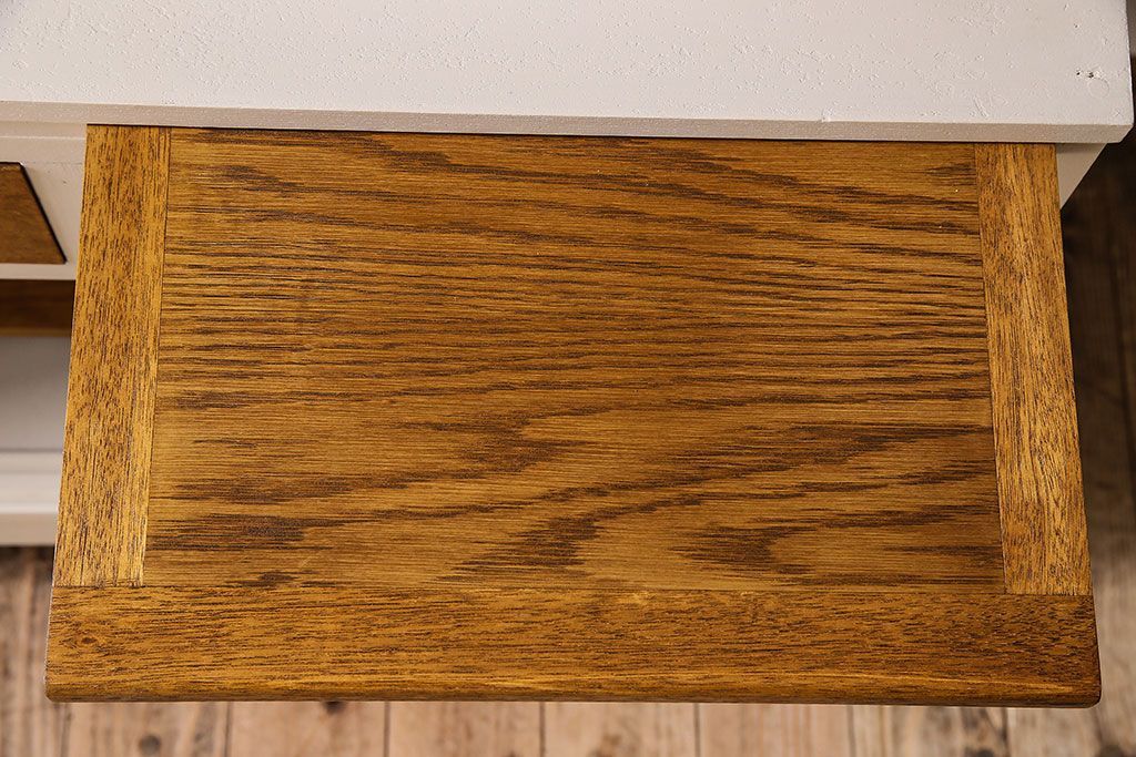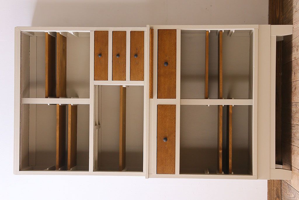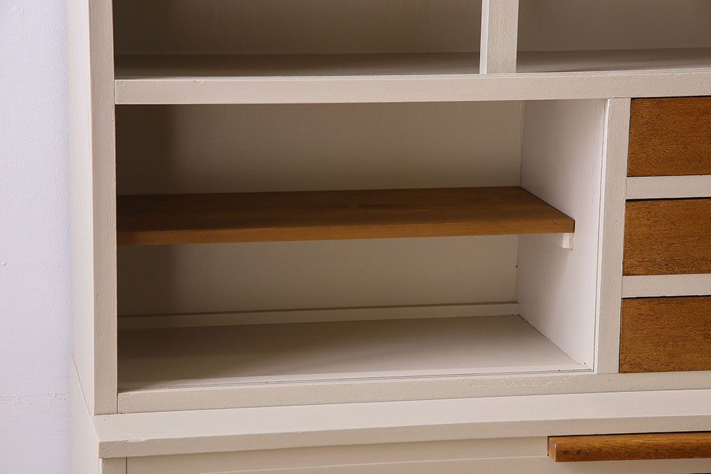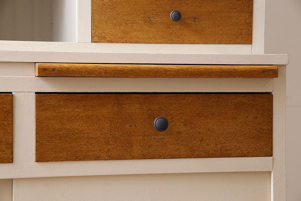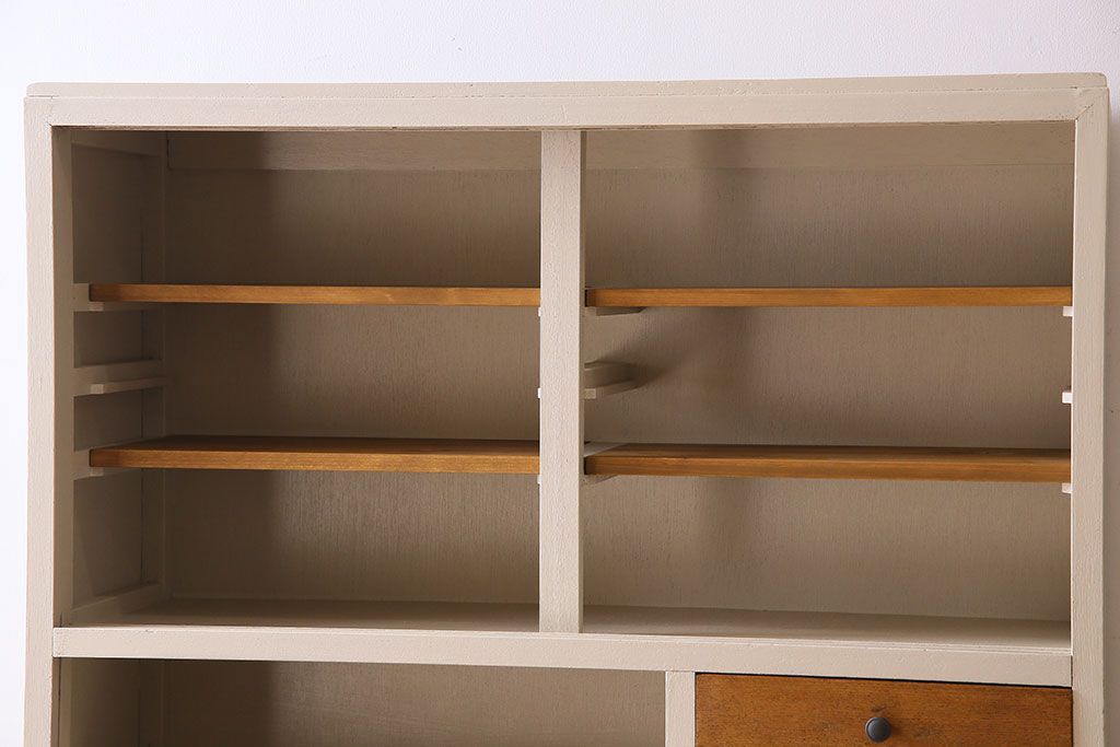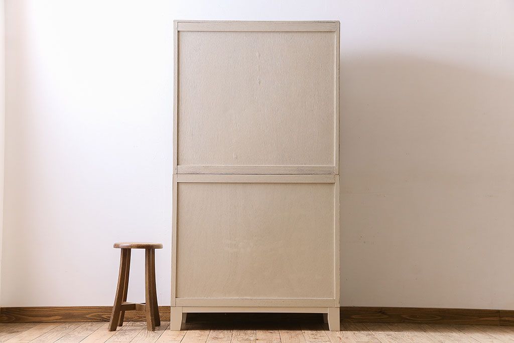 アンティーク家具 アンティークペイント 脚付き!モールガラス引き戸の食器棚