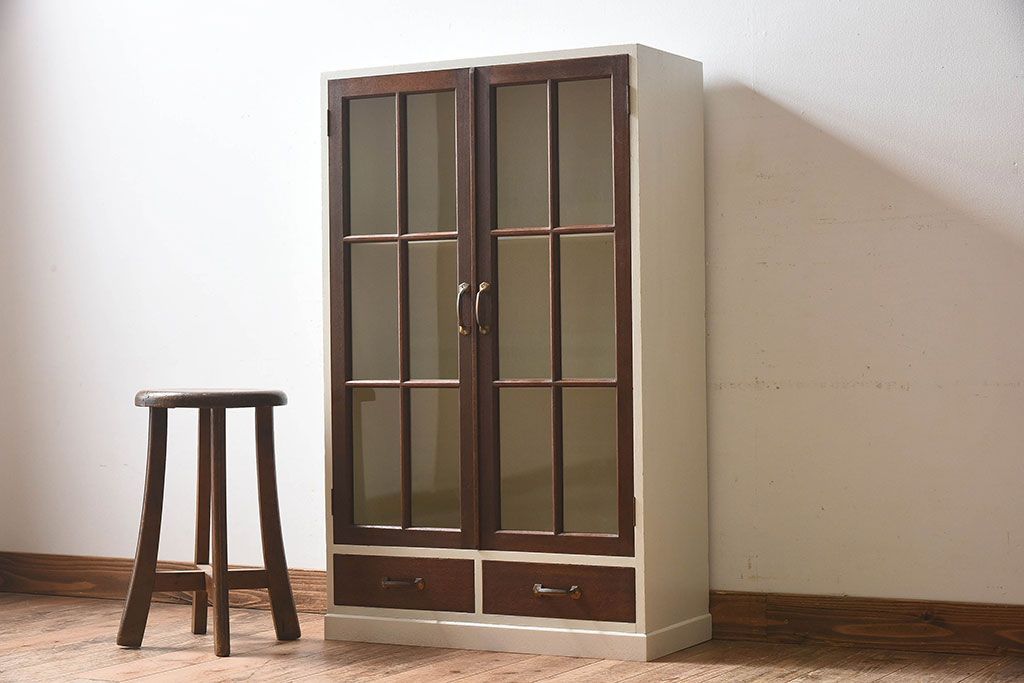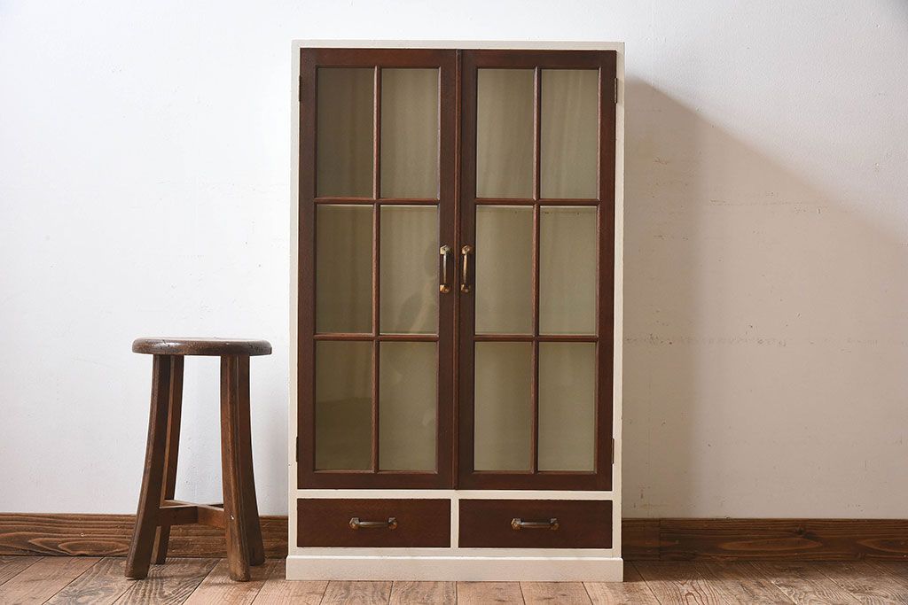 ペイント家具 格子の扉がおしゃれな収納棚(飾り棚、戸棚)