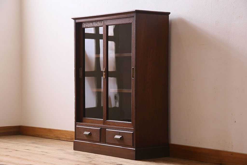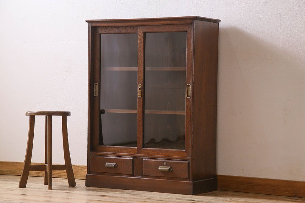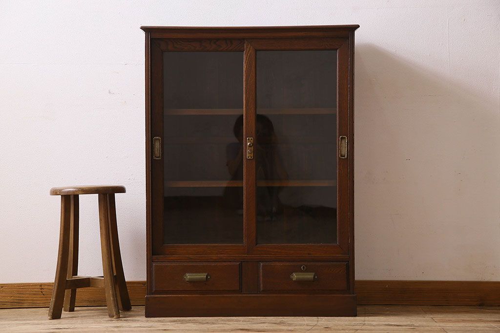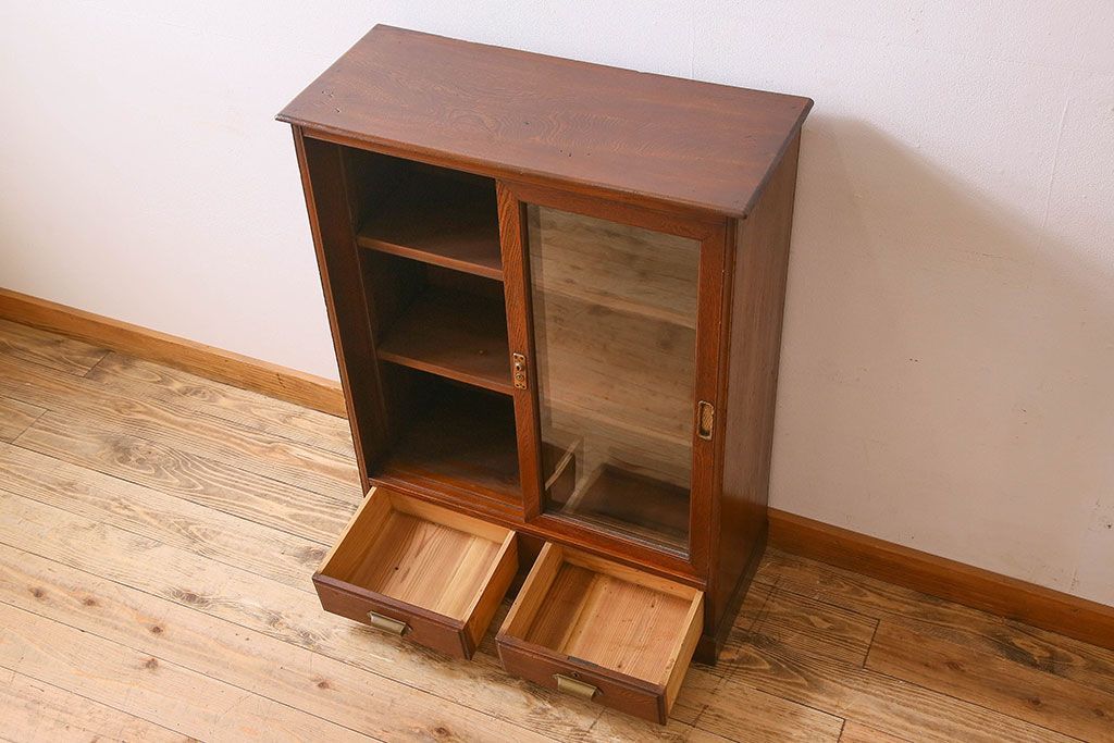 レトロ家具 和製アンティーク レトロな雰囲気が魅力的な小振りな本箱(収納棚、ブックケース)