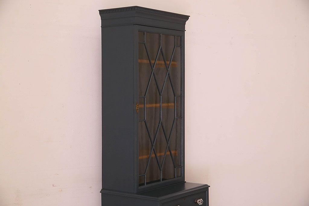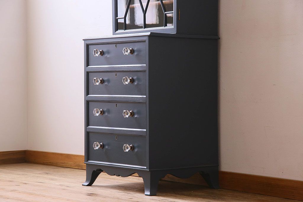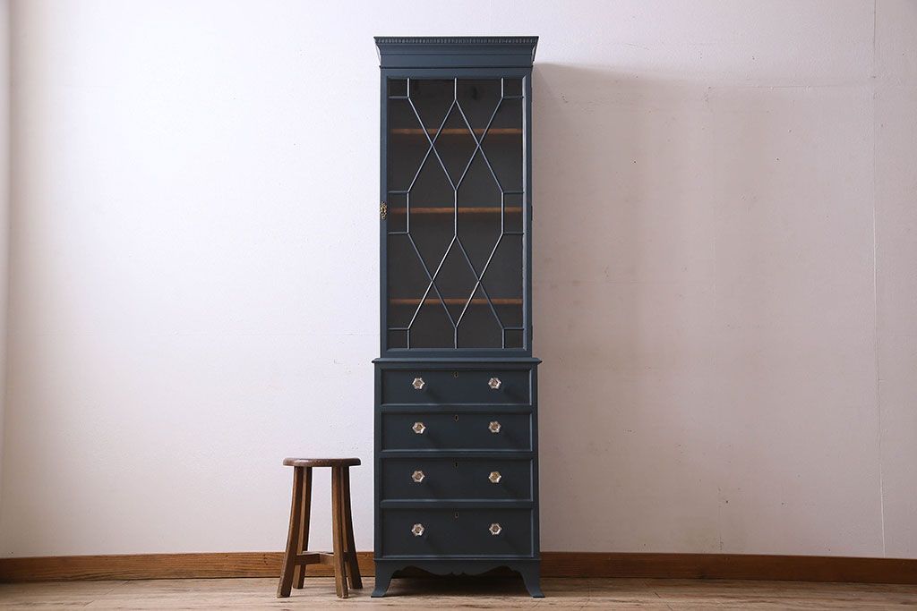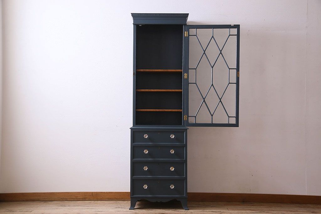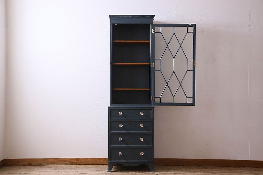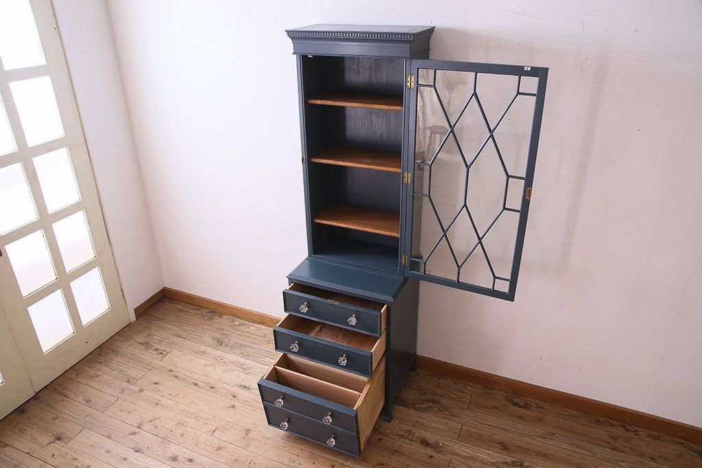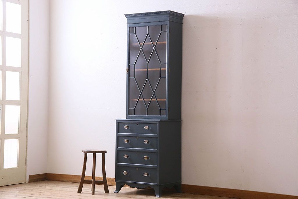 ラフジュ工房> キャビネット・戸棚> 食器棚・カップボード > ペイント家具 珍しいデザインのブックケース(本箱、収納棚)